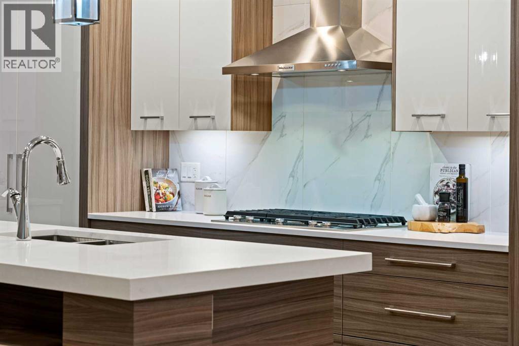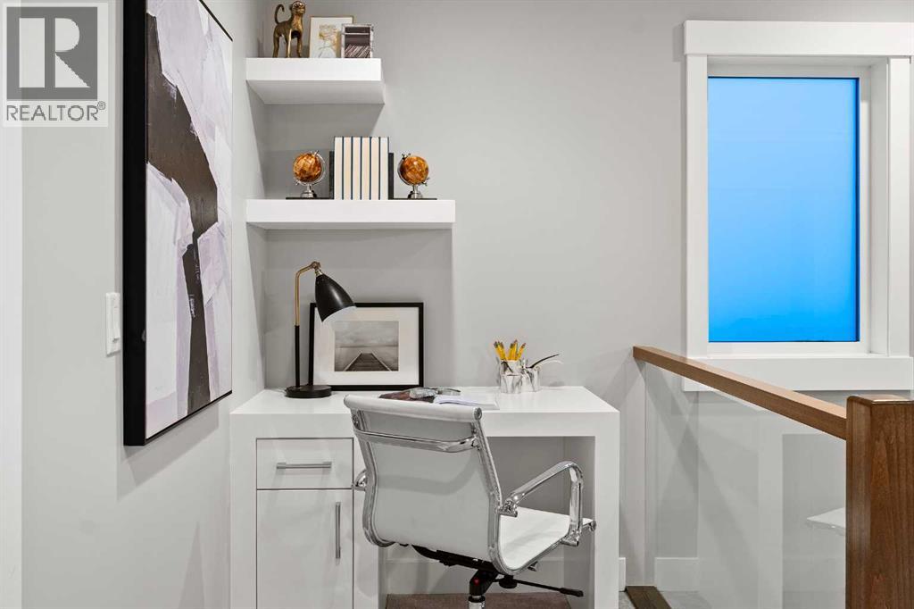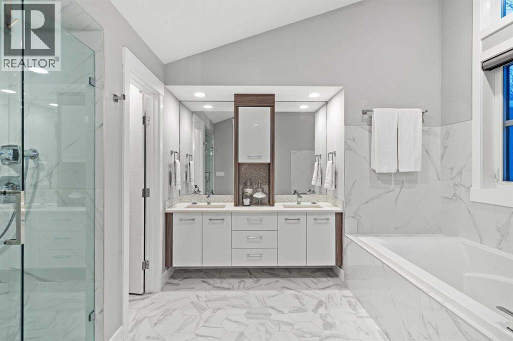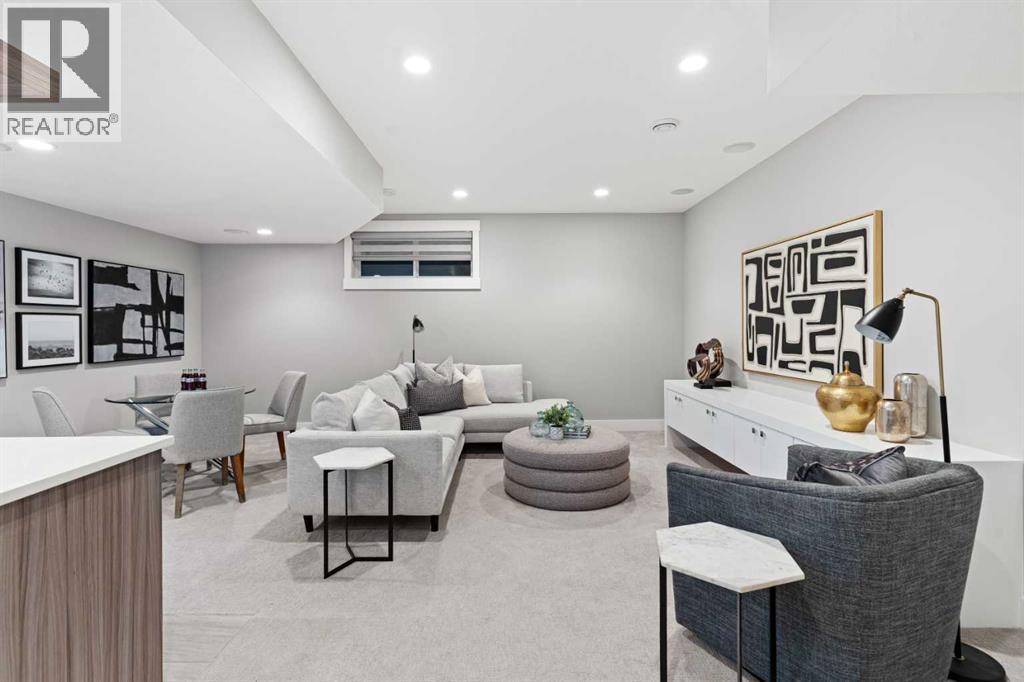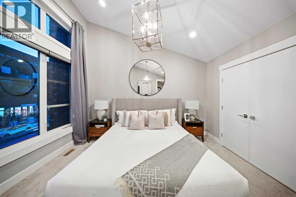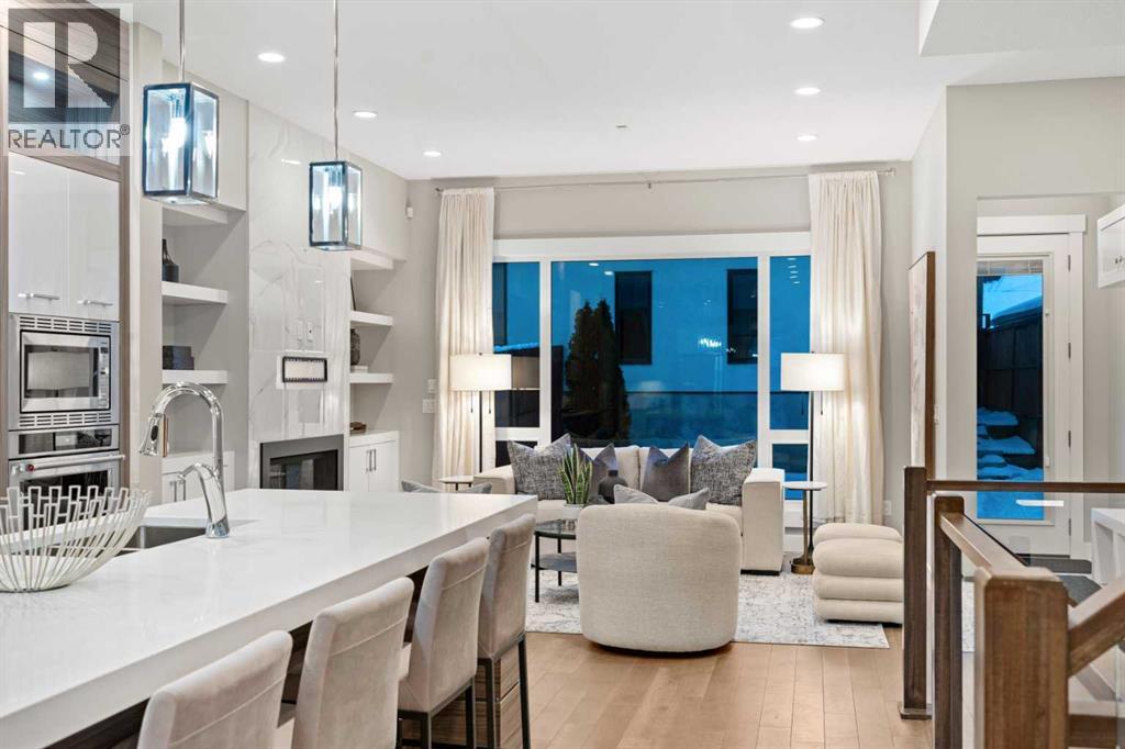 Step inside this exceptional 4-bedroom home in Marda Loop, offering nearly 3,000 sq.ft. of finished living space and a layout designed for modern living. The main level makes an immediate impression with 10 ft ceilings, rich hardwood, and a seamless flow from the dining area into a sleek, contemporary kitchen featuring quartz counters, a statement island, crisp white cabinetry, and stainless steel appliances. The living room delivers that “wow” moment with its floor-to-ceiling gas fireplace and custom media wall, all framed by large windows overlooking the sunny backyard and deck—perfect for summer grilling or effortless indoor-outdoor hosting. A 2-piece powder room completes the level. Upstairs, you’ll find three bright bedrooms, a full 4-piece bath, and convenient laundry, while the primary retreat stands out with vaulted ceilings, expansive windows, a private balcony, walk-in closet, and a luxurious 5-piece ensuite with double vanities, a soaking tub, and jetted shower. The fully developed basement expands the living space with a generous family room, wet bar, a second 4-piece bath, and a fourth bedroom with a large closet. Added features include air conditioning, a built-in Sonos system, an alarm system, and a double detached garage.Just steps from 33rd Ave, you’re surrounded by Marda Loop’s vibrant dining, cafés, parks, schools, and everyday amenities. One of Calgary’s most energetic and walkable neighbourhoods is right at your doorstep. (31455722)