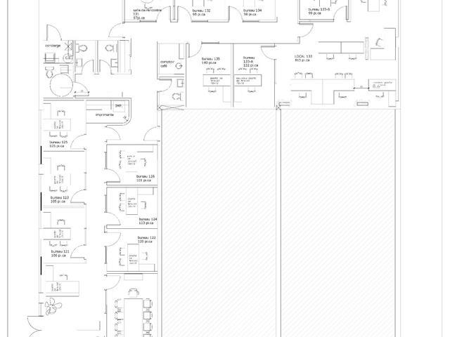 Plan de location long terme disponible sur demande: Prix par local: 13 bureau sans fenêtre +- 100 PC à $660/mois ; 2 bureaux AVEC fenêtres: 100 PC à $800/mois et 98 PC à $750/mois.Accès au hall d'entrée et accès salle de rencontre( cuisine commune) et grande salle de conférence. GST/QST must be added to the asking price (51733949)