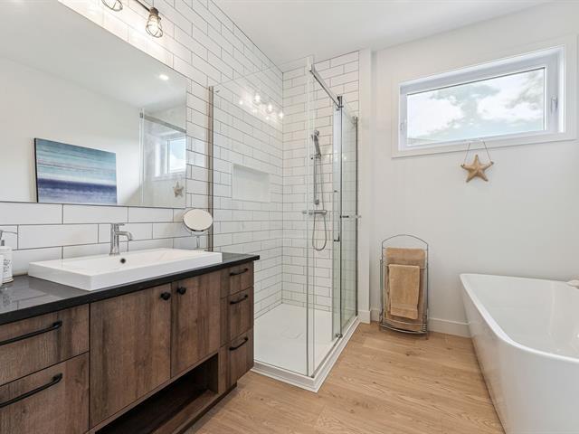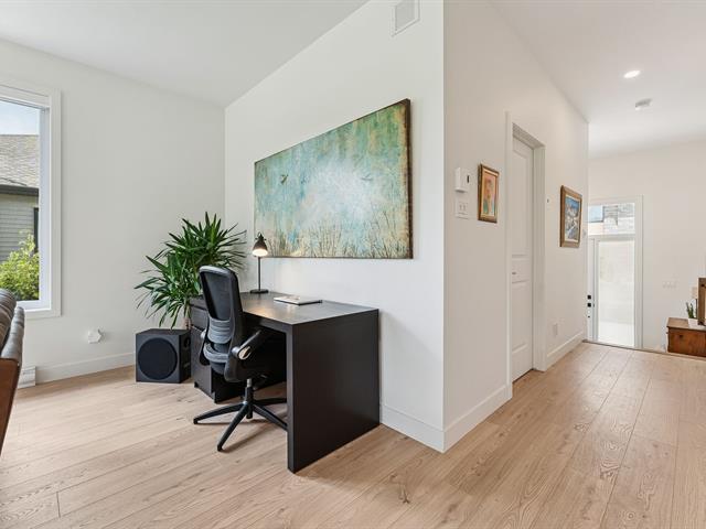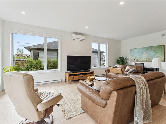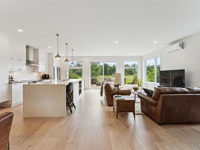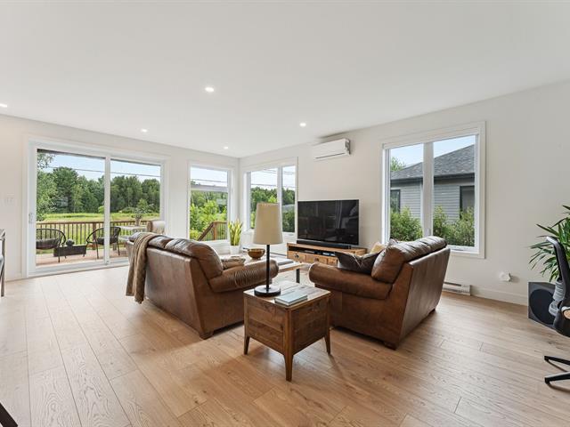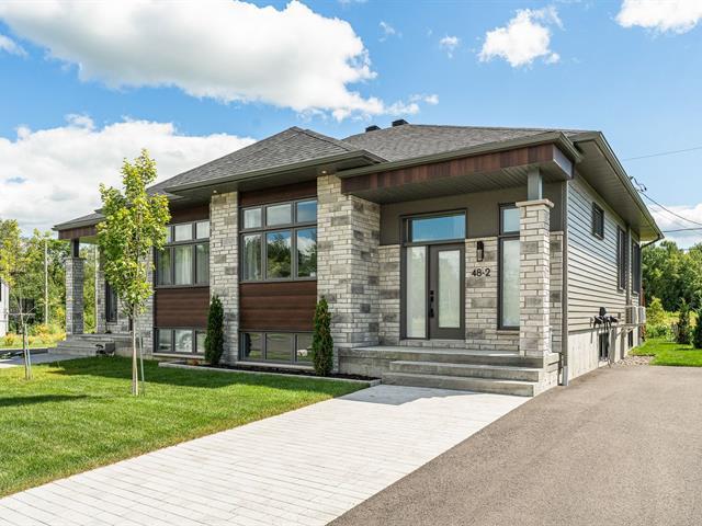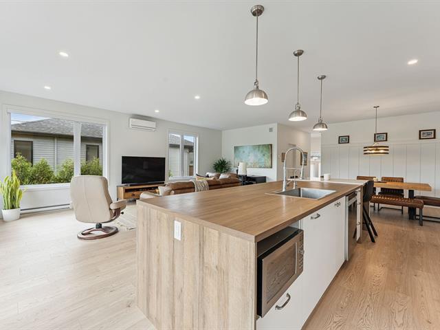 Superbe jumelé de plain-pied baigné de lumière grâce à une fenestration abondante. Aire de vie ouverte, spacieuse et chaleureuse, idéale pour recevoir. Cuisine au design moderne avec îlot central, comptoir-lunch, dosseret tendance et armoires jusqu'au plafond. Il offre 1 chambre à l'étage et 2 chambres au sous-sol. Une salle de bain complète par niveau avec plancher chauffant au rez-de-chaussée. Cour à faire rêver: sans voisin à l'arrière, avec terrasse paisible offrant une vue dégagée sur les champs. À découvrir! (47646198)
