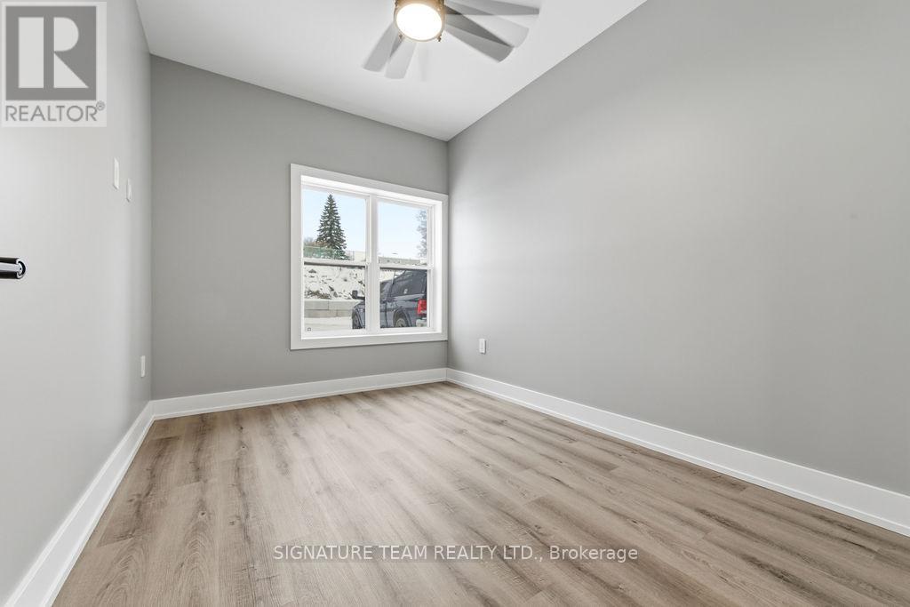 For Rent; A stunning brand new one bedroom plus den, one full bath apartment in Eganville, perfect for seniors or professionals seeking a low-maintenance lifestyle. This second floor unit in an elevator serviced, secure building offers direct access to a private balcony with lovely views of the valley. The bedroom features a walk in closet. Bathroom is wall to wall tile with walk in shower. The modern white kitchen with elegant black trim and subway tiled backsplash is more than you would expect to see in an apartment and the granite counters makes this the talk of the town. All kitchen major appliances are included and each unit has its own laundry hook-up, HRV system, full sized hot water tank and heat pump for your individually controlled A/C. In floor heating that is controlled in each unit is included in your rent as is water, sewer and parking. Hydro and internet/ phone is the tenants responsibility. Eganville is a great family friendly community surrounded by nature! (41813141)