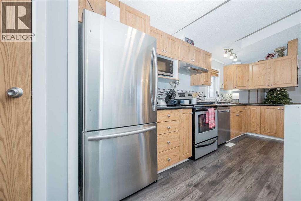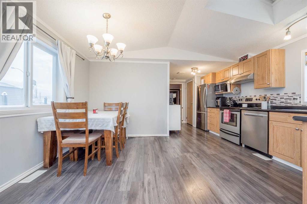 Stop paying rent and start building equity with this well-kept 3-bedroom, 2-bath home where you own the lot. The primary bedroom features a walk-in closet and private ensuite, while vaulted ceilings and a skylight create a bright, open feel throughout the main living space. Quality interior finishes include hardwood flooring in the living room and warm oak cabinetry in the kitchen. Step outside to a spacious, fully fenced and landscaped backyard complete with a large 13' x 18' deck—perfect for relaxing or entertaining. A matching 12' x 16' powered shed offers excellent storage or workspace options. Located close to schools and parks, this home delivers the benefits of lower county taxes and small-town living, all while being just 12 minutes from the city. An ideal and cost-effective alternative to renting—own your home, grow your equity, and enjoy long-term value. (31459642)