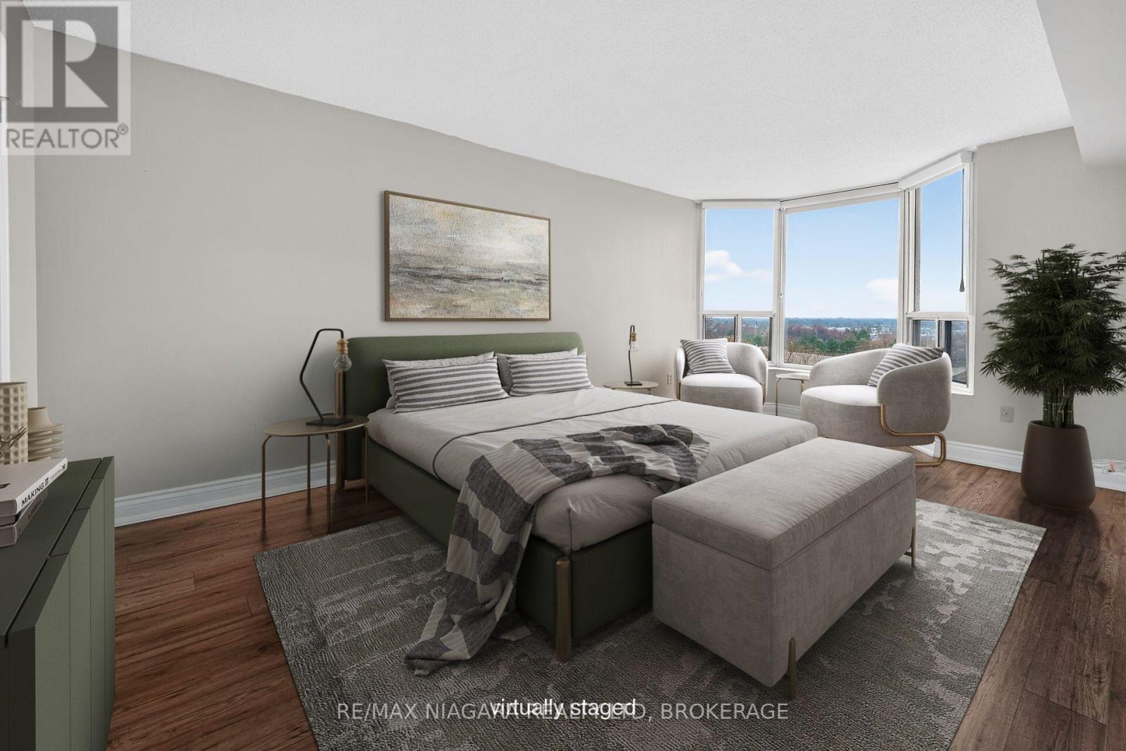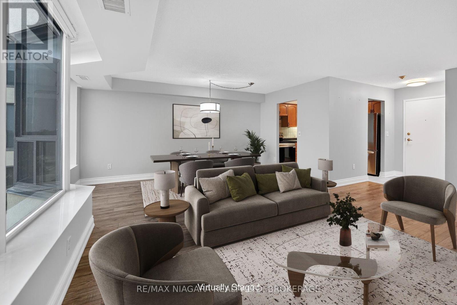 Enjoy a carefree lifestyle in this updated, modern, luxury 2-bedroom condo with bright east exposure and panoramic city and lake views. Completely move-in ready-just bring your furniture and hang your clothes. Features include plank flooring throughout, a spacious kitchen with stainless steel appliances, an updated bathroom with walk-in shower, a large primary bedroom with bay-window sitting area and walk-in closet, a well-sized second bedroom, and in-suite laundry. Remote-controlled roller blinds (2023), central air, one underground parking space, and a storage locker are also included, with extra parking available. The building sits on approximately 3.3 acres of beautifully landscaped grounds and offers exceptional amenities: heated saltwater pool, BBQ areas, waterfall seating areas, car wash bay, guest suite, party room, billiards and exercise rooms, bicycle storage, ample visitor parking, and high-speed internet included in the condo fees. Walking distance to shops, transit, restaurants, Fairview Mall, and close to the QEW. Ideal for retirees or busy professionals. Includes brand-new stainless steel fridge, stove, microwave and white washer, and dryer. Vacant with flexible closing date. Buy now at a great price and rent it out until you're ready to move-an ideal opportunity for future planning. Please note: dogs and smoking are not permitted (41816778)