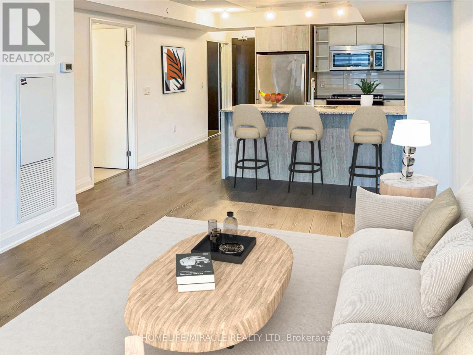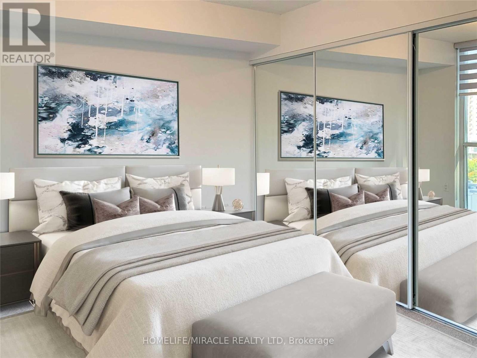 Welcome to Triumph at Valhalla. A well-designed 541 sq ft 1 bedroom condo on the 8th floor with north exposure overlooking the tranquil courtyard, offering excellent value in Etobicoke. This bright and functional suite features an open-concept layout with a modern kitchen equipped with stainless steel appliances, granite countertops, and ample cabinetry, flowing seamlessly into the living area with a Juliette balcony that brings in natural light and fresh air. The spacious bedroom offers excellent closet space, complemented by a contemporary 4-piece bathroom with a floating vanity and modern finishes. Stacked laundry in the unit and one owned conveniently located underground parking space provide everyday convenience. Residents enjoy resort-style amenities including a fitness centre, indoor pool, sauna, theatre room, party rooms, BBQ terrace, guest suites, and 24-hour concierge in a professionally managed building. Ideally located just minutes to Sherway Gardens Mall, with quick access to Highways 427, 401 & QEW, TTC transit, Pearson Airport, and downtown Toronto. With strong rental potential, low-maintenance living, and long-term growth appeal, this condo is an excellent opportunity for first-time buyers or investors in one of Toronto's most connected neighbourhoods. (41816880)