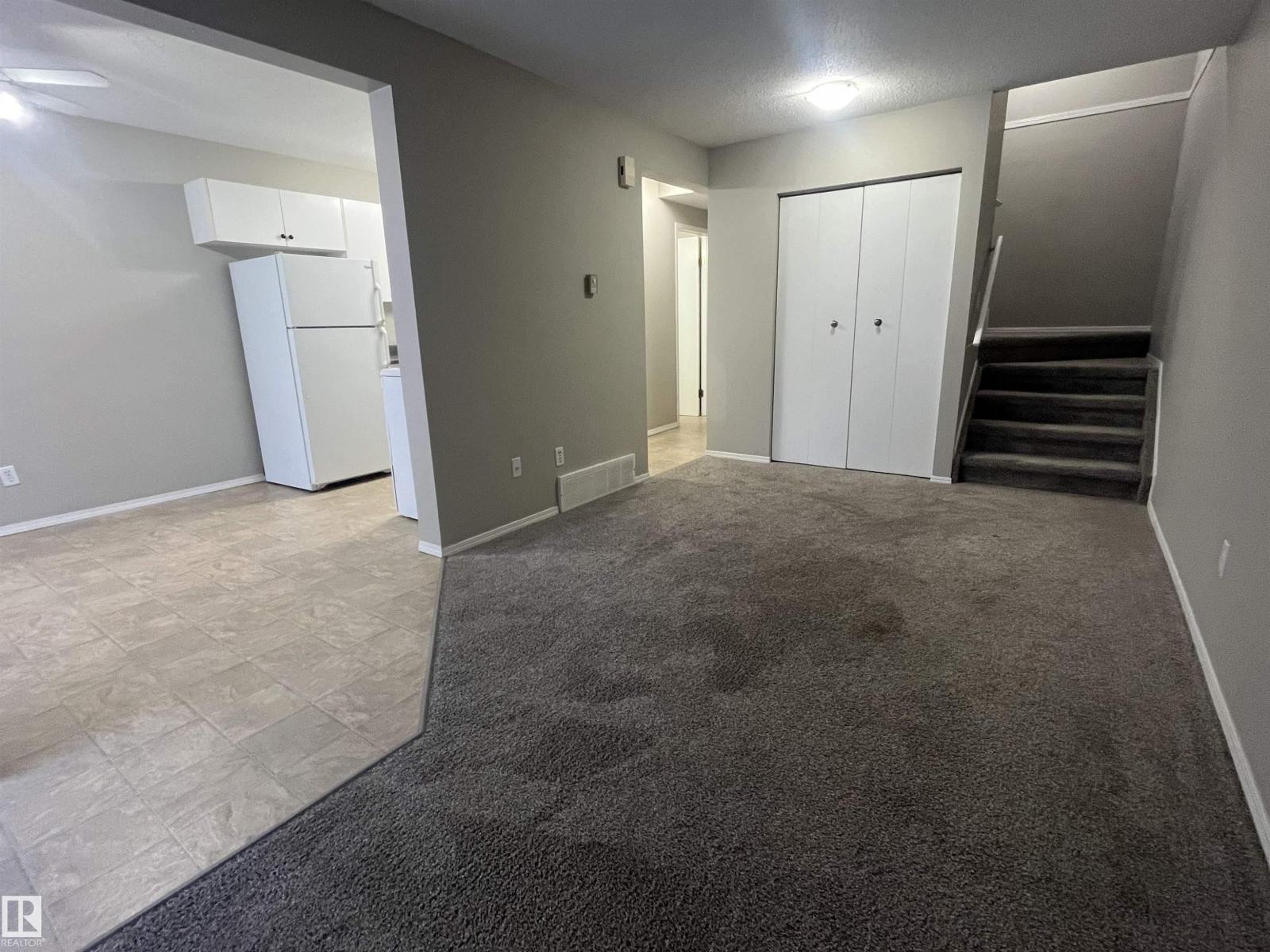 Great 2 storey, 2 bedroom townhouse with one and a half baths in the heart of Devon. Nicely refreshed with newer paint, carpet & light fixtures. This move-in ready North facing unit is in a small, well managed complex (8 units) and offers privacy, a spacious common area, and dedicated parking behind the property. Low condo fees - only $175/month, and conveniently located walking distance to most amenities. Full, unfinished basement offers future development potential. Unbeatable value and ready to call home! (33653209)