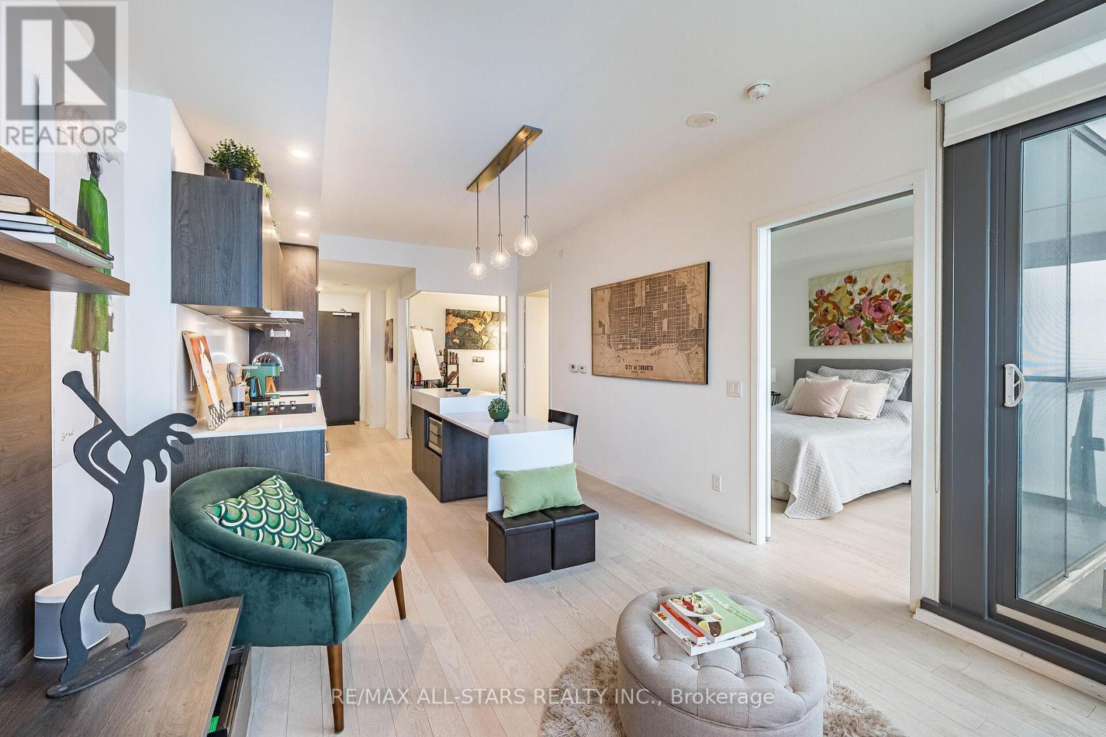 Welcome to Monde Condos. Proudly built by Great Gulf complete with internationally recognized architecture and design. Mode features breathtaking amenities, including a double-height lobby with a living green wall, dedicated amenity space including yoga/Pilates/cardio/kinesis, training and weights studios, hot plunge pool with his and hers saunas and steam and change-rooms with experience showers, kitchen/dinning/bar/lounge, billiards room. Outdoor amenities include an outdoor lounge with indoor/outdoor fireplaces, a cabana deck next to the outdoor pool with views of Lake Ontario. This open concept unit features almost 700 square feet of sophisticated living space. boasting 9 foot ceilings, laminate and porcelain floors throughout, contemporary ungraded kitchen complete with integrated dropped dining table and appliances. The floor to ceiling windows allow for abundance of natural light and unobstructed breathtaking views of Lake Ontario & the City skyline. The perfect place to call home, offering and uncompromised lifestyle, state of the art amenities, walking distance to everything and exceptional value. (41817260)