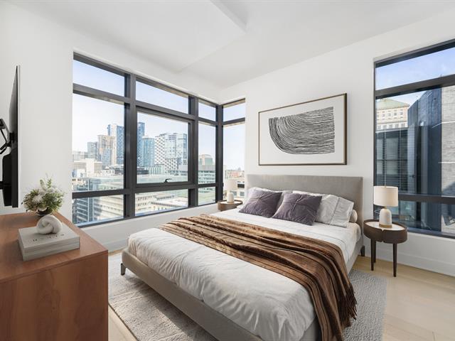 Superb 2-bedroom, 2-bathroom condo unit on the 19th floor offering breathtaking views of downtown and Old Montreal. Facing Square Victoria, the 628 St-Jacques condominiums are ideally located at the intersection of Old Montreal and the Downtown core. This prestigious, prime location provides residents with quick and easy access to all services, amenities, and leisure options. (46097440)