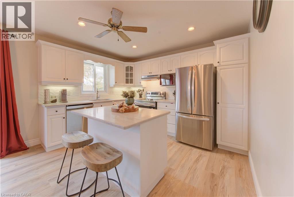 Welcome to 396 Otterbein Rd.— a spacious and beautifully updated 5-bedroom, 4-bathroom home perfect for families seeking comfort, style, and functionality. Step inside to a bright main floor featuring new luxury vinyl flooring throughout on the main level. The newly renovated kitchen shines with refreshed cabinetry, stainless steel appliances, quartz countertops and sliding doors that lead directly to the backyard that backs onto greenspace—ideal for indoor/outdoor entertaining. A front room offers flexibility as a main-floor office or formal dining room, depending on your lifestyle. The cozy living room features a gas fireplace, making it the perfect spot to unwind. This level also includes a convenient 2-piece bathroom and main-floor laundry. Upstairs, you’ll find three generously sized bedrooms, including a spacious primary suite complete with a 3-piece ensuite. A second 4-piece bathroom serves the additional upper-level bedrooms. The finished basement adds exceptional living space with two additional bedrooms, a 2pc bathroom, a comfortable rec room, cold room, and abundant storage throughout—perfect for families needing extra room to grow, host guests, or work from home. Outside, enjoy a fully fenced backyard featuring a deck and an above-ground pool, creating your own private retreat for summer relaxation. The property also offers an attached double-car garage plus parking for two vehicles on the driveway. A well-maintained, move-in-ready home with modern updates, versatile spaces, and plenty of room for the whole family—don’t miss your chance to make 396 Otterbein Rd. yours! (69983244)