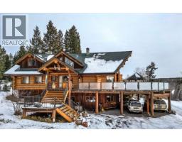 Luxury 4,700 sq ft log home on 1.49 acres overlooking Hall Lake. Vaulted ceilings on the main level with large windows and patio doors out to expansive deck. 3 bedrooms with ensuite bathrooms. The primary suite has a walk-in closet, sauna & 6-piece bathroom. The upper level hosts a den, sitting area & 2 bedrooms with bathrooms that have their own hot water tank. Basement has an office with 2-pc bthrm, storage room, wood & utility rooms. The basement entry from the generous covered parking area opens into a large flex space as well as an alley kitchen and workshop. Outbuildings include a gazebo, 2-level European Smokehouse with garden shed, Sea Can and 2 coveralls for additional storage. The acreage is fenced and in a quiet area just minutes from 100 Mile House. Spacious family home or B&B. (32263610)