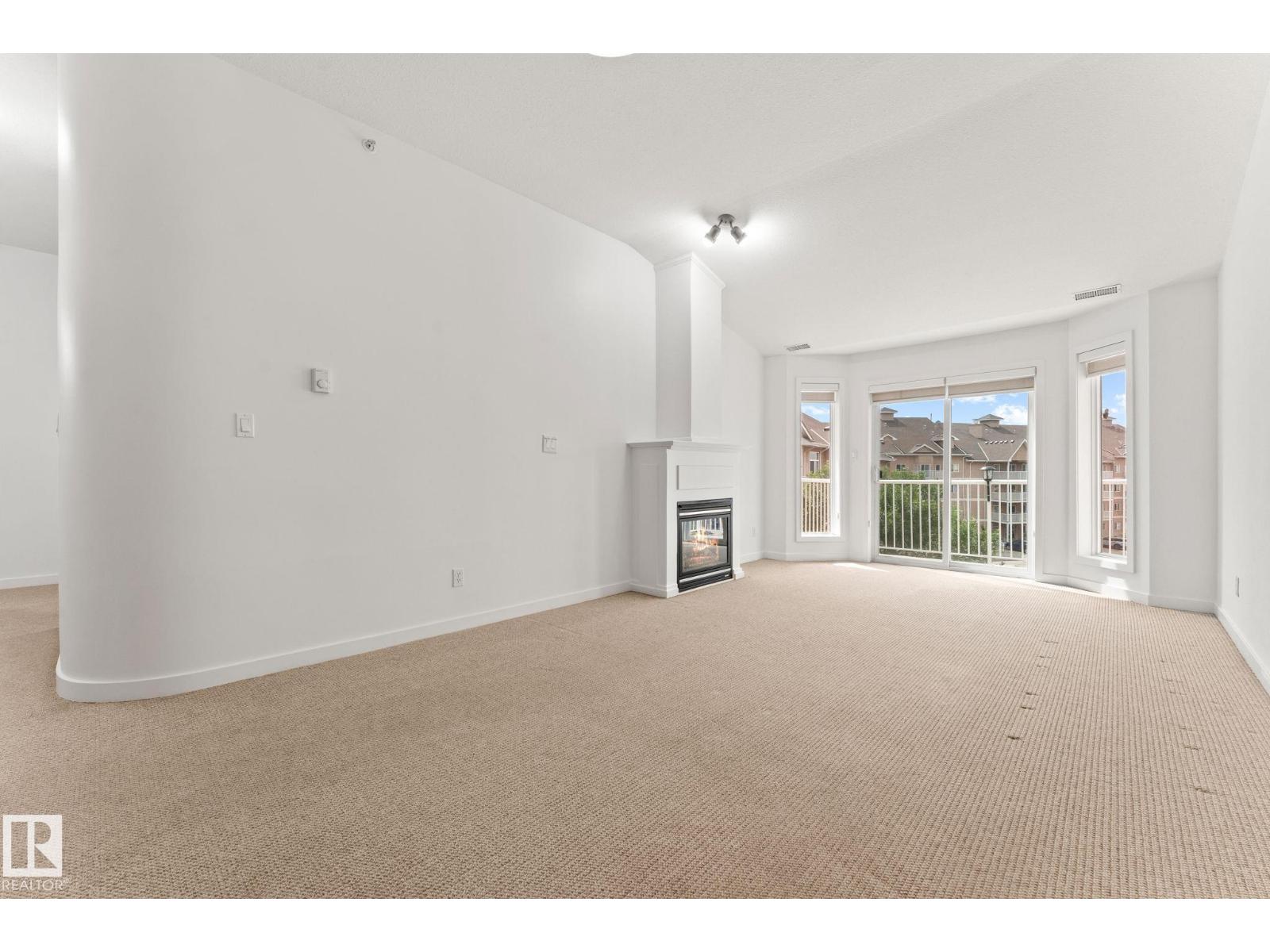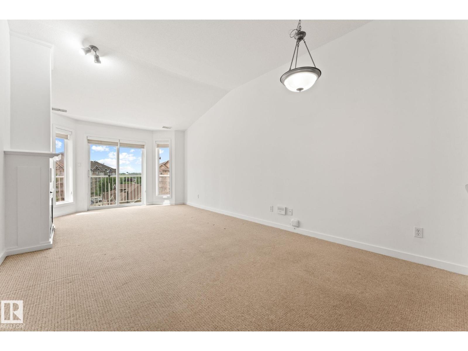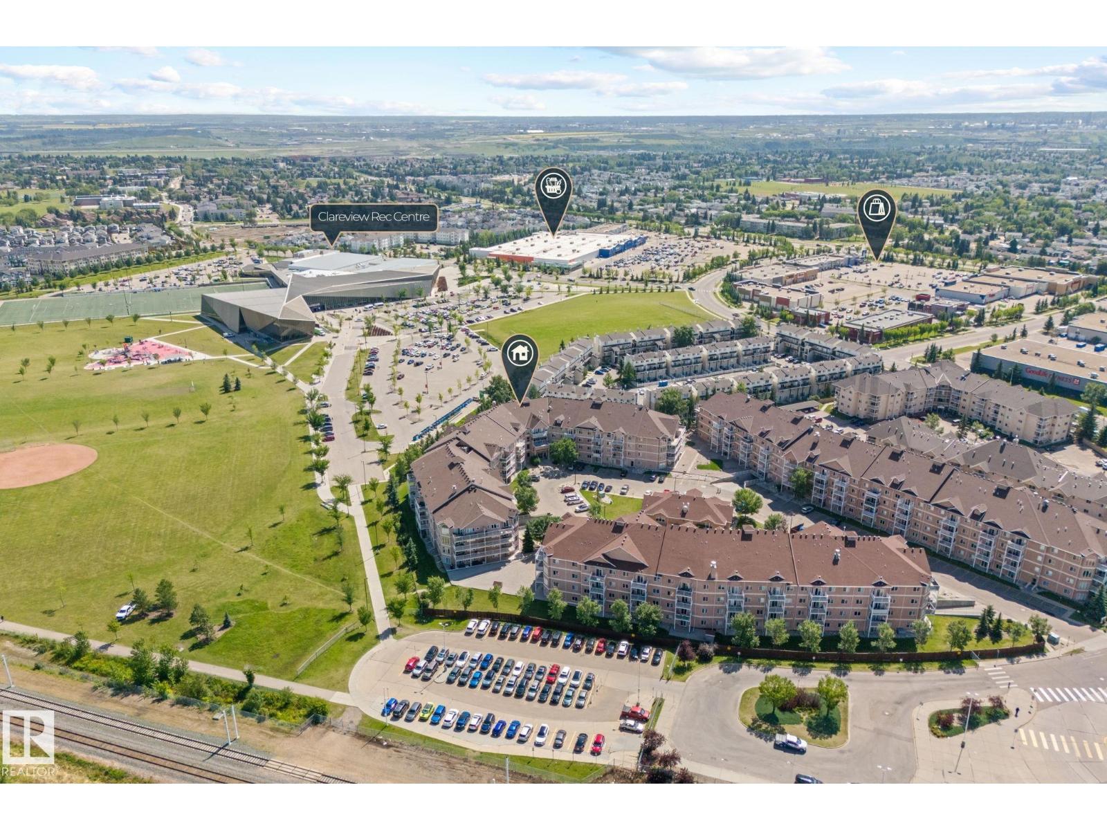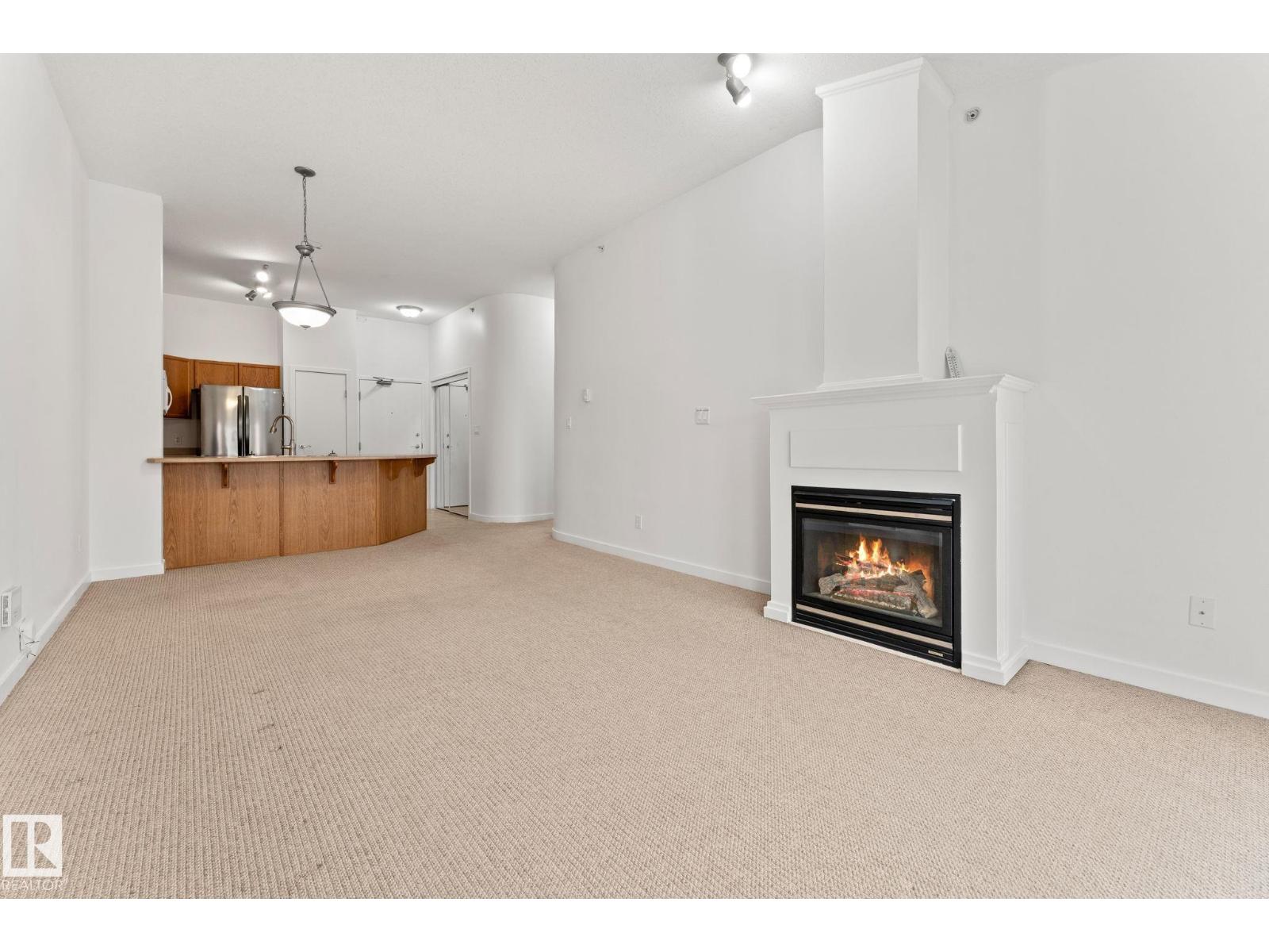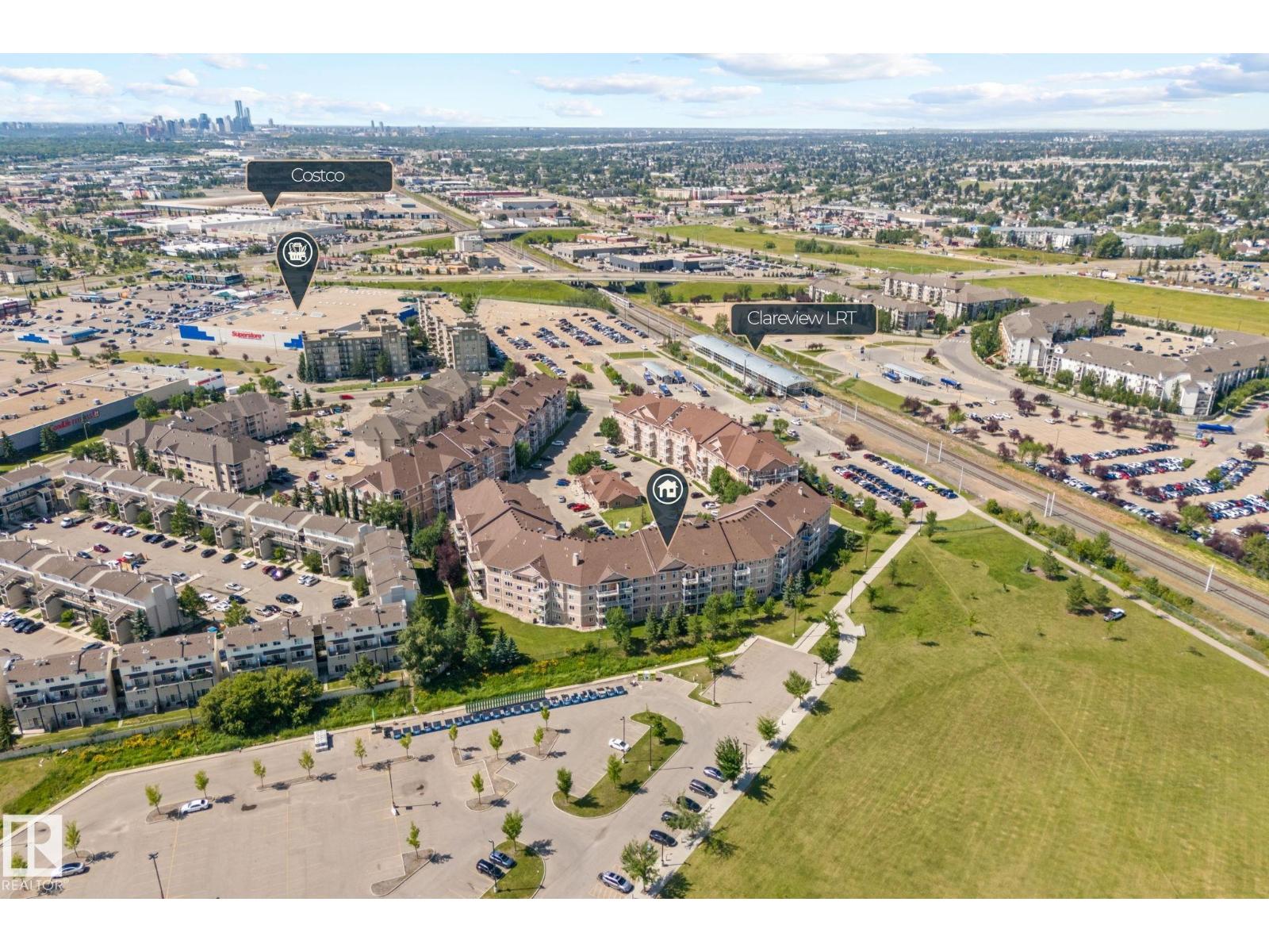 Welcome to the Estates of Clareview! This bright and spacious TOP FLOOR 2 bedroom, 2 bathroom SOUTH FACING condo features VAULTED CEILINGS, and cozy gas FIREPLACE. The open-concept layout includes a functional kitchen with oak cabinets and SS appliances, a generous living area, and in-suite laundry for added convenience. The primary bedroom offers a walk-through closet and full ensuite bathroom. The second bedroom is ideal for guests, an office, or a roommate setup with the second full bath nearby. Includes underground heated parking with a storage cage right in front of the stall. Unbeatable location, literally steps from Clareview LRT TRAIN STATION (perfect for University students, and downtown professionals), shopping, restaurants, and all amenities. Well-managed, pet-friendly complex with a FULL GYM, REC ROOM and social room for special occasions. NEW FRESH COAT OF PAINT professionally done for the new owners. Move-in ready and perfect opportunity for first-time buyers, students, or investors! (33658039)