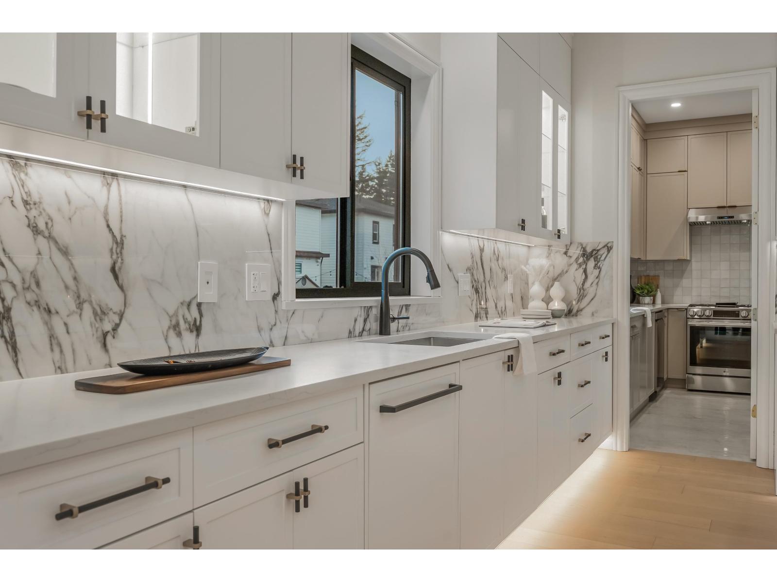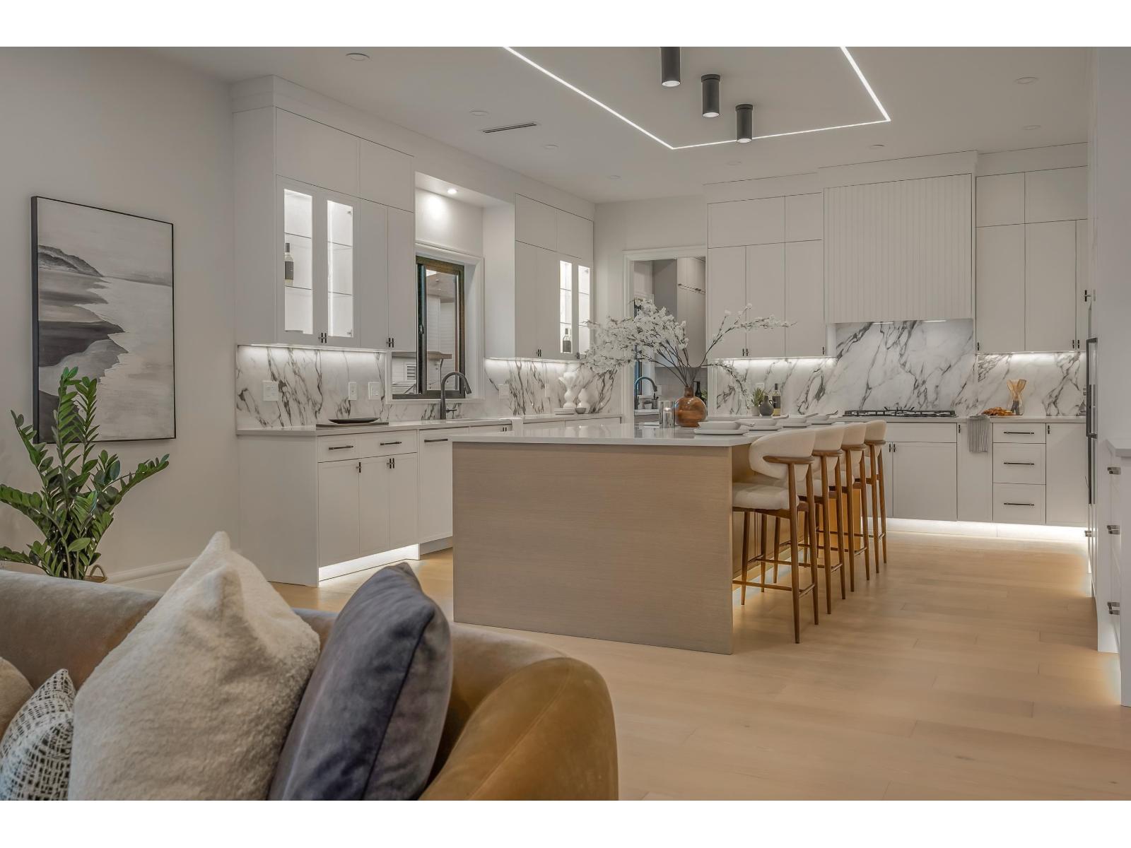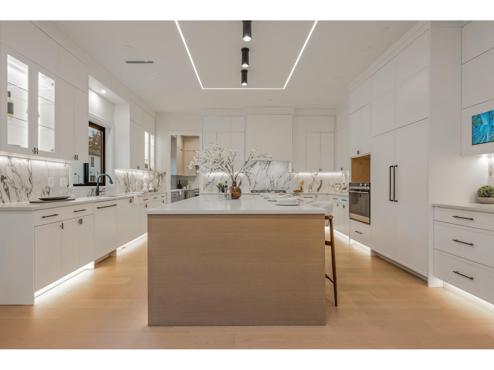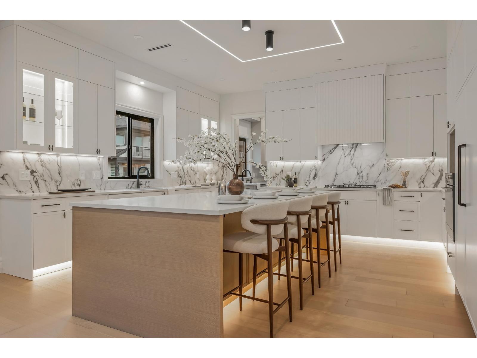 Crafted by an experienced custom home builder with detail and design at the forefront of craftsmanship. Experience spacious and bright living in an open concept floorplan with high ceilings, ensuited bedrooms, open-to-below loft. Grande French White kitchen with gourmet appliances and adjacent prep kitchen with beautiful polished tile. Hardwood floors, designer lighting, and intricate wall-paneling throughout. Enhanced finishes include molded-panel interior doors with high-end fixtures, and elegant LED staircase. Enjoy the warm tones in an elevated atmosphere in this inviting 8-Bed family home with all the luxuries. Lower level features a media room with wetbar and 2 suites. Located on a quiet wide street in the establishing neighbourhood of Brookswood! (32264263)