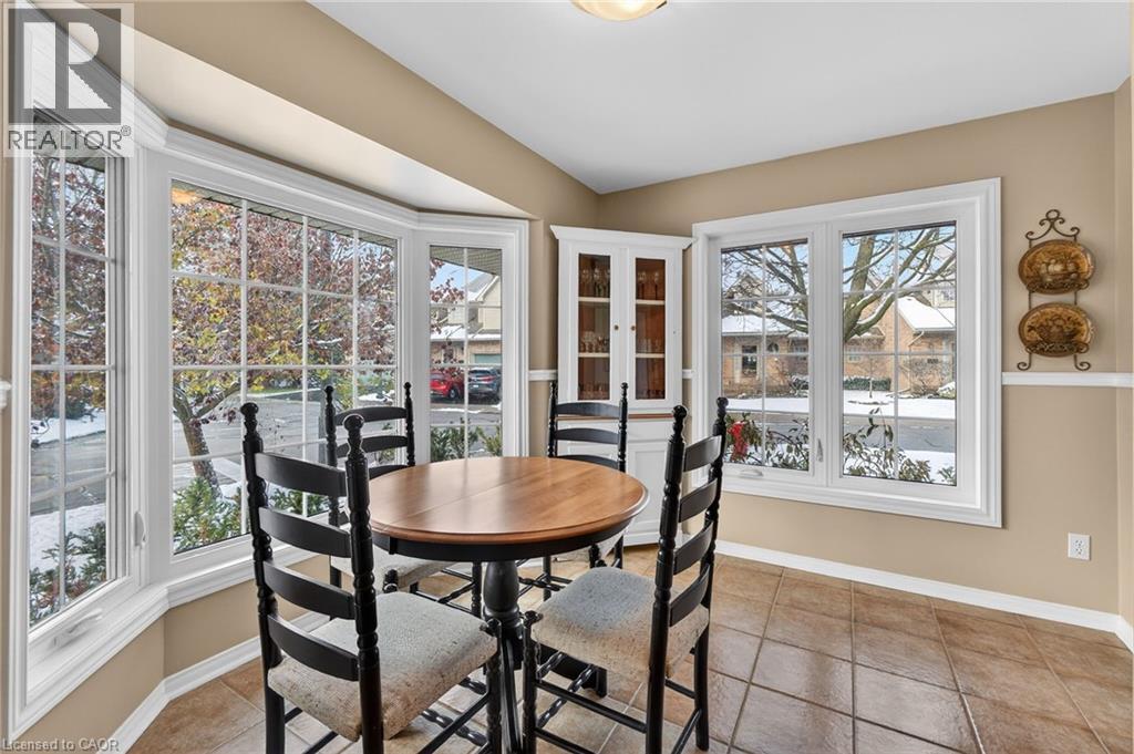 Beautiful 3-bedroom end unit tucked into a quiet corner of the highly sought-after Roseland Green community. Offering approximately 1,679 sq ft, this home showcases thoughtful design, refined finishes, and meticulous care throughout. Sun-filled living and dining areas feature gleaming hardwood floors, a cozy gas fireplace, and exceptional natural light, creating an inviting atmosphere for everyday living and effortless entertaining. A striking central staircase adds architectural interest to the main level. The separate eat-in kitchen provides generous prep space, under-cabinet lighting, and two large windows for a bright, cheerful cooking and dining experience. The expansive primary suite includes a luxurious 4-piece ensuite with a soaker tub, corner shower, separte vanity with make-up desk, and a large walk-in closet. The fully finished basement extends your living space with a versatile office or den, a full 3-piece bath, comfortable family room, well-designed laundry area, and abundant storage. Step outside to a private courtyard-style patio—complete with a low-maintenance, pet-friendly artificial turf area. A rare opportunity to own a remarkable townhome in coveted south Burlington—move in and enjoy! (69984287)
