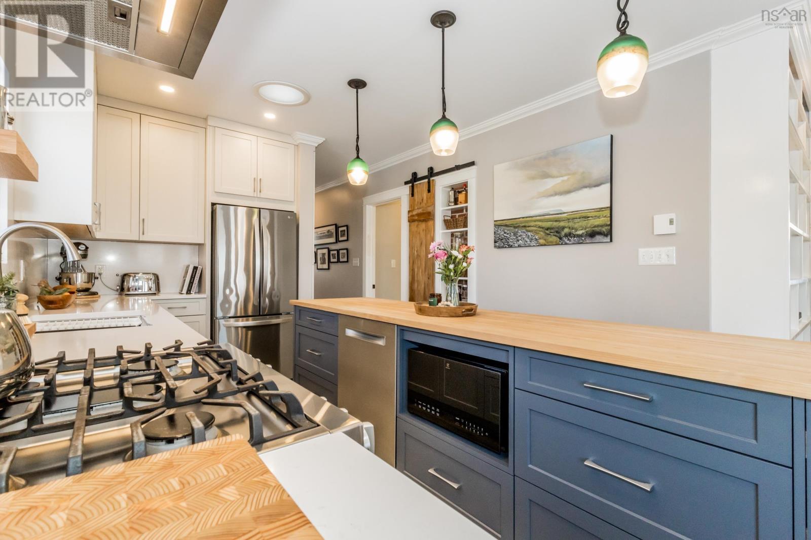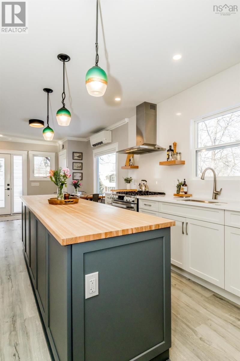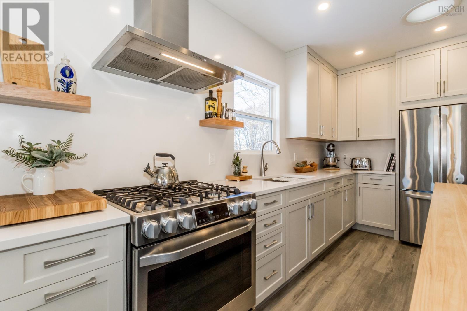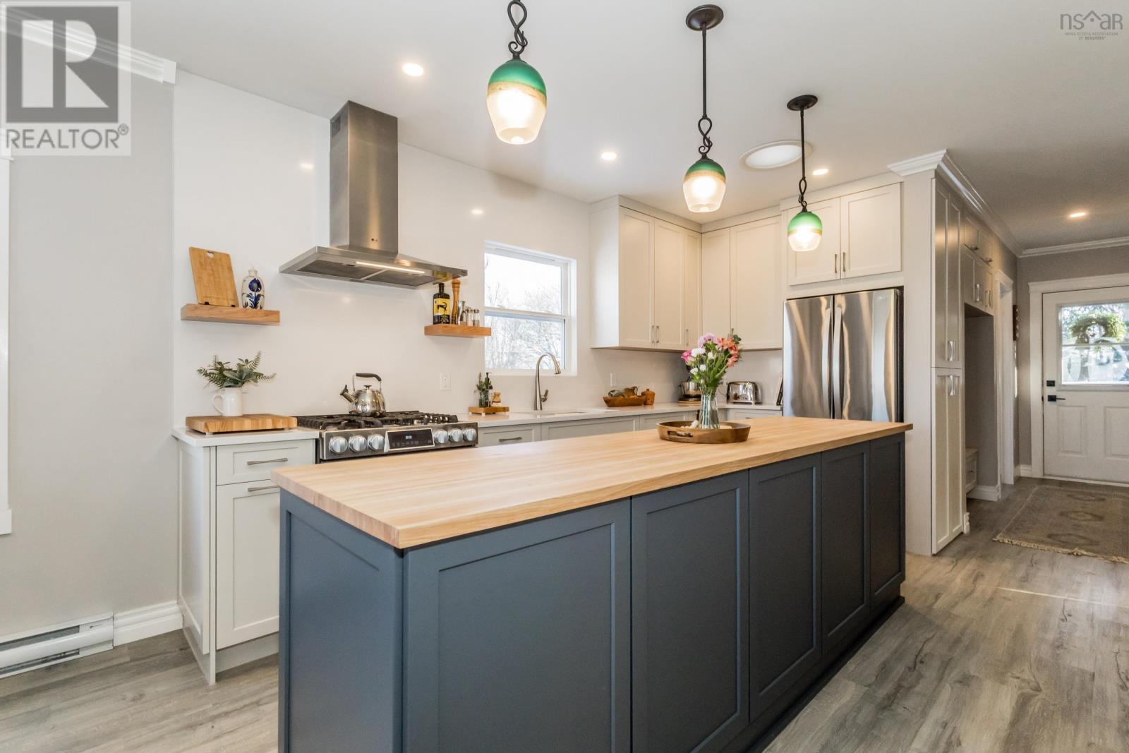 Just in time for Christmas, this amazing turnkey home is perfectly situated in the charming town of Wolfville. Its rare to find a spacious 5-bedroom, 2.5-bathroom residence that looks and feels this good. The property underwent a complete renovation in 2017, followed by significant updates in 2022. The custom kitchen features stunning quartz countertops and a stylish quartz backsplash, while all bathrooms were retiled, adding a fresh, modern touch. The existing walk-in pantry and ample cabinet space offer everything you need for your culinary adventures. The bright and inviting family room is perfect for relaxing or entertaining friends and family. Adjacent to the living area, there's an office that could easily double as a bedroom. The primary bedroom, located on the main floor, serves as a personal retreat complete with a large walk-in closet and a luxurious ensuite bathroom featuring in-floor heating. High-quality vinyl laminate flooring throughout the home adds charm while ensuring easy maintenance. Downstairs, a modern wood stove enhances the cozy atmosphere. You'll find two spacious bedrooms, a family room that can easily be converted to a third bedroom, an office, and a beautiful full bath, along with a utility room that provides a walkout to the side and backyard. While it may be hard to fully appreciate at this time of year, the meticulously designed yard features a fire pit and decking, creating the perfect space for relaxing and entertaining in the warmer months. With its inviting curb appeal, you'll feel right at home the moment you arrive. If you've been wishing for a new place in Wolfville, this is the one to see. Trust me - this property definitely deserves a spot on your nice list! (231720901)