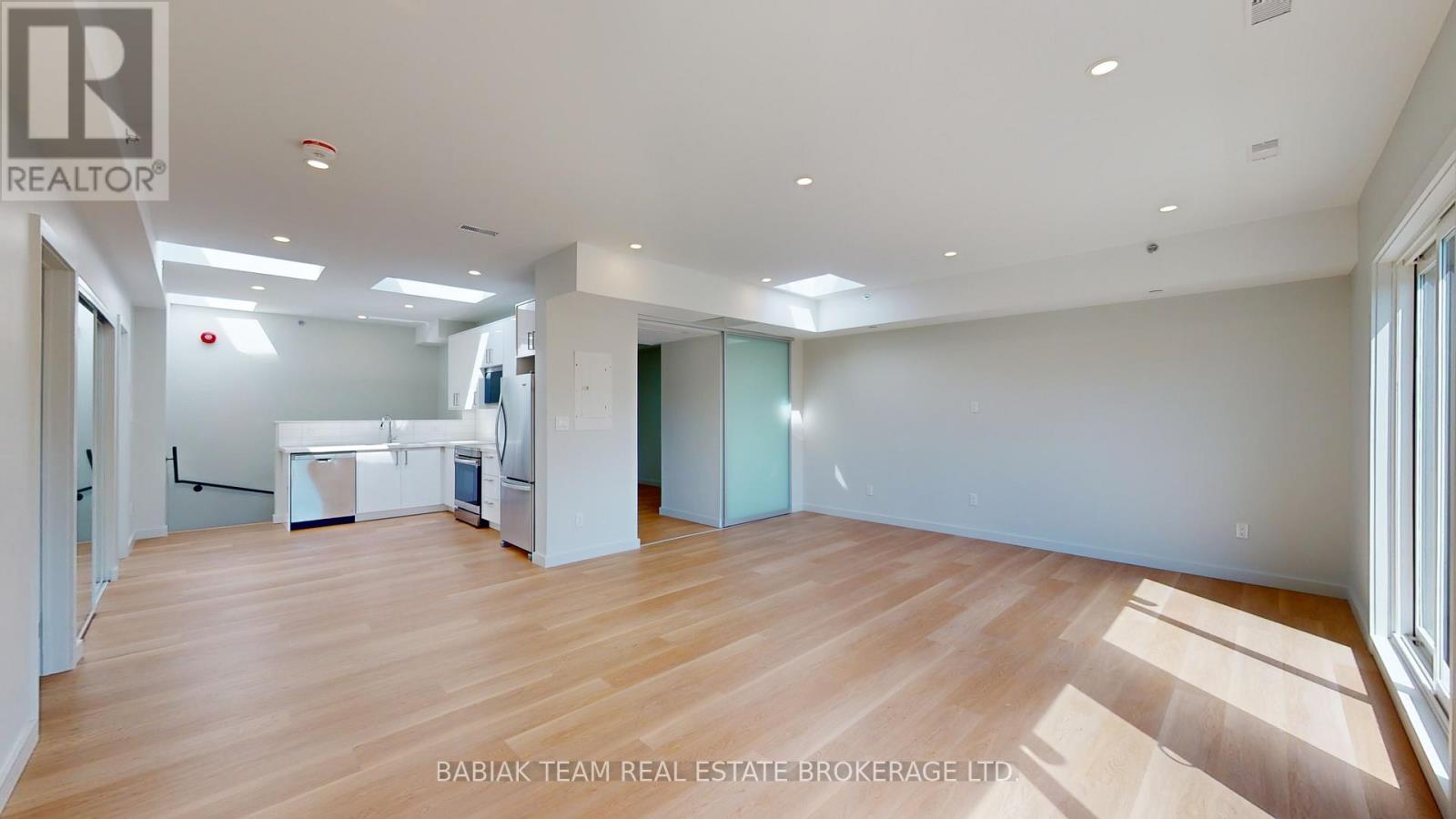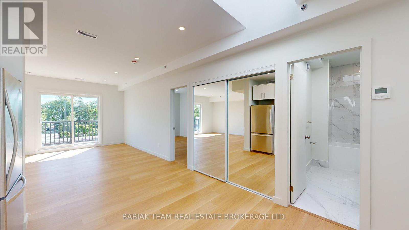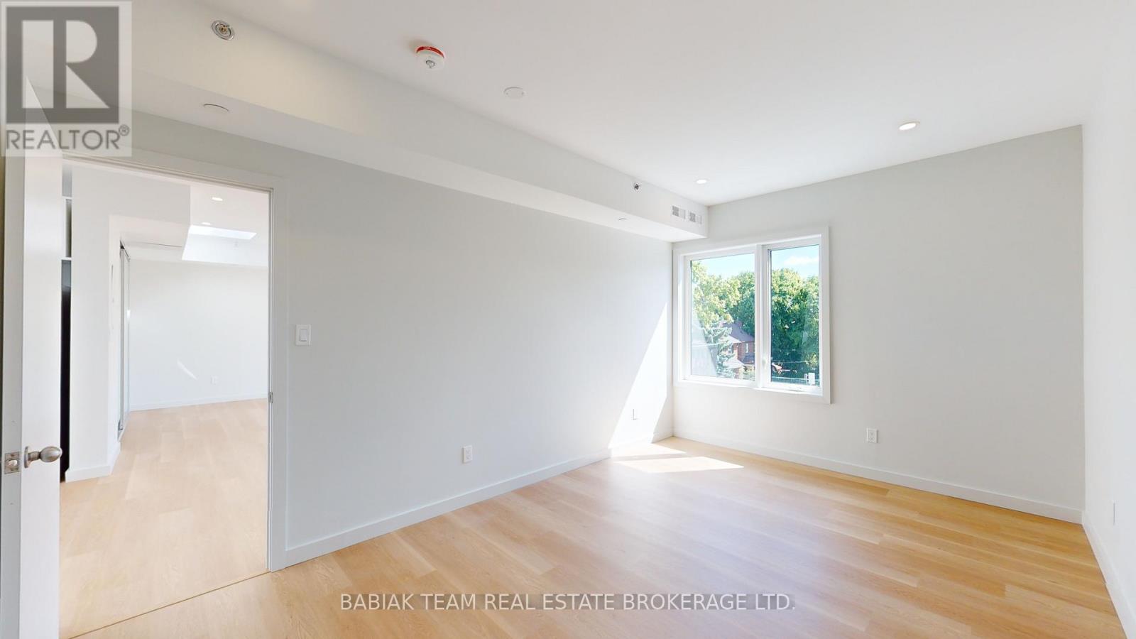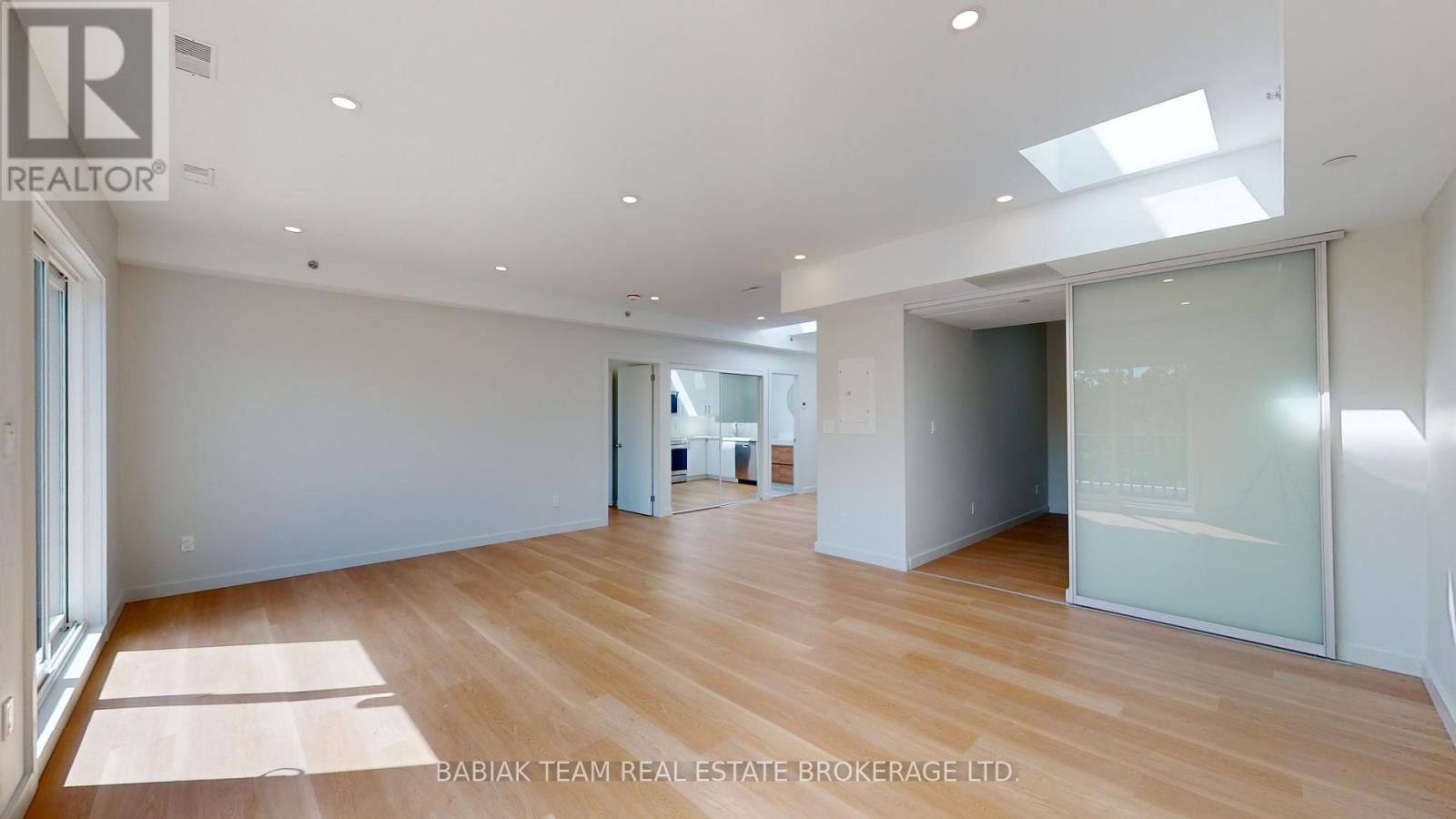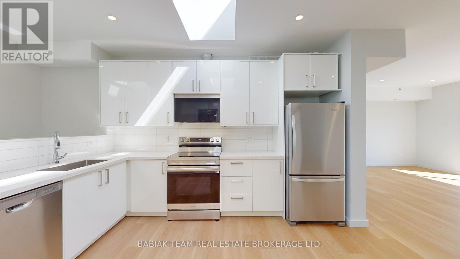 Bright, newly renovated 1,000+ square feet, 2 bedroom, 1 bathroom unit in Bloor West Village! This spacious unit is filled with natural light thanks to 5 skylights and 2 large double sliding doors that open onto a ~130 sq ft balcony. Features include: a large open plan living & dining area; a modern custom kitchen with full size stainless steel appliances; a primary bedroom with a large walk-in closet; a second bedroom with closet and stacked laundry and a 4-piece bathroom. Led pot lights, natural white oak vinyl plank flooring, and 9' ceilings throughout. Fully independent A/C and heat control. Enjoy peace and quiet with no upstairs neighbours. The building features modern safety features including a sprinkler system and a central fire alarm. Stroll to the shops and restaurants of Bloor West Village & Baby Point Gates. Easy walk to the Jane Subway and the Humber River parklands. Hydro & heat are extra. Available Feb 15. (41831407)