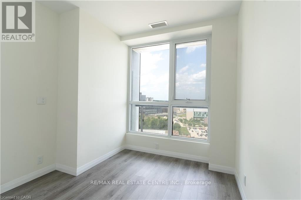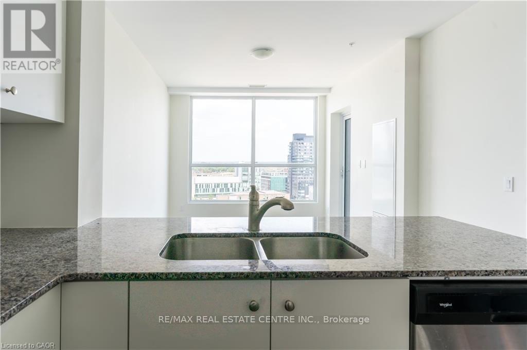 Modern 1-bedroom + Den condo located on the 13th floor in the heart of Downtown Kitchener. Bright and spacious unit offering approximately 800-899 sq. ft. with a functional layout, west exposure, open balcony, and clear city views. Features include a contemporary kitchen, comfortable living area with fireplace, in-suite laundry, and one owned underground parking space. Excellent building amenities include gym, bike storage, games room, and business centre with Wi-Fi. Prime location steps to Victoria & King, LRT, hospital, library, shops, restaurants, and Google headquarters. Vacant and available for immediate possession. (41832628)