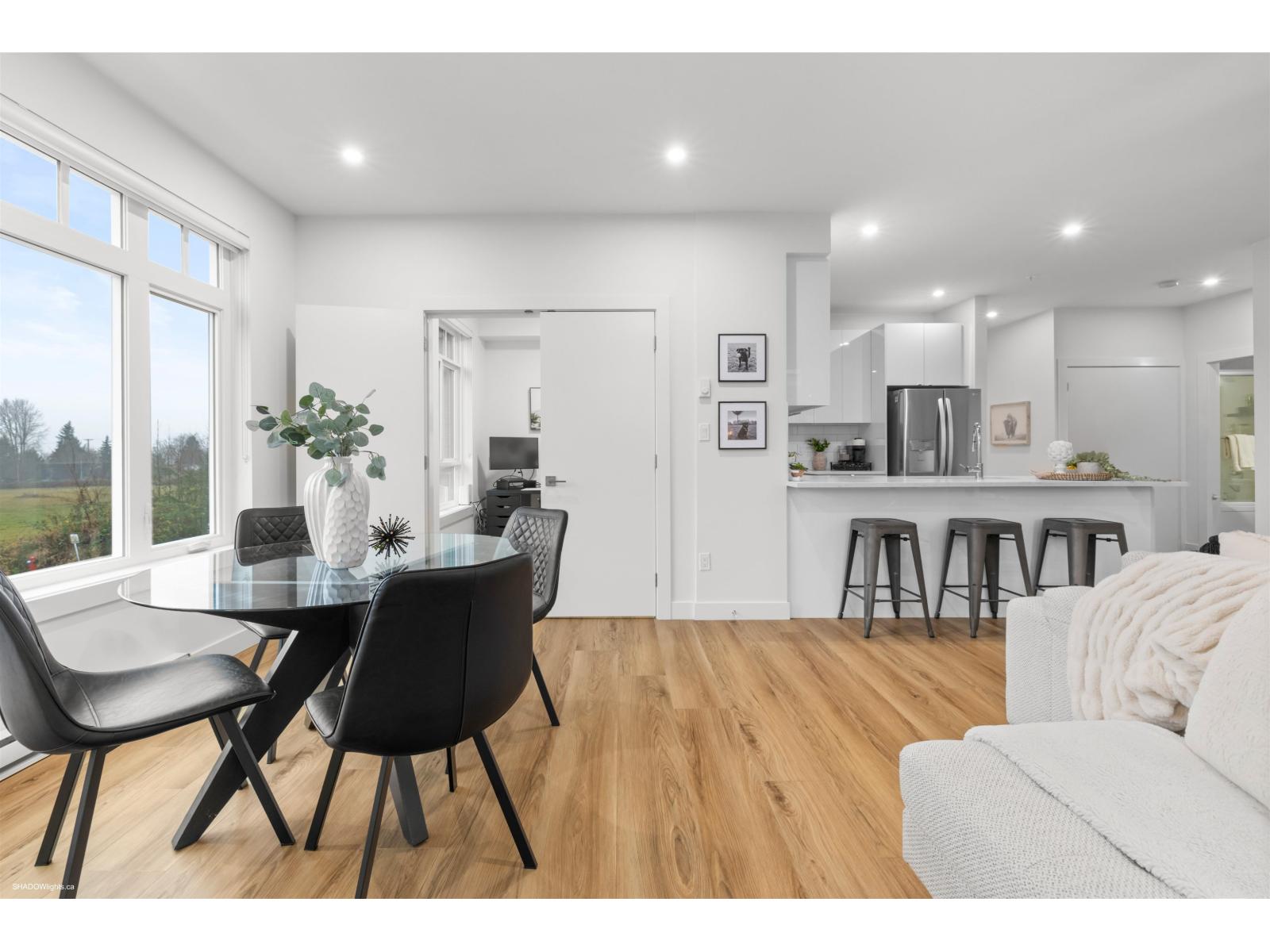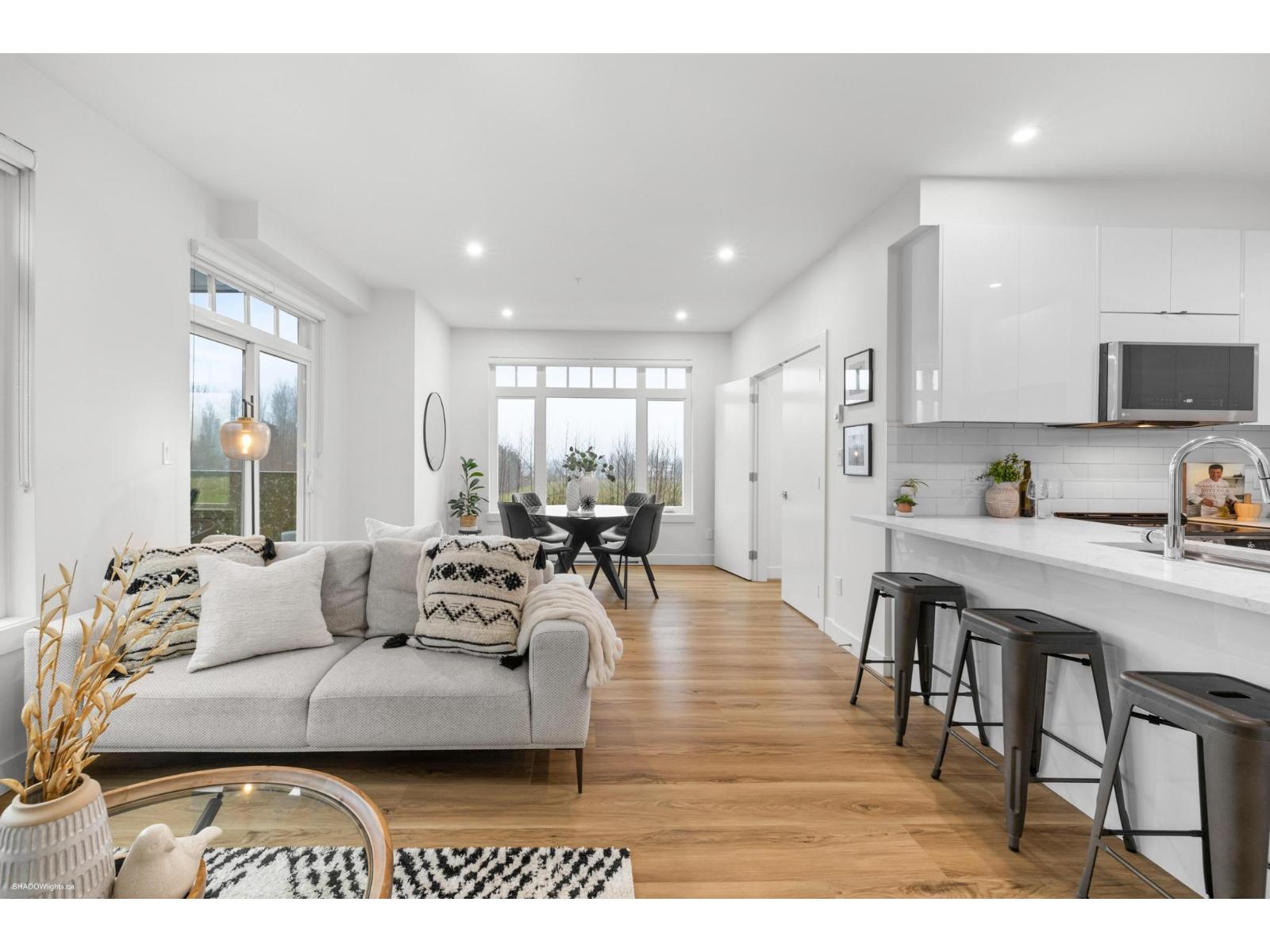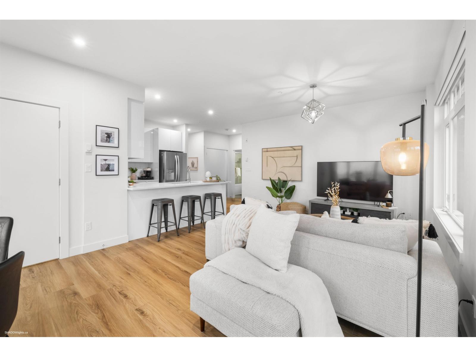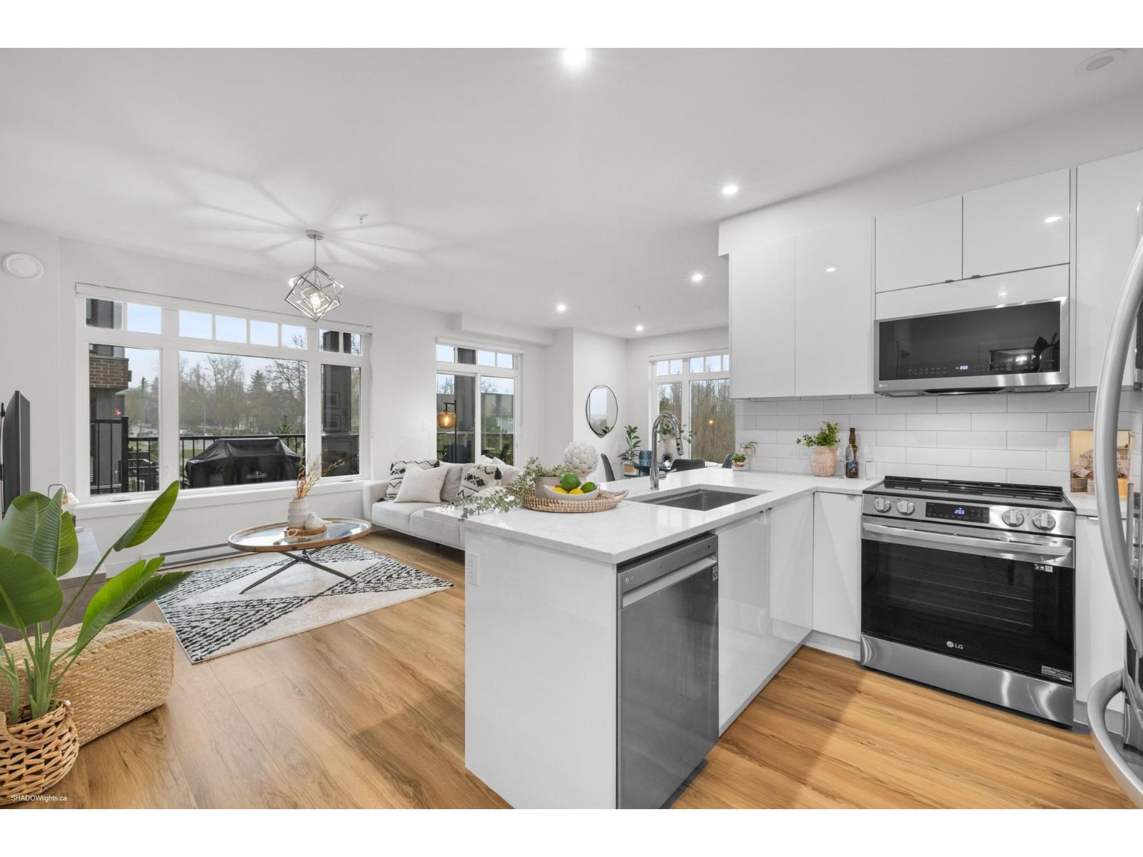 Welcome to this charming 2 bed + 1 bath home at Arora Court! The open kitchen concept features stunning quartz countertops + stainless steel appliances, creating a perfect space for culinary adventures. An inviting open living + dining room allows for effortless entertaining + family gatherings. The primary bdrm boasts a spacious layout, large closet + organizers. One wall shared w/neighbouring unit - very quiet! The full bathroom includes a relaxing tub for unwinding. Enjoy the convenience of in-suite laundry, a designated parking spot & storage unit conveniently located on the same floor as the unit. Pets are welcome, the large patio provides a fantastic area for them to roam & play, making this home a perfect blend of style and functionality. Close to shopping & Langley Event Centre. (32267512)