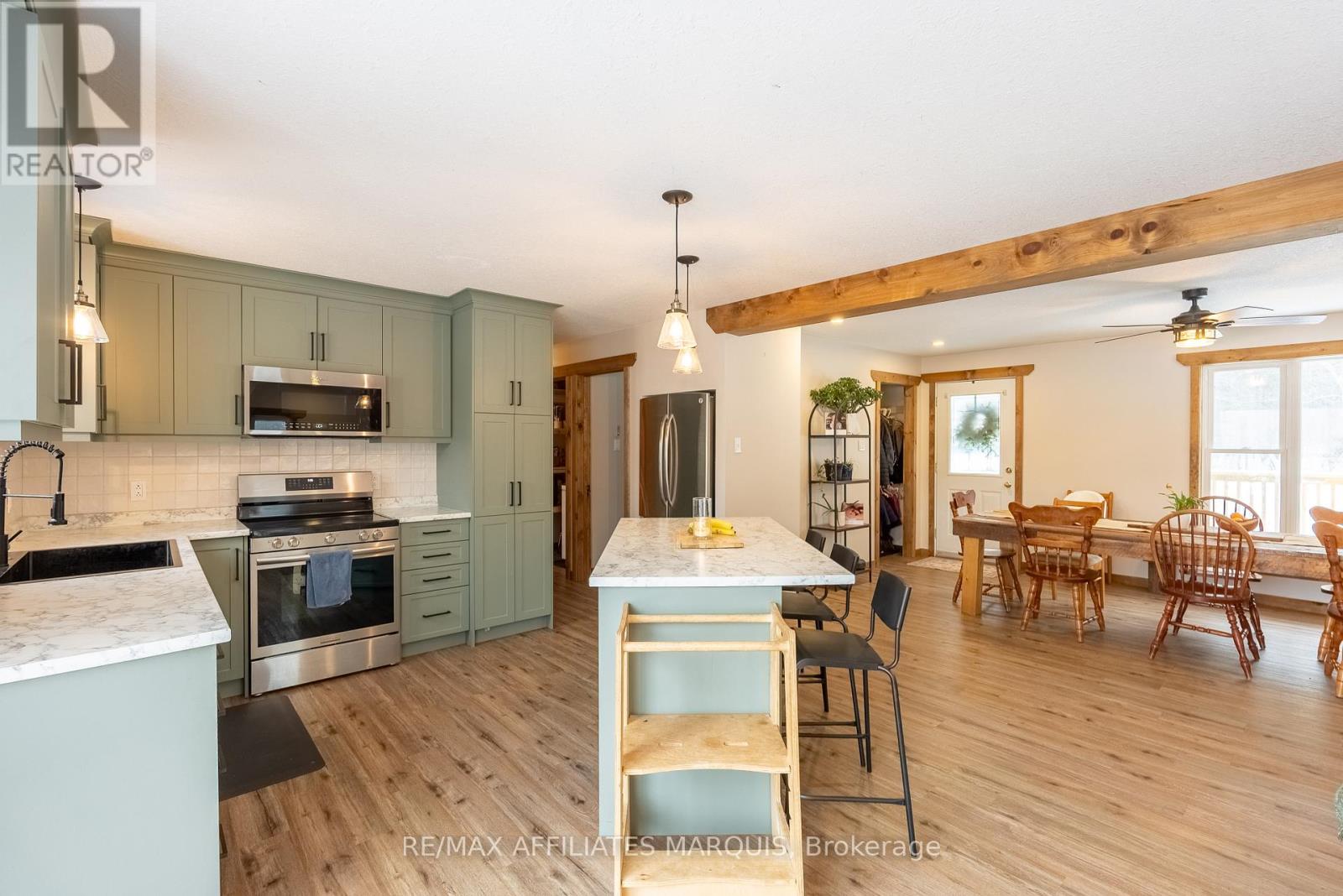 Welcome home to your beautifully renovated 3 + 1 bedroom, 2 bathroom bungalow, situated on a picturesque 1.04-acre lot. This meticulously updated residence offers a perfect blend of modern luxury and tranquil country living, making it an ideal sanctuary for a young family to thrive. Enjoy a bright and airy open concept layout that seamlessly connects the dining, and kitchen areas, with a newly renovated kitchen equipped with brand-new appliances, perfect for culinary adventures. With new siding, roofing, and windows, this home boasts enhanced curb appeal and energy efficiency, while the newly landscaped yard adds to the charm of this inviting property. The additional living space in the finished basement includes a versatile playroom/office and a convenient walkout, designed for family gatherings and entertaining. Stay cozy year-round with a wood heat system complemented by a propane furnace, the wood stove is included in the sale. Nestled on a peaceful private road, this property offers tranquility while providing ample space for outdoor activities, gardening, and relaxation. With plenty of parking options and room to build a garage or workshop, the possibilities for customizing your outdoor space are endless. This home is more than just a place to live; its a lifestyle. With its generous layout, modern conveniences, and expansive outdoor space, your family will have all they need to create lasting memories. Don't miss your chance to own this exceptional discover the perfect backdrop for your family's next chapter! (41833799)