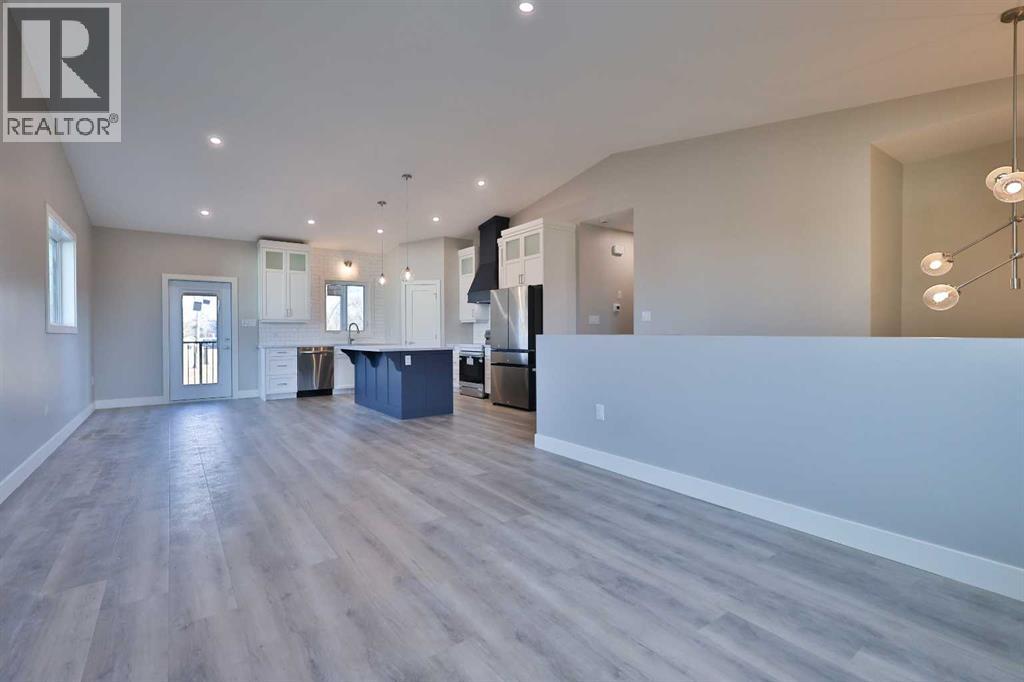 Welcome to this stunning new-build family home in the heart of Picture Butte, thoughtfully constructed by Horizon Homes—a builder known for quality craftsmanship and homes designed with real families in mind. This beautifully finished property offers five bedrooms and three full bathrooms, with a highly functional layout that includes three bedrooms on the main level, highlighted by a spacious primary retreat complete with a luxurious ensuite featuring a double vanity and walk-in shower. The chef-inspired kitchen is truly the heart of the home, showcasing custom cabinetry, a large island, a generous pantry, and an abundance of natural light that flows effortlessly through the open-concept design. Comfort and convenience are elevated with central air conditioning, a garage heater, a massive double attached garage, and a huge laundry room!! Downstairs, enjoy a spacious family room perfect for entertaining or relaxing, along with an oversized basement storage room to keep everything organized! Step outside to the back deck and take in peaceful views of the expansive green space this home backs onto—ideal for families who value privacy and outdoor living. This exceptional home checks every box for effortless family living—call your REALTOR® today and book your private showing! (31468403)