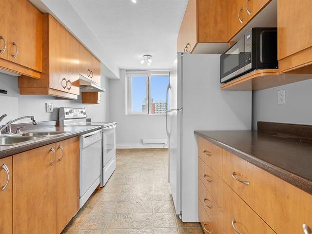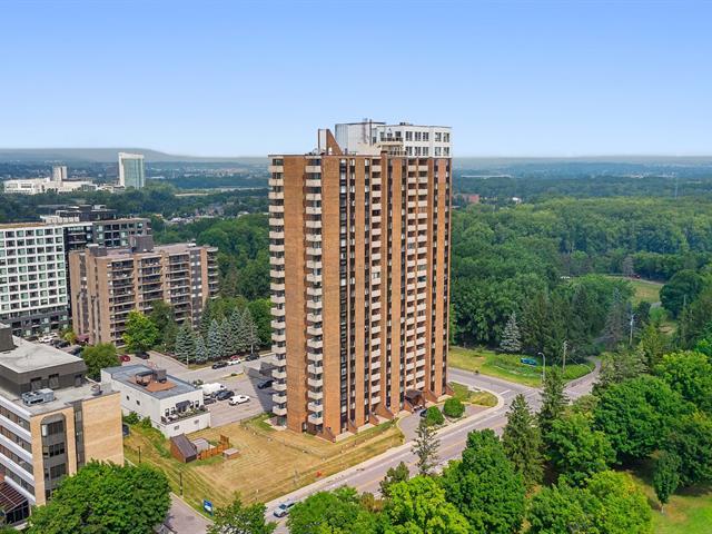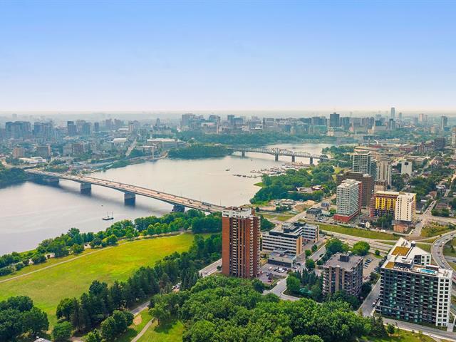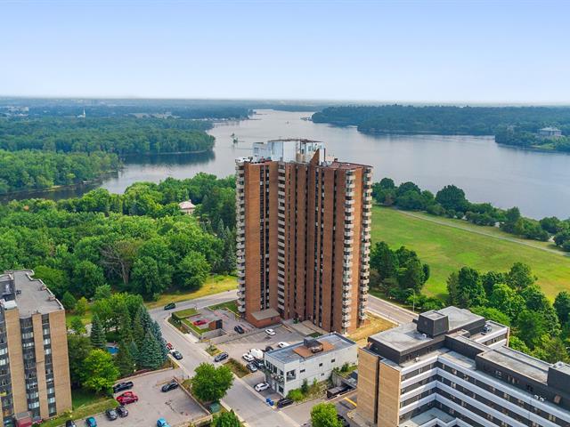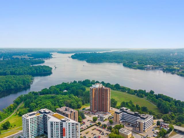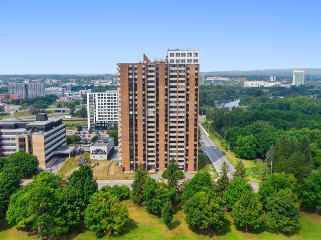 Bright 1-bedroom condo at La Tour Notre-Dame with a large private balcony and stunning views. Abundant windows, full bathroom. The building offers an elevator, shared laundry facilities, and a convenience store on the ground floor. Condo fees include hot water and basic Videotron cable. Ideally located less than 1 km from Ottawa, near highways, public transit, and across from Parc Jacques-Cartier. Peaceful and practical lifestyle, perfect for owner-occupant or investment. (49322611)