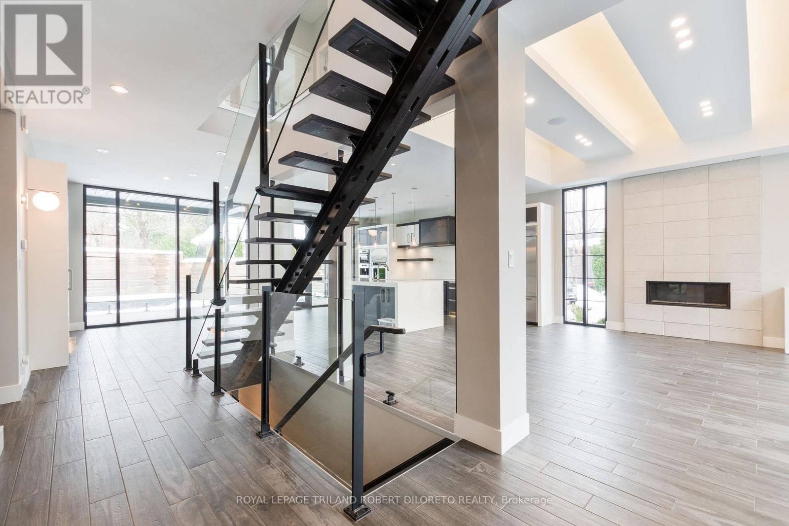 Fine Executive living on quiet court nestled against Thames River! Total wow factor in this custom built 3+1 bedroom (including gorgeous main floor primary), 3.5 bath 2-storey home with finished lower level, double attached garage & low maintenance exterior featuring in-ground sports pool! This stunning magazine quality home is ideal for any sized family and is loaded with features boasting: contemporary design with an abundance of customized storage space, loads of oversized windows to flood the home with natural light, high ceilings, ample recessed lighting, carpet free open concept main floor perfect for entertaining, chef's kitchen boasting large island and plenty of custom cabinetry overlooking spacious dining area & rear exterior with covered deck; luxurious main floor primary bedroom features jaw-dropping 5pc ensuite, wall of built-in closet cabinets + walkout to deck; main floor powder room & laundry; ascend the graceful glass rail staircase to upper level featuring huge family room with wall of cabinetry, 2 oversized bedrooms with walk-in closets and luxurious 5pc family bath; need more space?--then check out the fabulous finished lower level including 4th bedroom with ensuite privileges to 3pc bath, recreation room, exercise room can be 5th bedroom + plenty of storage. Busy professionals & families will appreciate the low maintenance exterior with refreshing sports pool and large covered rear porch. Super location only steps to Thames Valley Golf Course, foot bridge to Springbank Park walking trails, Storybook Gardens + short drive to downtown and all amenities! Immaculate condition & fast possession. More details available & be sure to view media link. (41834618)