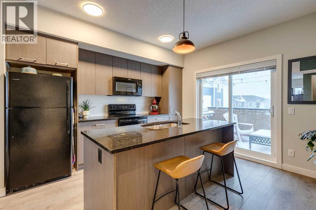 Welcome to 2103 Jumping Pound Common in Cochrane's sought-after Jumping Pound Ridge, where LOW CONDO FEES deliver exceptional value for modern, carefree living! Nestled just steps from Jumpingpound Creek and scenic walking trails, this impeccably designed 2017-built three-storey townhouse spans 1,280 sq ft of bright, inviting space, boasting two generous bedrooms, one full bath, one half bath, and a flexible den on the main level—perfect for a home office, workout area, or guest retreat. Ascend to the open-concept second floor, where a gourmet kitchen with sleek granite countertops, ample cabinetry, and premium appliances flows seamlessly into the living area, illuminated by abundant natural light and leading to a spacious balcony with gas line for effortless BBQs and outdoor enjoyment. Upstairs, the primary bedroom accommodates a king-size bed with ease, complemented by a second bedroom, full bathroom featuring a deep soaker tub, and convenient in-unit laundry. Finished with an insulated attached garage offering extra storage, this well-cared-for gem provides year-round appeal— from summer adventures along the Bow River to winter fun on Cochrane's top sledding hill, all near playgrounds, schools, shops, and quick access to Calgary. Seize this all-season haven—call a Realtor now to schedule a viewing! (31469916)