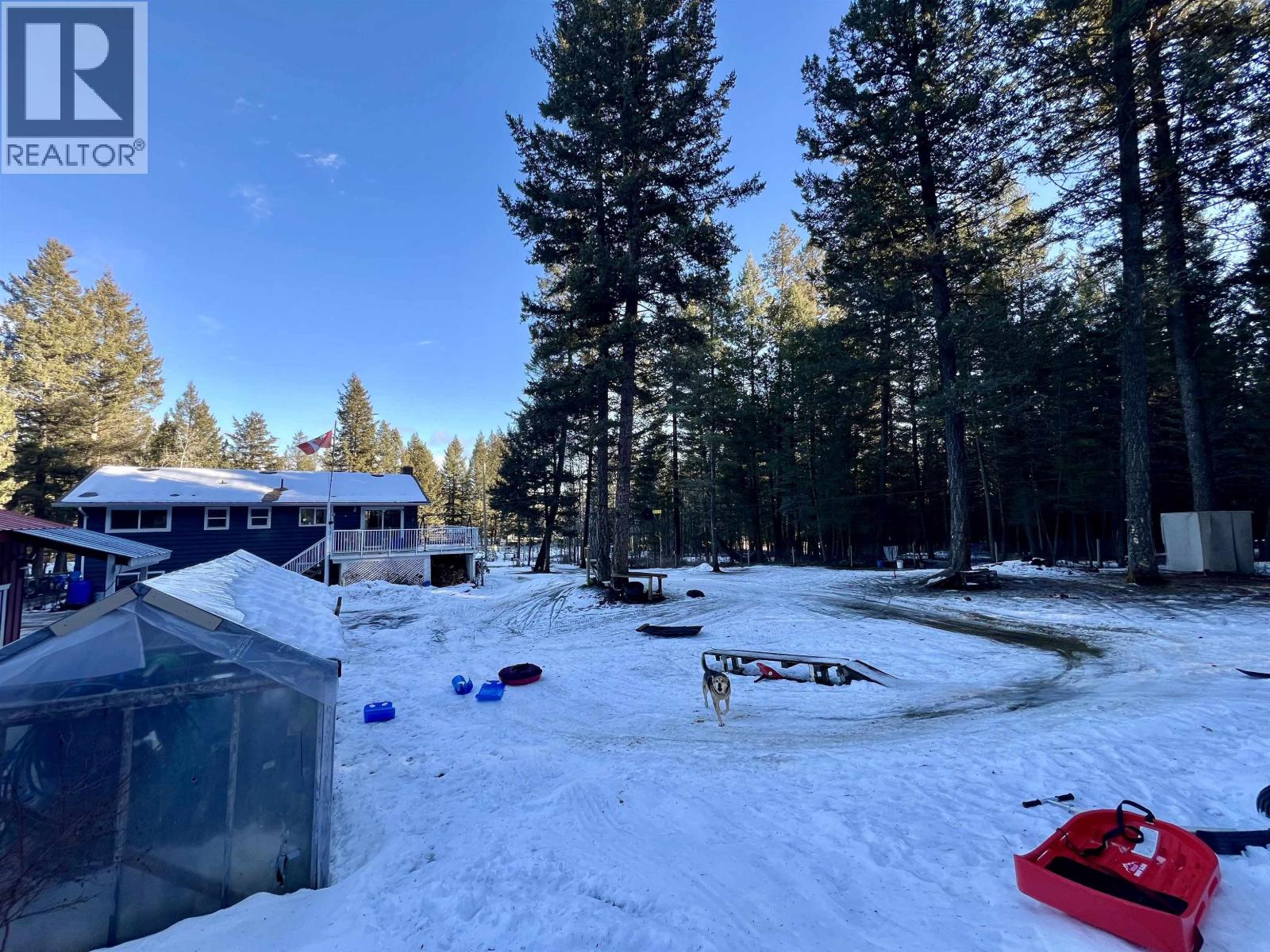 This well-maintained 5-bedroom, 3-bathroom home offers bright living spaces, a newly updated kitchen, and an 8-year-old roof for added peace of mind. Situated on a fully fenced 0.76 acres of nicely landscaped usable land, the property features mature gardens, fruit trees, a greenhouse, space for chickens, and a 600'ft detached workshop with electricity-perfect for hobbies or storage. Having greenbelt next door gives you direct access to outdoor recreation. The home is close to the Elementary school and just 10 minutes from 100 Mile House, combining peaceful country living with everyday convenience. (32269551)
