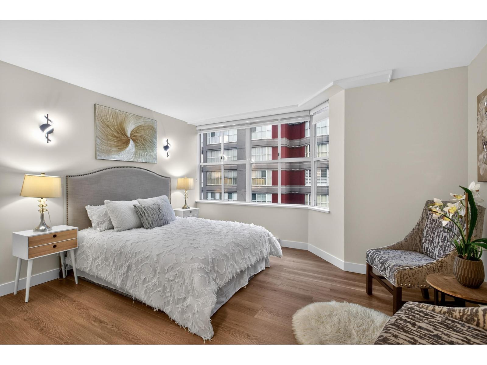 Welcome to your new home at Chancellor Place. Tucked away in the back quiet corner, you will find this bright, stunning, fully renovated unit with an open concept living, dining, kitchen area perfect for entertaining. Over 900 sq ft of living space which includes one bed, one bath plus flex room. Enjoy beautiful sunsets from your enclosed balcony/office. Situated next door to Sun Farms fresh fruits and vegs and within a block to Cactus Club, Timmy's, The Keg, liquor store, banks, schools, pub and plenty of fast food joints and Indian restaurants. Chancellor Place offers Underground Parking, Storage locker, Gym, Indoor Pool and Beautiful Gardens. Easy access to all the major highways. (32269563)
