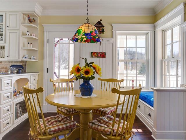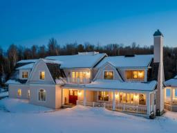 Perched on the heights of Lake Massawippi, in a sought-after neighborhood offering lake and mountain views, lake access, and exceptional natural light. This elegant country residence, inspired by the finest homes of the American East Coast, captivates with its rich woodwork, cedar shingle exterior, soaring ceilings, and generous interior volumes. Impeccable construction quality throughout. Featuring 4 bedrooms with the possibility of 6, an inviting primary suite with balcony, 3.5 bathrooms, a geothermal system, and a double garage. (41484059)
