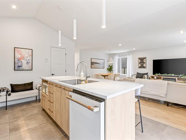 Superbe plain-pied 28 x 36 de qualité supérieure offrant 1 chambre au rez-de-chaussée ainsi que 2 chambres additionnelles au sous-sol entièrement aménagé, 2 salles de bains complètes et une vaste salle familiale. Cuisine moderne et ultra fonctionnelle, aires de vie ouvertes et lumineuses, idéales pour recevoir. Garage 16 x 24, terrasse 16 x 14, patio 6 x 12 et terrain aménagé de 5564 pi². Façade en CanExel et pierre. Secteur jeune et familial, près des services. (54118533)
