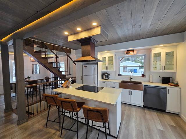 Amoureux des belles essences de bois, cette propriété est pour vous! Rénovée en majeure partie avec goût, elle offre un cadre de vie calme et réconfortant. L'exceptionnel escalier en merisier rouge massif, les plafonds en lambris de tremble, les poutres en pin jaune teinté créent une atmosphère chaleureuse. L'aire ouverte du confortable salon et de la superbe cuisine accueillante et fonctionnelle permettent de beaux rassemblements en famille, entre amis. Les 3 chambres à l'étage ainsi que la magnifique salle de bain avec plancher chauffant complètent cet habitat haut de gamme. Découvrez ce bijou avec vue sur le lac lors d'une visite! (55429990)