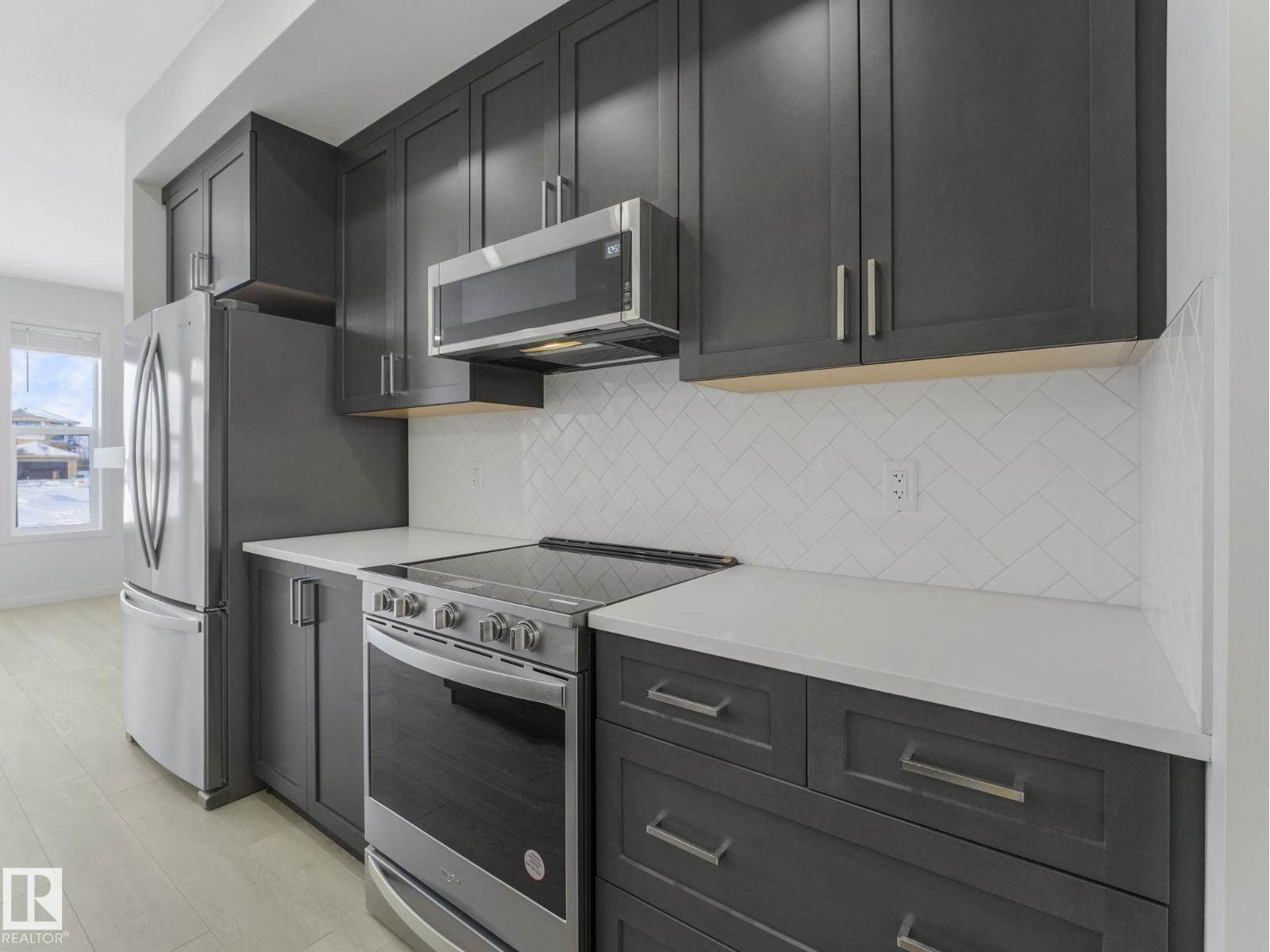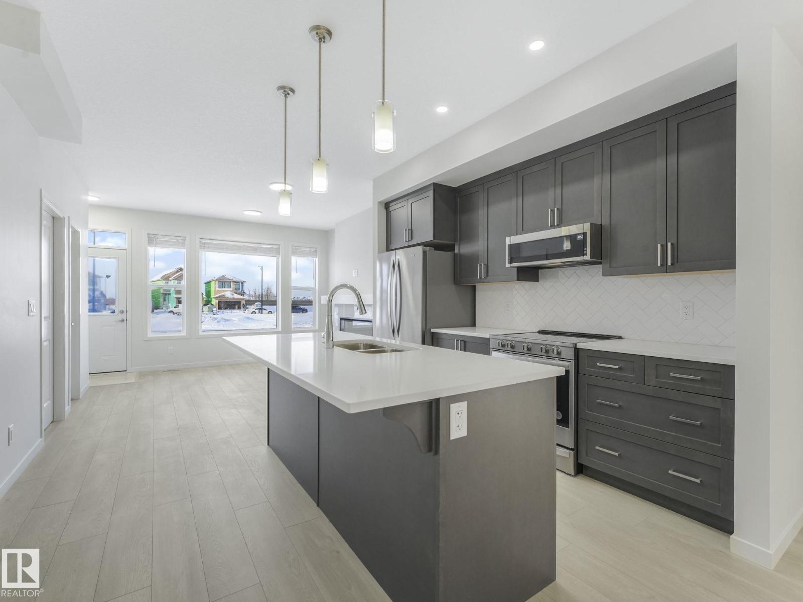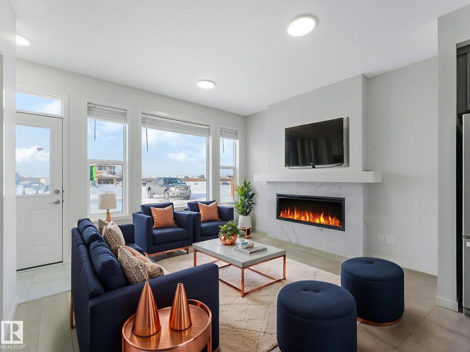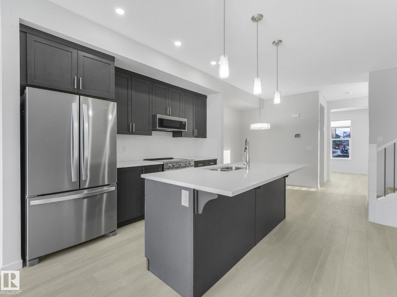 Welcome to this brand-new, never-lived-in home offering thoughtful design and modern finishes throughout. The upper level features three bedrooms, a flex room, a 4-piece main bath, and convenient top-floor laundry. The primary bedroom includes a walk-in closet and a 4-piece ensuite with dual sinks and a stand-up shower. The main floor showcases contemporary colors, a stylish island with quartz countertops, stainless steel appliances, and a cozy living room with an electric fireplace. A half bath and a den, ideal for a home office or additional living space, complete this level. To top it off, this home includes a legal basement suite—perfect as a mortgage helper—featuring a high-end kitchen with peninsula island and eat-in bar, stainless steel appliances, a spacious living room, a beautifully finished bathroom with quartz countertops, and separate laundry. Completing the property is a concrete pad ready for a future double garage. A fantastic opportunity to own a turnkey property with income potential. (33665818)