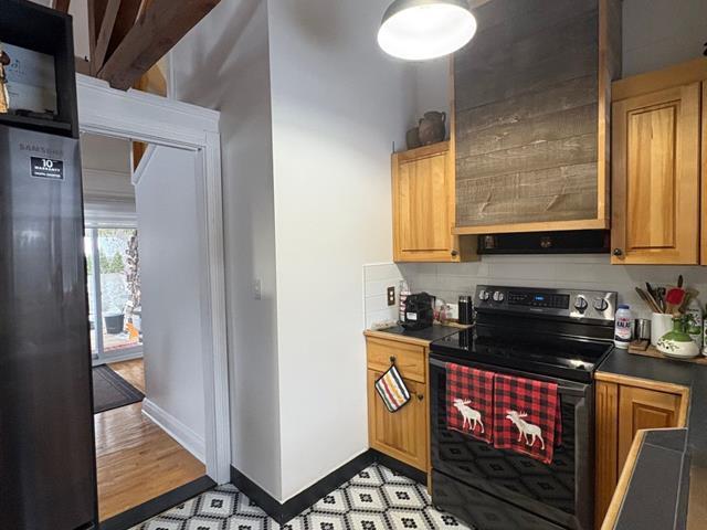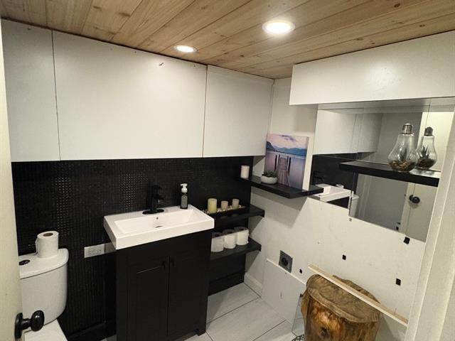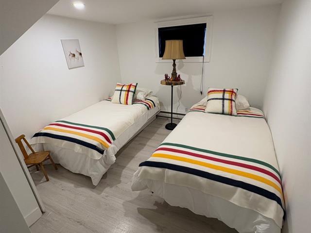 Chalet chaleureux avec 2 étages ou vous pouvez disposer de plus d'espace ou accueillir plus d'invites. Entièrement meublée offrant 2 chambres+2 salle de bains. Idéalement situe a proximité de l'autoroute, des pistes de ski, des épiceries, des café etc. Profitez de soirées douillettes pour admirer la vue avec les grandes baies vitres et la foyer. Deux porte fenêtres donnent accès a la cour privée latérale entourée de cèdres niché avec un spa. Addend..A venir (56356293)