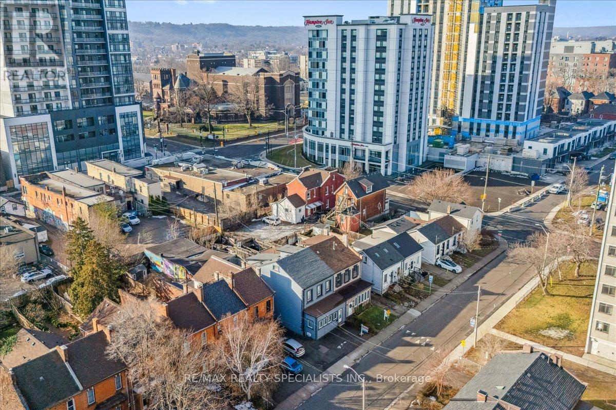 Unlimited potential! Featuring 4 bedrooms + office/bonus room, family room/loft, 2 Kitchens and 2 full bathrooms, plus a massive 25 ft x 48 ft garage/workshop, parking for 5 vehicles. Centrally located in downtown Hamilton W/easy access to Hwy 403, excellent transit, outstanding walkability. Hess Village is one of Hamilton's top nightlife hubs, 3-minute walk to FirstOntario Centre (Event Arena), close to Jackson Square Mall, Hamilton Farmers' Market, restaurants, cafés, grocery stores & downtown amenities and waterfront. Recently renovated, ideal for extended family living, or income potential, offering privacy and flexibility while designated as a single-family residence, it is spacious enough to comfortably accommodate two families. Upon entry, you're welcomed by a large sunroom/mudroom. The main level features a generous living room, open-concept renovated kitchen, SS appliances with space for a large dining table, a primary bedroom, and a 2nd room ideal as an extra bedroom/office. A separate rear entrance provides convenient access to parking and includes an additional mudroom. The 2nd level offers a bright living room, two well-sized bedrooms, and a newly renovated kitchen with SS appliances, a versatile bonus room can serve as an office/Extra bedroom, a secondary rear staircase provides direct access to parking from the second level. 3rd floor leads you to a large loft which is perfect for a family room, games room, or additional bedroom. The home includes a separate exterior entrance to a partial unfinished basement used as a utility room. Laundry is located on the main floor, with easy access by both units to share. The rear driveway leads to the impressive garage/workshop, divided into two spaces, with an additional Large unfinished basement ready for your ideas. This area is getting revamped with newer condominium towers being built, and hotel just on the corner, This property is zoned D5. A/C (2021), Furnace (2016). See Video, 3D Matterport, Floor Plans. (41844093)