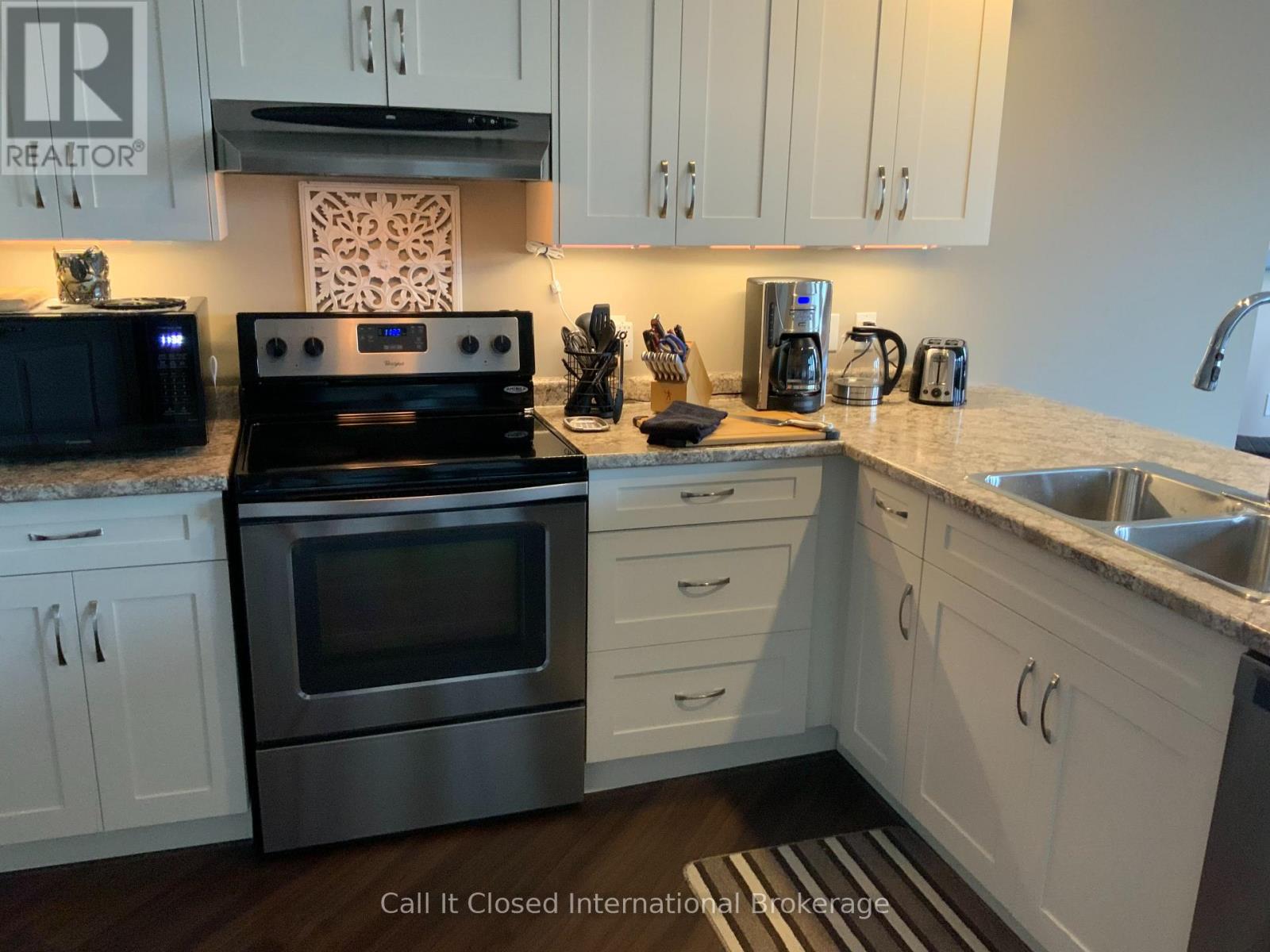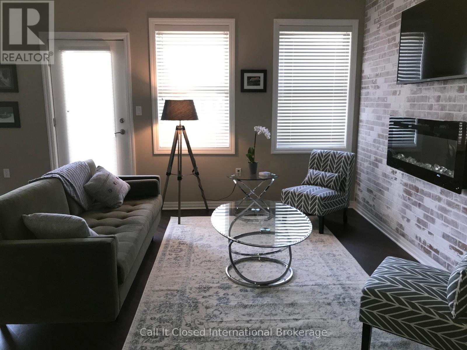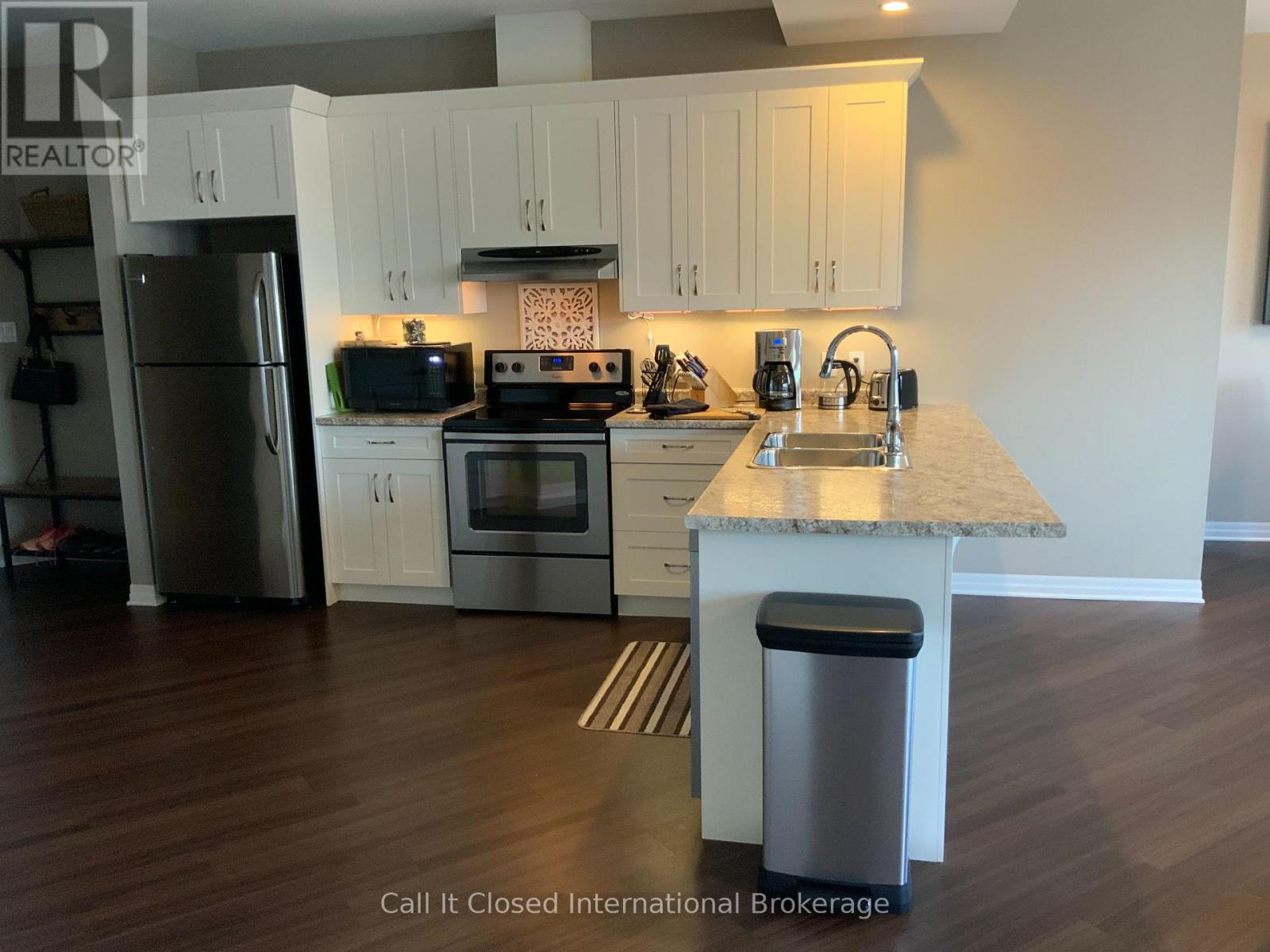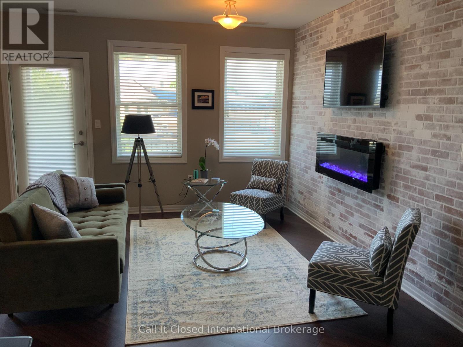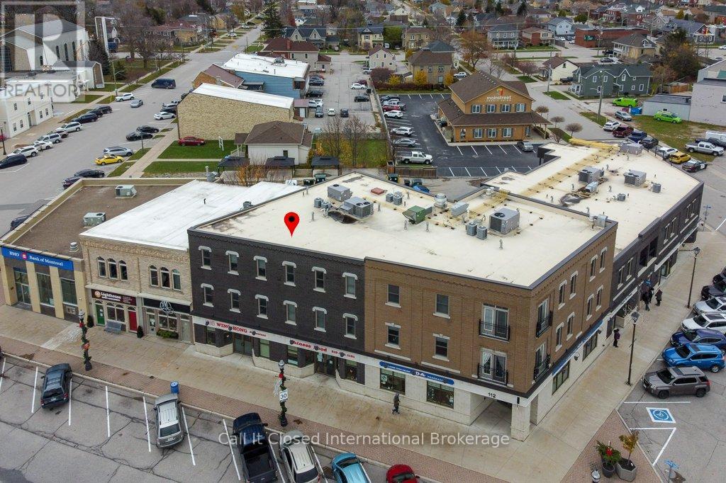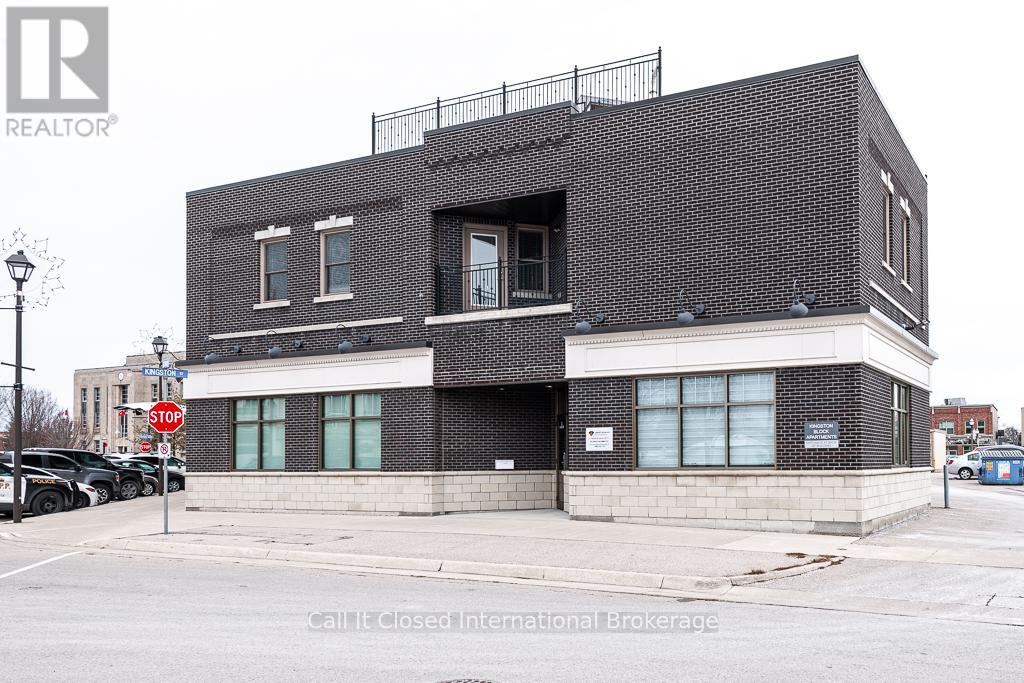 Rare Condominium Living in Goderich - Bright, Accessible & CarefreeCondominium apartments are a rare offering in Goderich and throughout Huron County, making this beautifully finished residence an exceptional opportunity. Located in a newer, well-maintained building, this east-facing condo enjoys abundant morning sunlight, creating a bright and welcoming living environment.Designed with adaptability and long-term comfort in mind, the building offers elevator access, hallway handrails, and wide common areas, making it especially well suited for seniors, downsizers, or accessible living needs.This one-floor living condo features an open-concept layout with durable plank laminate flooring throughout, providing both style and ease of mobility. The modern kitchen is finished with snow white shaker-style cabinetry, quality countertops, and excellent storage, flowing seamlessly into the dining and living areas-ideal for everyday living or entertaining.The living room is highlighted by a contemporary electric fireplace, adding warmth and ambiance without maintenance. Step out to the private balcony and enjoy the sunny eastern exposure, perfect for morning coffee or relaxing in the fresh air.The bedrooms are generously sized and include large, ample closets, offering practical storage rarely found in condominium apartments. A well-appointed bathroom completes the layout with comfort and accessibility in mind.Ideally located close to amenities, walking trails, and Goderich's vibrant downtown and waterfront, this condo delivers a rare combination of low-maintenance living, accessibility, and modern comfort in one of Ontario's most sought-after small communities.A seldom-available condominium apartment in Goderich-perfect for those looking to simplify, downsize, or plan for comfortable long-term living. (41844827)