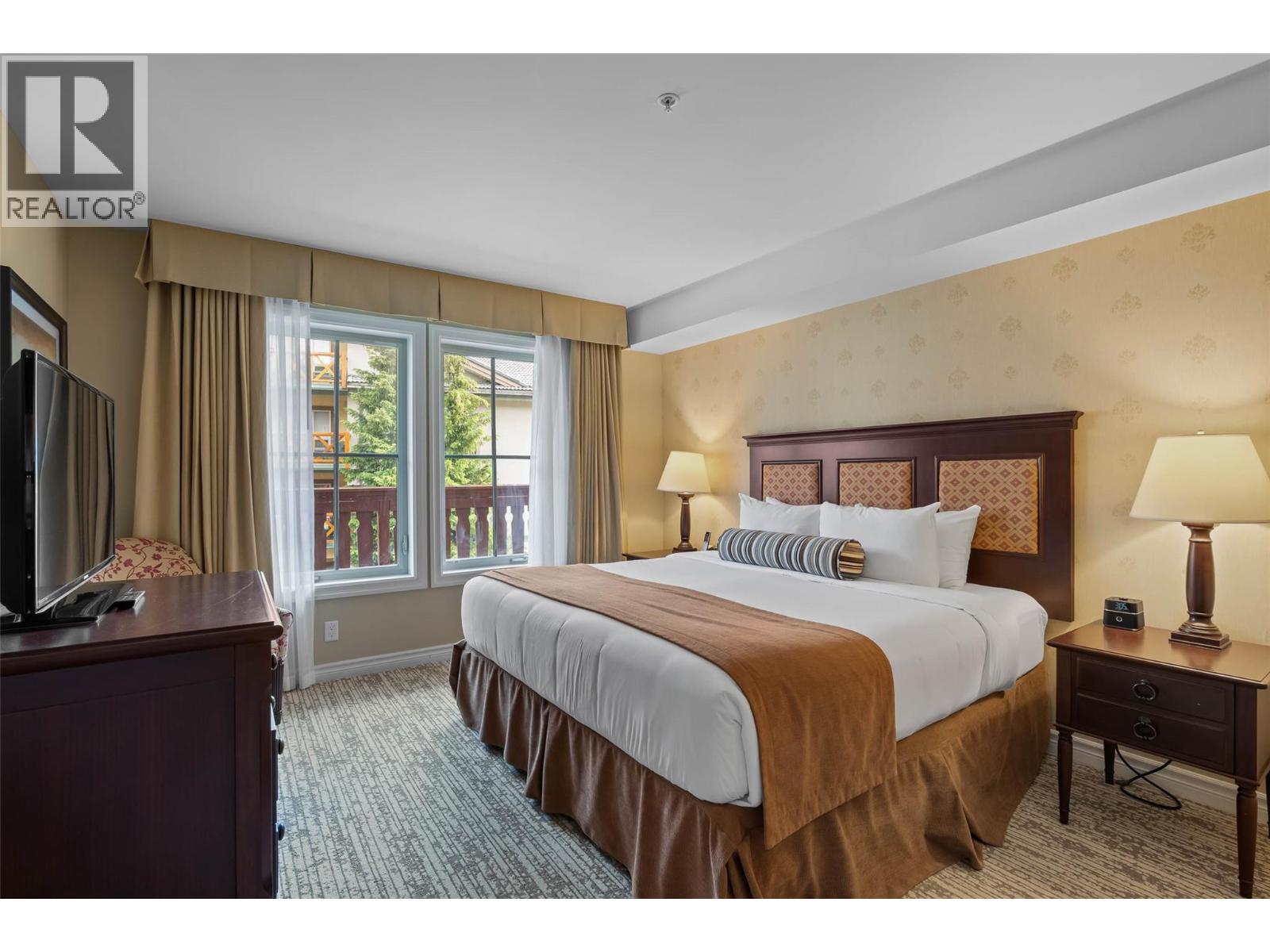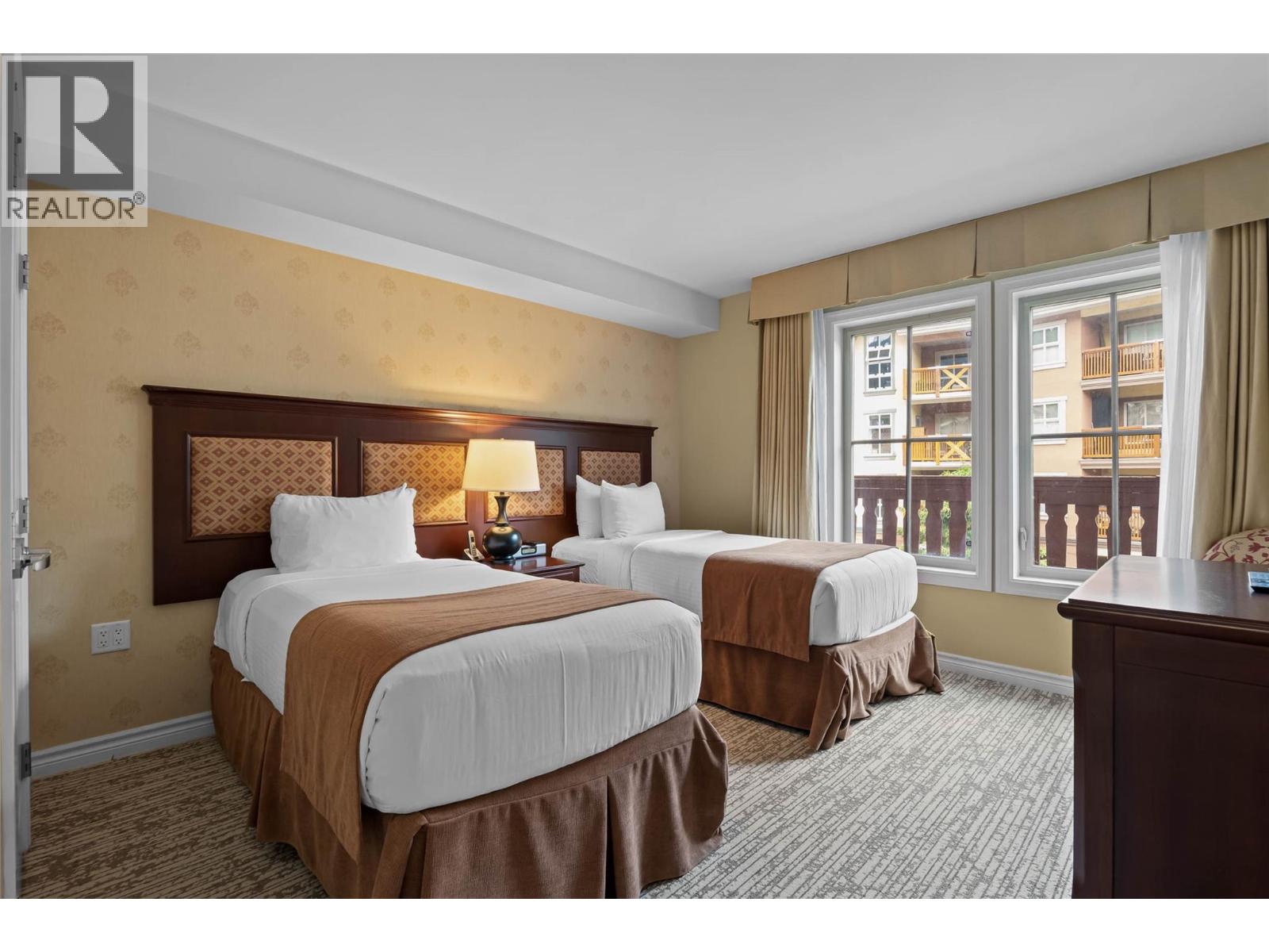 Turn key quarter share ownership in the Residences at the Sun Peaks Grand. Located for true ski-in/ski-out access in the vibrant center of Sun Peaks Resort. This unit boasts one of the largest floor plans available, highlighted by the most expansive balcony in the complex, providing stunning views of the Village Stroll. The full kitchen features elegant granite countertops and stainless steel appliances, opening to a generous dining and living area complete with a welcoming fireplace. Designed for comfort, it easily sleeps six with a sofabed, a king-sized bed in the primary bedroom, and two twin beds in the second. This is the only complex in the resort offering a comprehensive suite of amenities, including an outdoor heated pool, five hot tubs, a fitness room, sauna, on-site restaurants, secure ski and mountain bike valet service, owner storage, heated underground parking, and convenient in-suite laundry with A/C! The all-inclusive monthly strata fee simplifies ownership, covering all utilities, taxes, and insurance. Don't miss this quarter ownership opportunity! GST applies. (39572279)