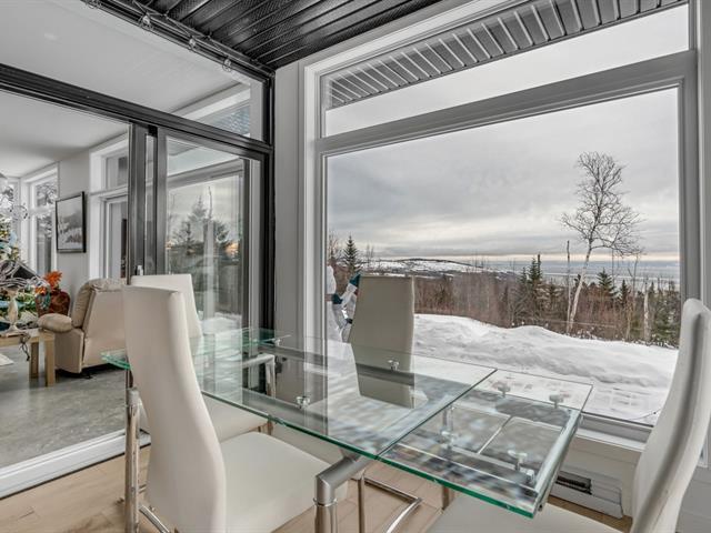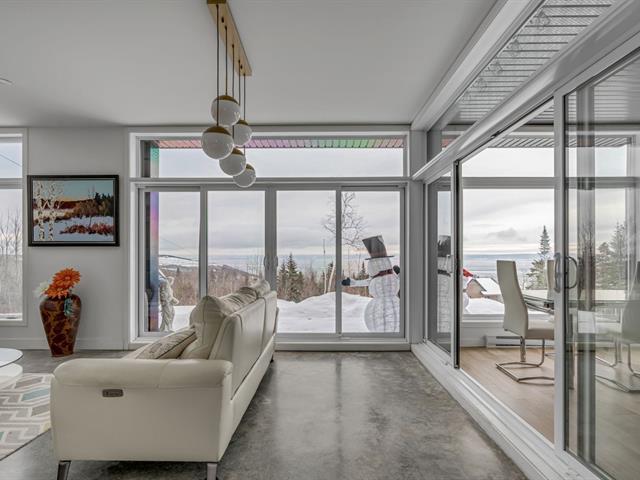 Cette magnifique propriété située dans La Seigneurie des Éboulements offre une vue imprenable sur le fleuve Saint-Laurent, l'Isle-aux-Coudres et le village de Les Éboulements. La luminosité exceptionnelle, les levers de soleil spectaculaires ainsi que la valse des bateaux sur le fleuve transforment le panorama en véritable toile vivante. Les aires de vie, généreuses et conviviales, ont été pensées pour mettre en valeur ce décor naturel unique. Implantée sur un terrain intime et partiellement boisé, la propriété propose un cadre paisible au coeur de Charlevoix. Location à court terme permise et propriété située dans une rue sans issue. (42019603)