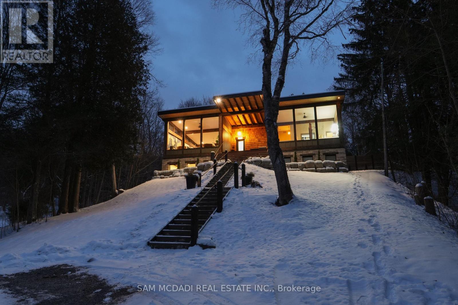 Welcome to 2084 Grand Blvd., a contemporary 3-bedroom, 4-bath summer home set within the exclusive, gated community of Cedar Springs, nestled along the Niagara Escarpment in the sought-after village of Kilbride, just 15 minutes from downtown Burlington. This private enclave of only 83 homes spans over 600 acres of protected nature and trails and offers a challenging golf course, pickleball and clay tennis courts, a sandy beach, and a vibrant community with year-round events, including a summer camp for children and grandchildren. Designed for recreation and entertaining, the home offers over 3,600 sq ft of living space across two levels with ceilings up to 12 ft, highlighted by post-and-beam Douglas fir timbers and sweeping views of the golf course and escarpment, with the first tee just steps from the front door. The main level features open-concept kitchen, dining, and living areas overlooking the first fairway, with a chef-inspired kitchen offering built-in appliances, walk-in pantry, and oversized centre island, while the dining area comfortably seats twelve. The serene primary suite enjoys golf course views, a dressing room, and spa-inspired ensuite, while two additional bedrooms share a Jack-and-Jill ensuite and walk-in closets. The walk-out lower level is an entertainer's retreat with theatre, golf simulator, games area, wet bar, gym, office or optional fourth bedroom, fourth bathroom, and an approx. 500 sq ft workshop/garage with glass walls. Outdoor living includes a covered front porch, rear timber/composite deck with glass railings, fire pit area, raised garden beds, and parking for up to 12 vehicles. Built with an ICF foundation, Shou Sugi Ban, protected Douglas fir framing, spray foam insulation, in-floor radiant heating, unlimited hot water, UV-treated spring water, and Ecoflo septic system, this is a rare offering delivering comfort, privacy, and resort-style living within the GTA. (41852150)