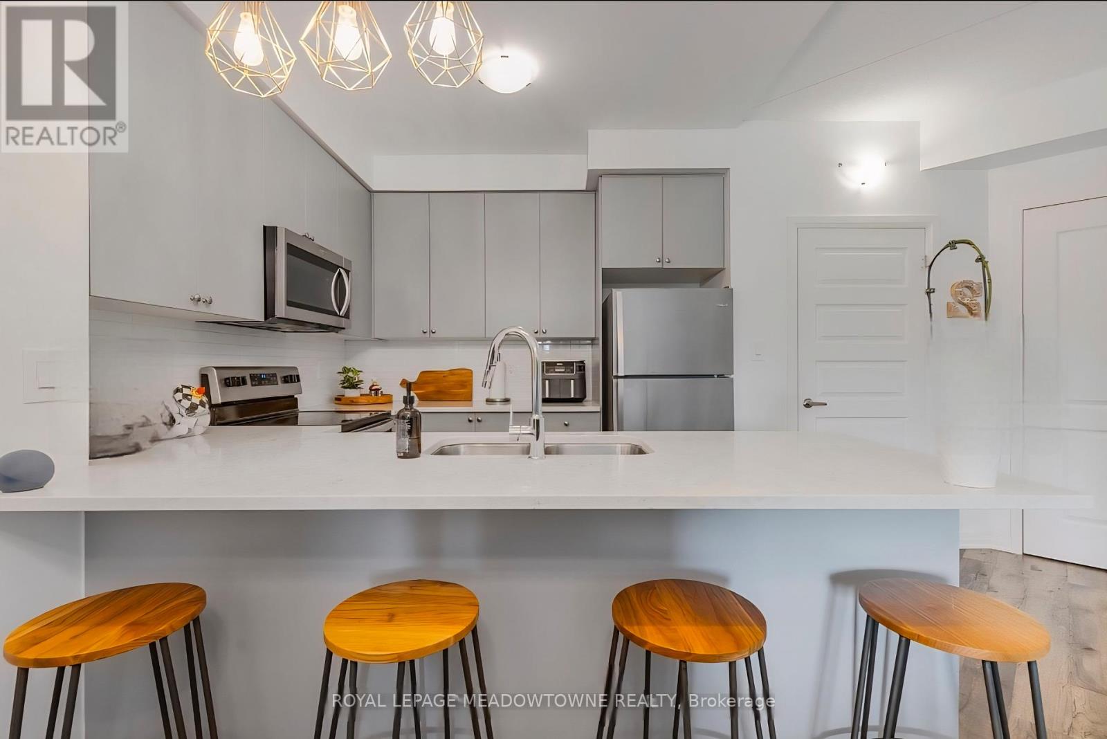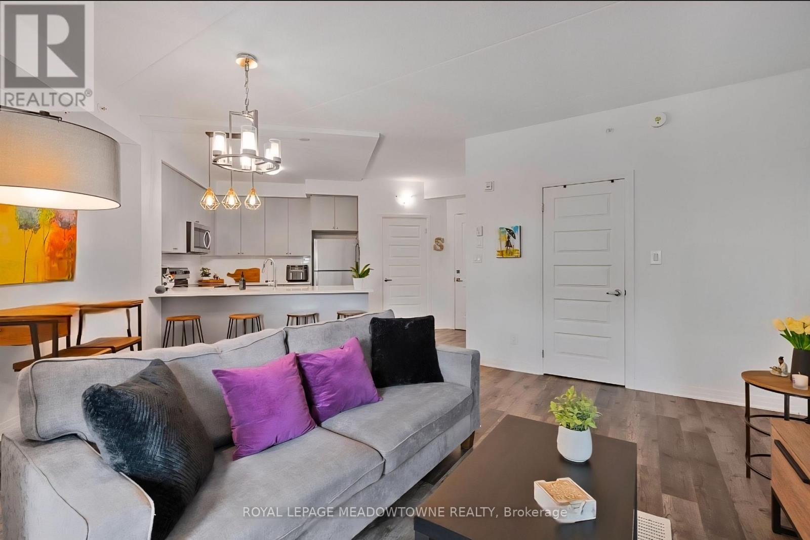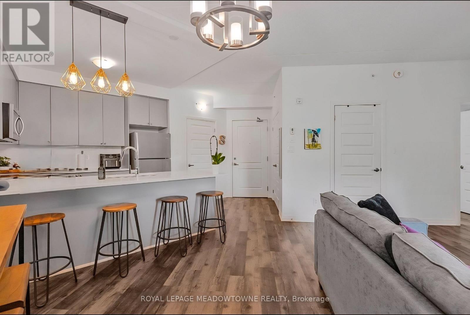 Discover stylish condo living in this beautifully designed one-bedroom suite offering a fantastic open-concept layout and upscale finishes throughout. Featuring a seamless flow from the sleek, contemporary kitchen to the bright living area, this inviting home is ideal for both relaxing evenings and entertaining guests. The chef-inspired kitchen is a true highlight, complete with stainless steel appliances, elegant countertops and backsplash, and high-end light fixtures that add a refined, sophisticated touch. The spacious bedroom easily accommodates a full bedroom set and boasts a large walk-in closet, and a perfect walkout to the private balcony. While the well-appointed bathroom offers ample storage and stylish finishes. Flooded with natural light and enhanced by quality flooring and thoughtful design details, this condo delivers both functionality and flair. Enjoy the added convenience of one underground parking space and one storage locker. Ideally located close to schools, shopping, the hospital, and with easy highway access, this is a perfect opportunity for first-time buyers, downsizers, or savvy investors. Don't miss your chance to call this stunning unit home-book your private showing today! (41854821)