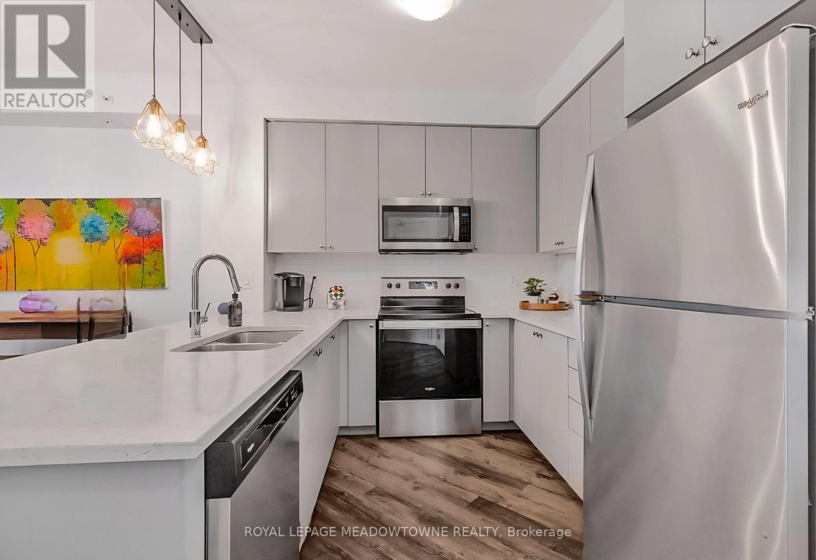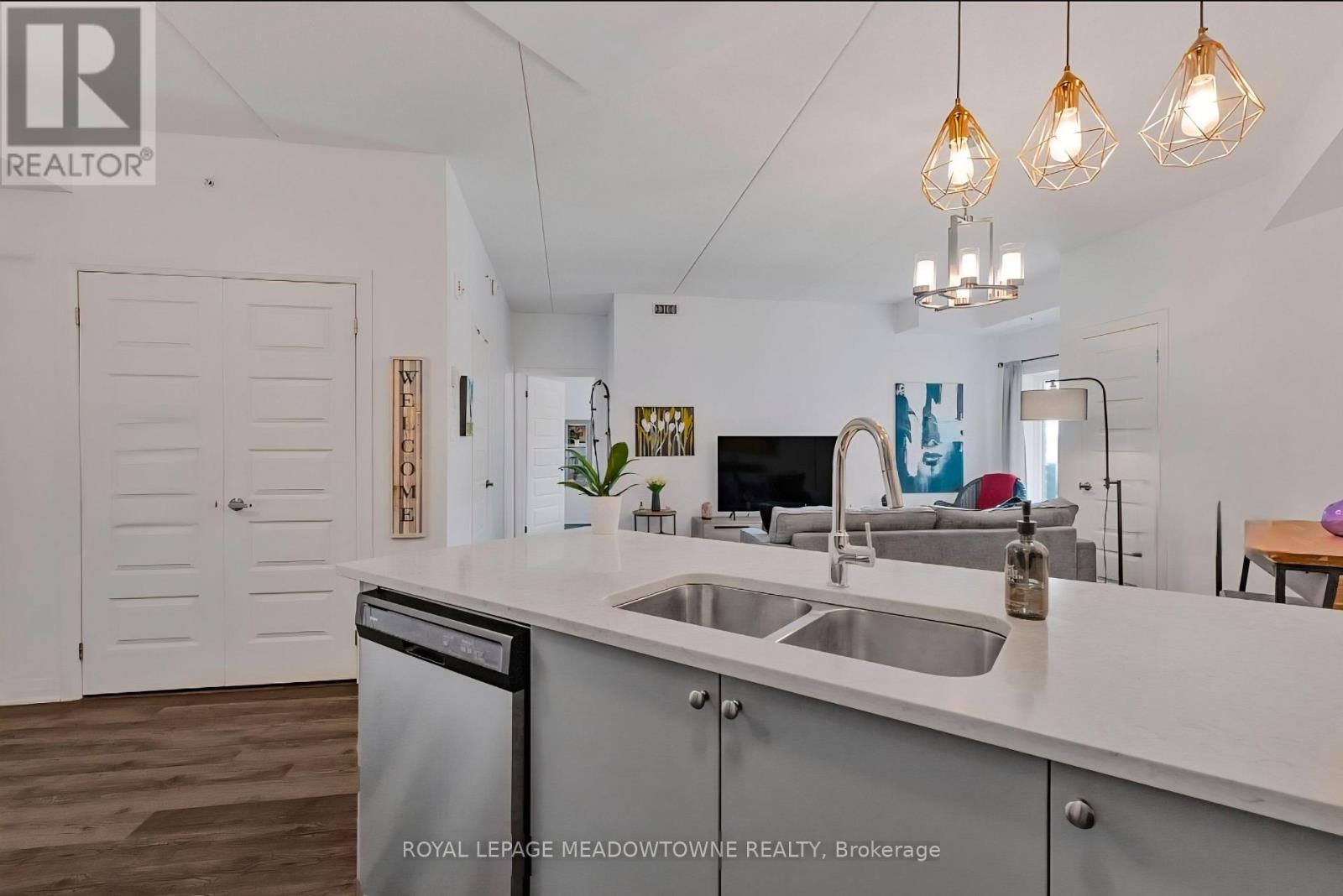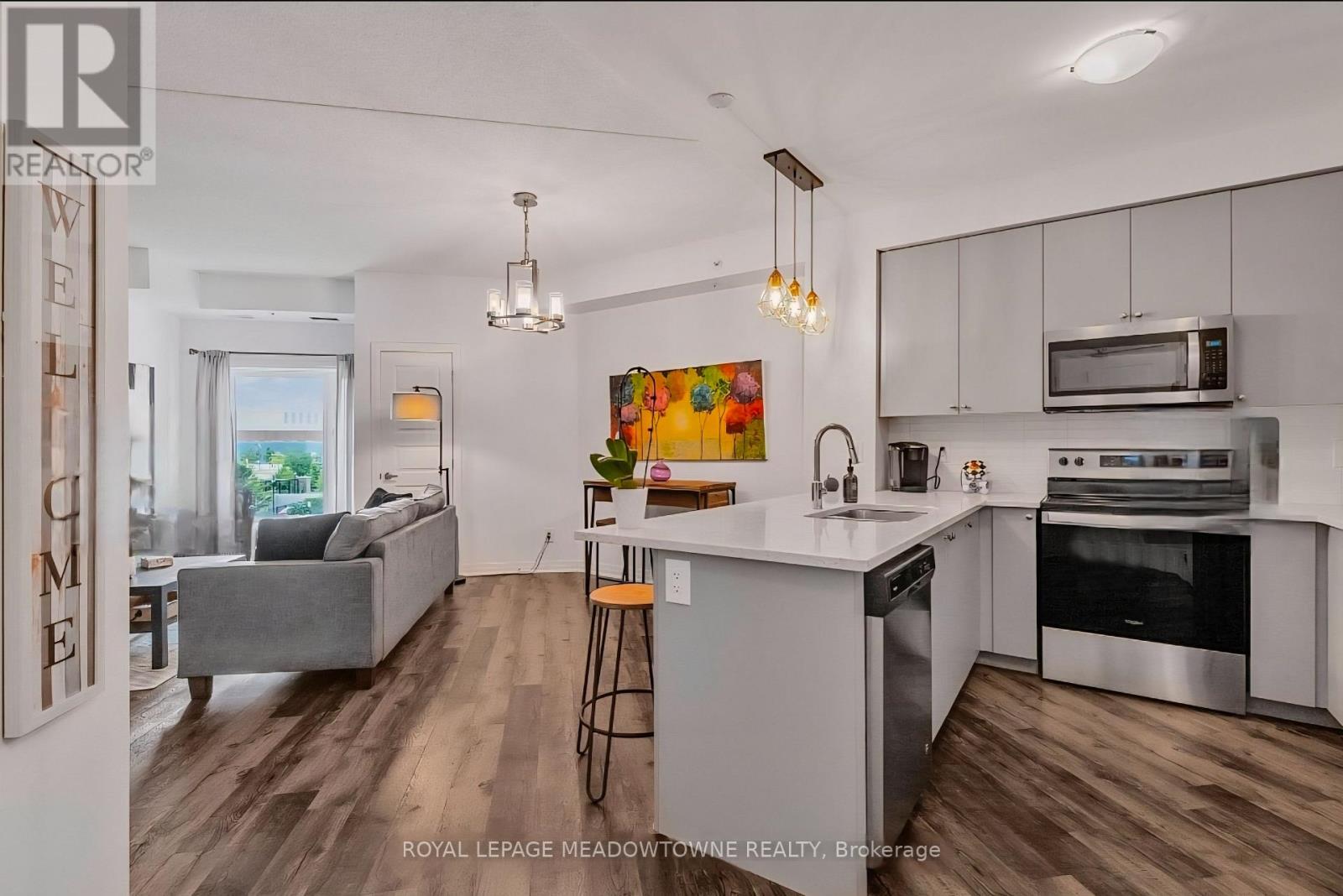 Discover stylish condo living in this beautifully designed one-bedroom suite offering a fantastic open-concept layout and upscale finishes throughout. Featuring a seamless flow from the sleek, contemporary kitchen to the bright living area, this inviting home is ideal for both relaxing evenings and entertaining guests. The chef-inspired kitchen is a true highlight, complete with stainless steel appliances, elegant countertops and backsplash, and high-end light fixtures that add a refined, sophisticated touch. The spacious bedroom easily accommodates a full bedroom set and boasts a large walk-in closet, and a perfect walkout to the private balcony. While the well-appointed bathroom offers ample storage and stylish finishes. Flooded with natural light and enhanced by quality flooring and thoughtful design details, this condo delivers both functionality and flair. Enjoy the added convenience of one underground parking space and one storage locker. Ideally located close to schools, shopping, the hospital, and with easy highway access, this is a perfect opportunity for first-time buyers, downsizers, or savvy investors. Don't miss your chance to call this stunning unit home-book your private showing today! (41854821)