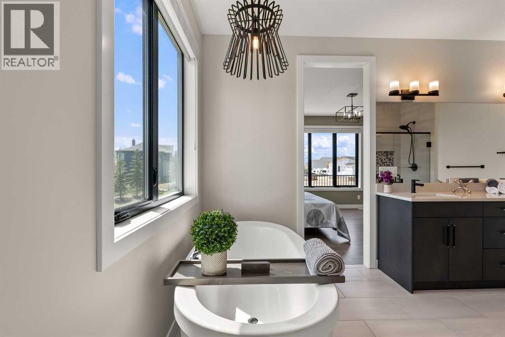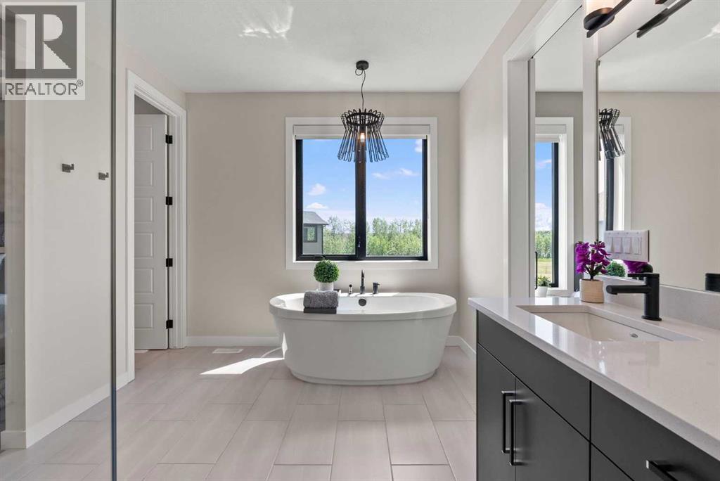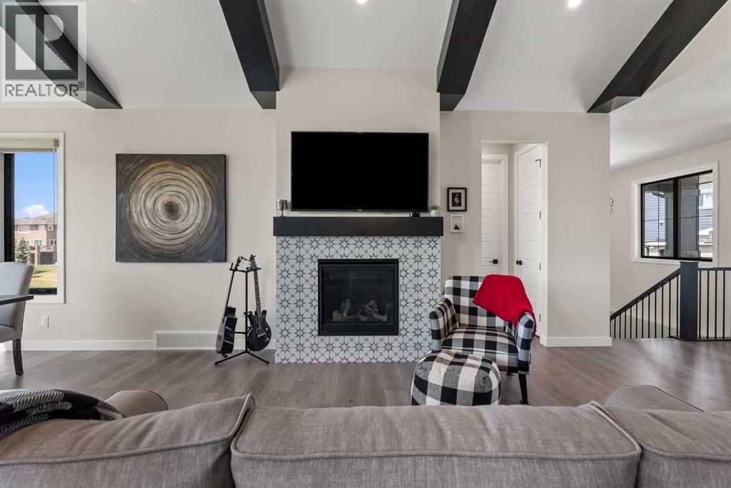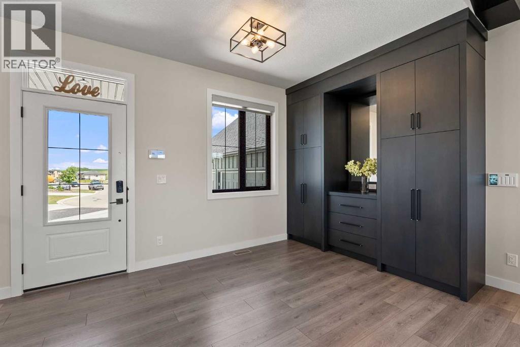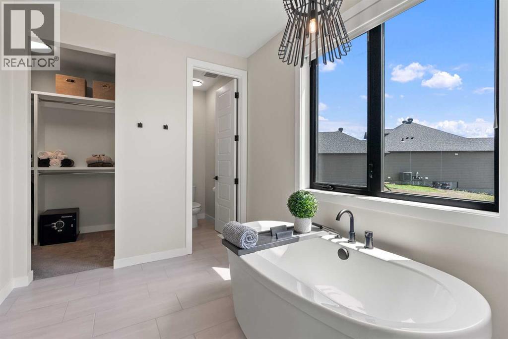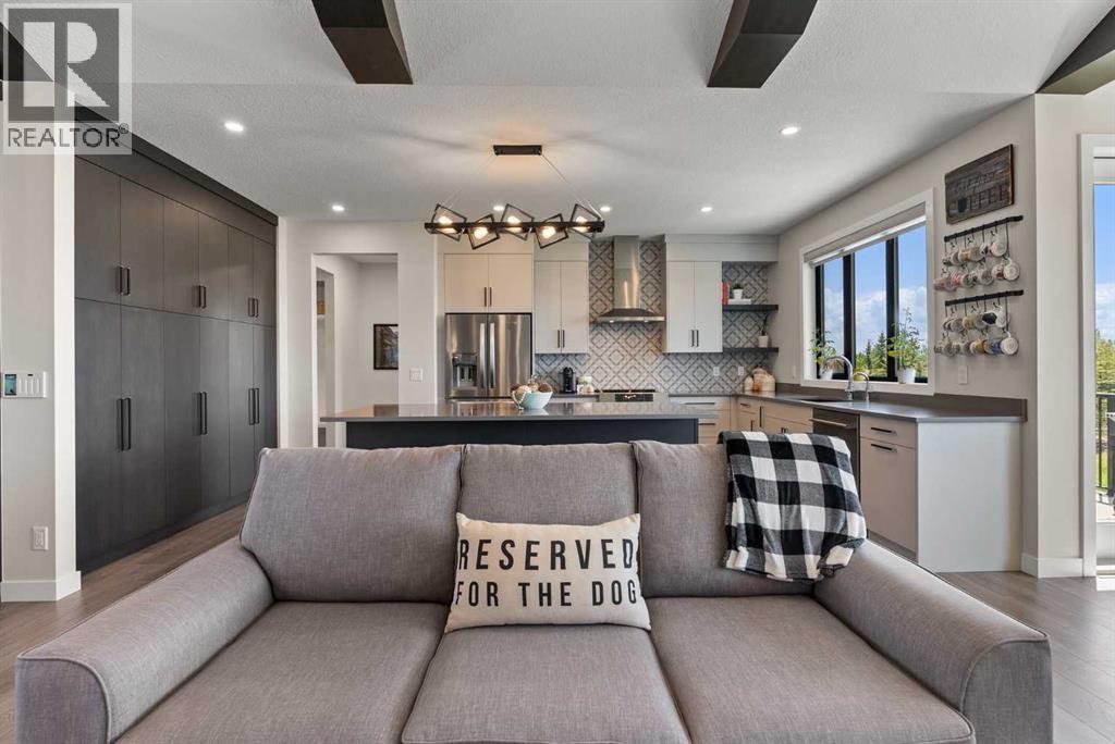 Discover this exceptional Monterra residence, situated just outside Cochrane. Offering nearly 3,400 square feet of thoughtfully developed living space on a generous 0.45-acre lot, this home delivers the premium features buyers expect.The main level showcases an open, airy design with vaulted ceilings that bath the living areas in natural light. The gourmet kitchen features a large island and soft-close cabinets, seamlessly connecting to the dining and living spaces—an ideal layout for entertaining family and friends. The private primary suite provides a retreat with an elegant ensuite that includes a soaker tub, a glass-enclosed shower, and dual vanities, complemented by a large walk-in closet with built-in organizers. Convenience is at hand with a main-floor laundry located along the corridor to the heated, insulated triple-car garage, ensuring everyday practicality.Step outside to the expansive outdoor living spaces, including 12x28-foot decks on both levels, perfect for entertaining and relaxation. The lower-level deck features a hot tub and a remote controlled enclosure offering 3 season comfortability, a serene retreat with stunning mountain views. Throughout the home, custom built-ins enhance both aesthetics and functionality, including a dedicated home office with integrated cabinetry. A built-in pantry provides abundant storage for daily living and entertaining needs.The finished lower level adds two additional bedrooms, a spacious recreation room that opens to a large patio, and a versatile three-season room equipped with retractable screens, enabling comfortable year-round enjoyment of the outdoors.This property blends luxurious finishes with practical design and breathtaking natural scenery, creating an outstanding living and entertaining environment. If you’re seeking a refined, well-appointed home in a tranquil Monterra setting, this residence represents a remarkable opportunity. (31481909)