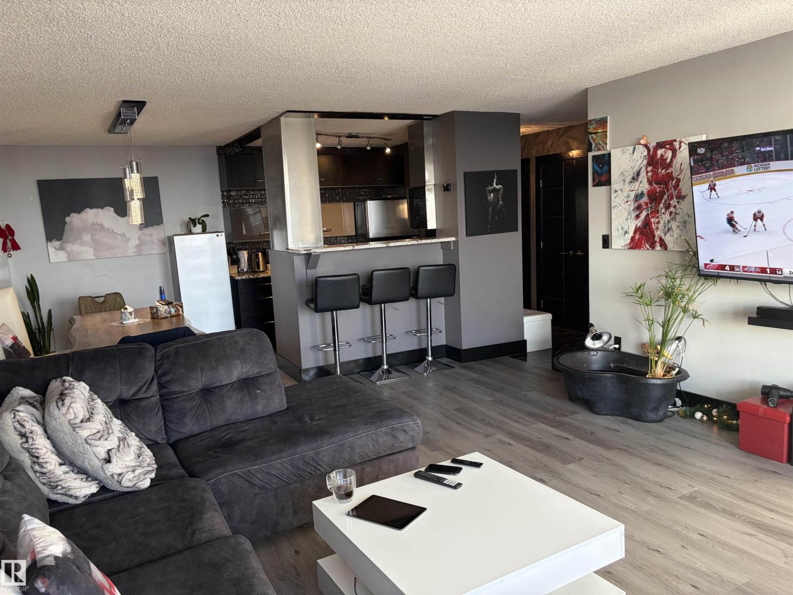 Beautiful 13 floor condo with amazing views of downtown and the river valley. Just minutes from downtown and all the amenities. A short walk to the river valley and LRT to the west end and downtown coming shortly. This fully renovated unit has a large living area, dining room and upgraded kitche. The bedroom is very spacious and has a wall of closets. The luxuriuos bathroom has beautiful tile and a bubble tub to relax and soak away your stress. New vinyl plank flooring throughout, upgraded lighting and doors complete this unit but it is definitely the views that will keep you in AH sit out side with a glass of your favorite and enjoy some of the best views the city has to offer. (33674432)