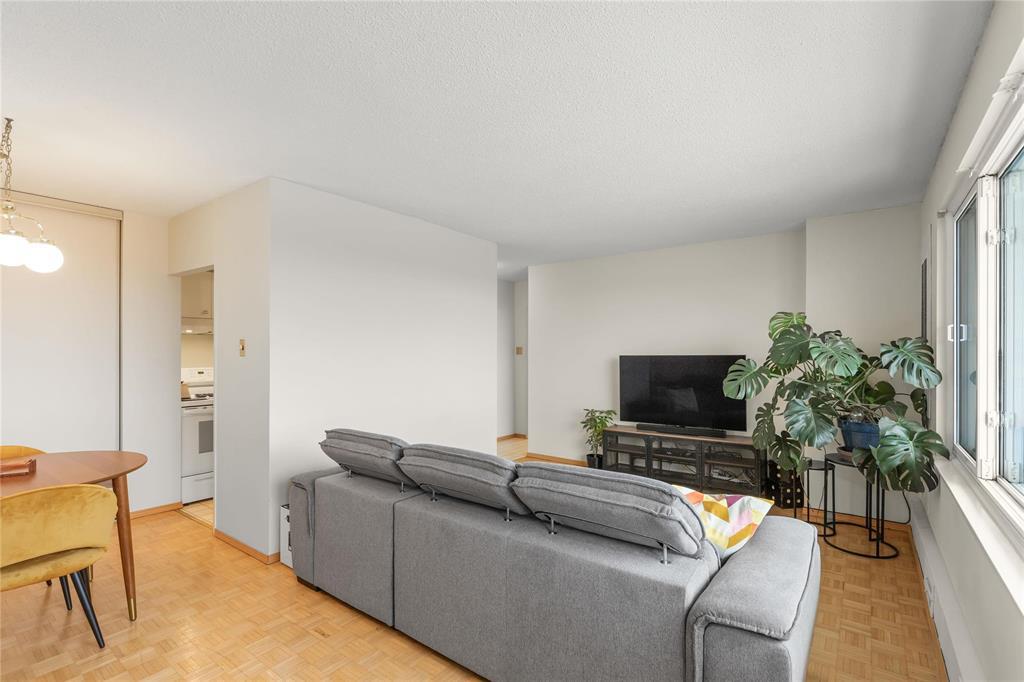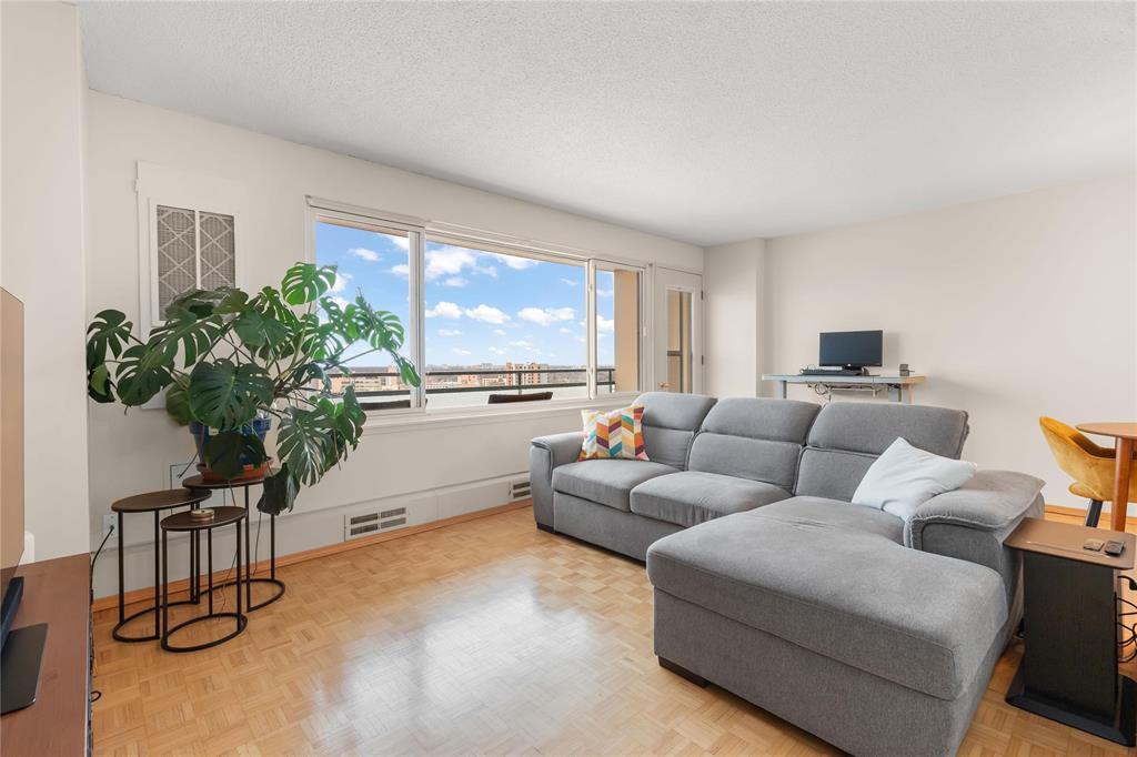 1B//Winnipeg/Top-floor river views, city skyline, and a front-row seat to one of Winnipeg s best neighbourhoods. This bright 1 bed, 1 bath unit at 12F-300 Roslyn offers sweeping river and city views from both the living space and your private balcony also overlooking the building s two outdoor saltwater pools. Inside, you ll find classic wood parquet flooring, a functional layout, and excellent natural light throughout the day. The building is pet-friendly and well managed, with a healthy reserve fund and condo fees that include all utilities plus cable TV, making budgeting easy. Enjoy massive riverfront grounds, two outdoor pools, and unbeatable access to downtown and Osborne Village. Parking options include indoor ($80), covered outdoor ($48), or outdoor ($40) - subject to avaibility. A dedicated Peg City Co-op car is available just steps away, 24/7. A solid unit in a standout riverfront location. (231737623)