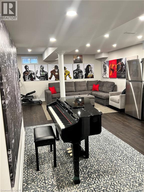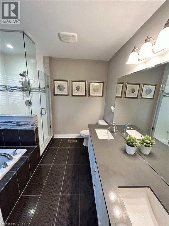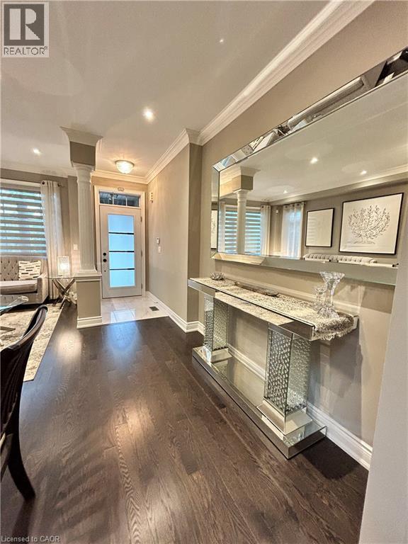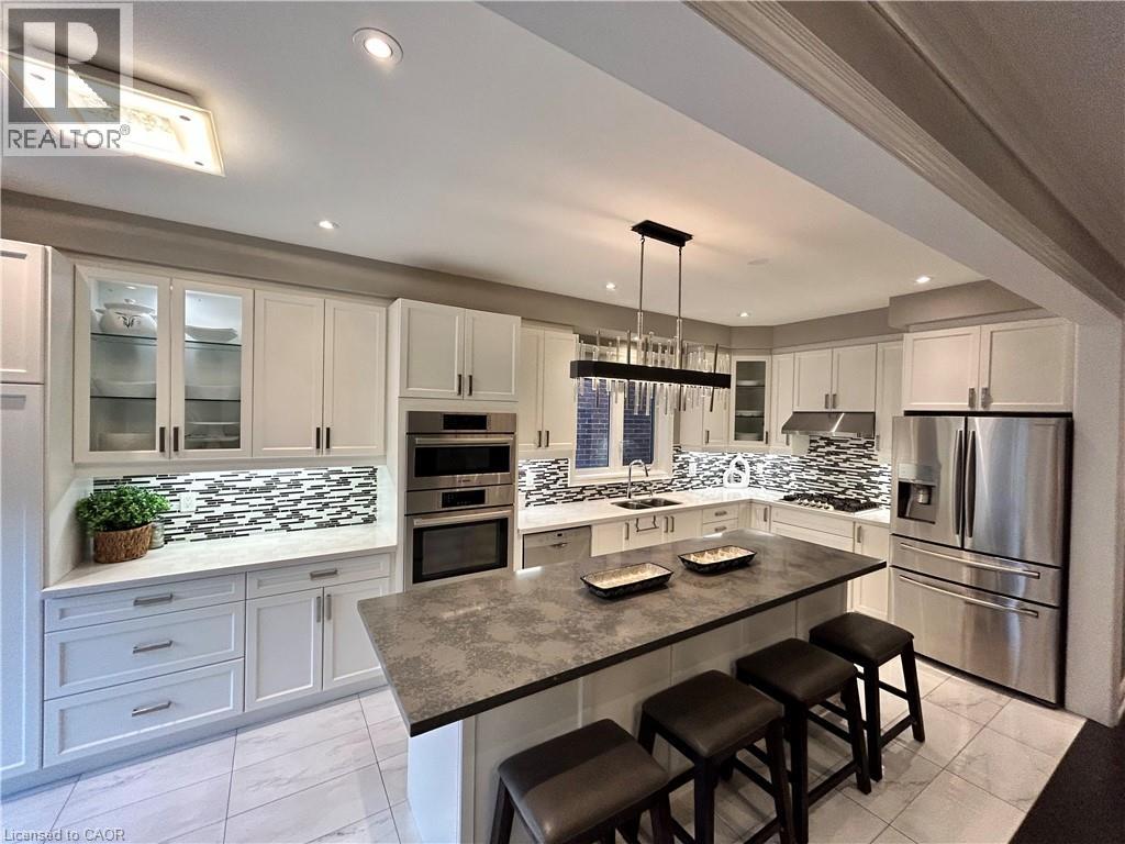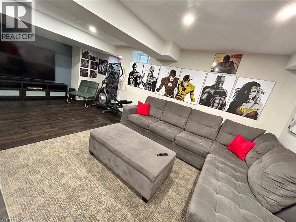 Nestled between the James Snow Parkway and Trudeau Drive, this tastefully upgraded link-detached home is ideally located close to schools, parks, shopping, groceries, and major highways—perfect for a growing family. Offering 4 bedrooms and 3.5 bathrooms, the home features a finished open-concept basement with a spacious great room, wet bar, office/den, pot lights, and a 3-piece bath. The extended chef’s kitchen showcases stainless steel appliances, Caesarstone countertops, a large eat-in island, custom soft-close cabinetry, tiled backsplash, and a walkout to a deck overlooking a paver-stone backyard with an 8' x 10' garden shed. The main floor includes a family room with gas fireplace and a separate living and dining area, enhanced by modern lighting, upgraded handrails with wrought iron pickets, crown mouldings, high baseboards, California shutters, and zebra blinds. Upper-level laundry offers upgraded appliances and linen storage. Hardwood floors throughout, with matching laminate in the basement. Exterior pot lights and fence lighting on timers. Parking for three cars and EV plug-in in the attached garage. (70003198)