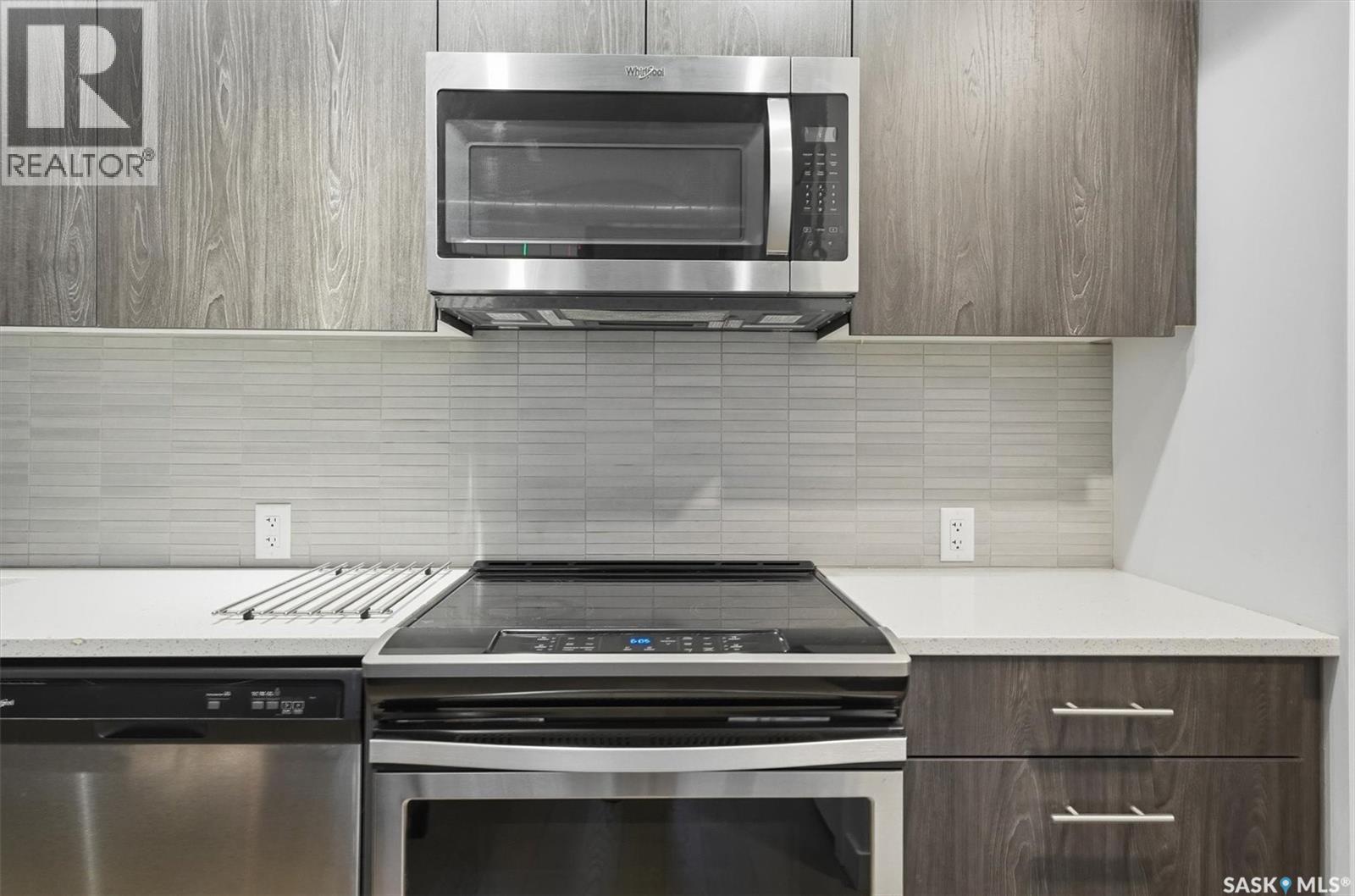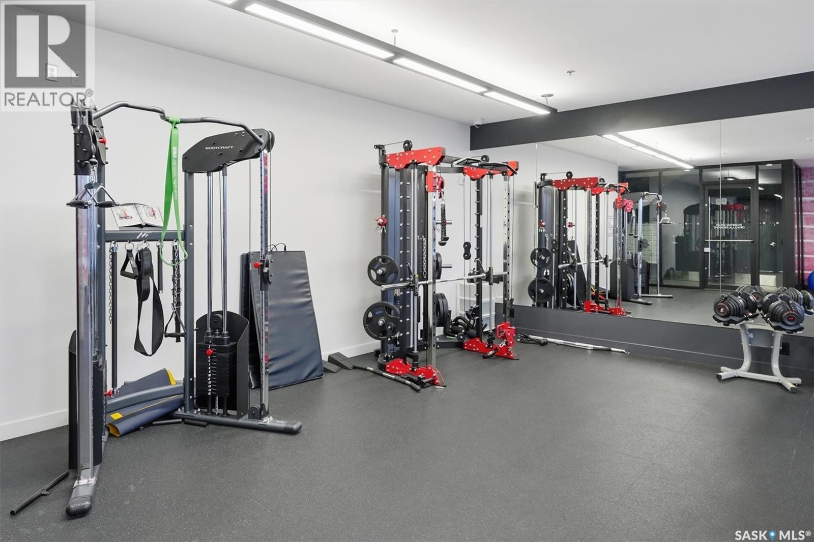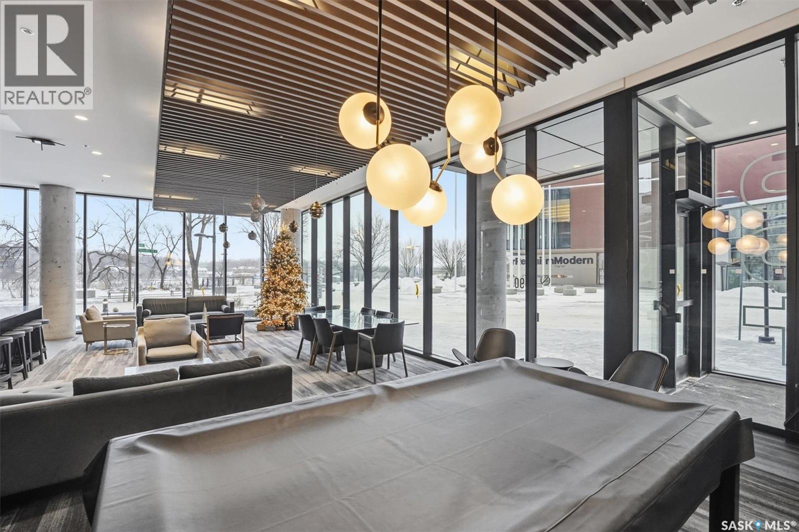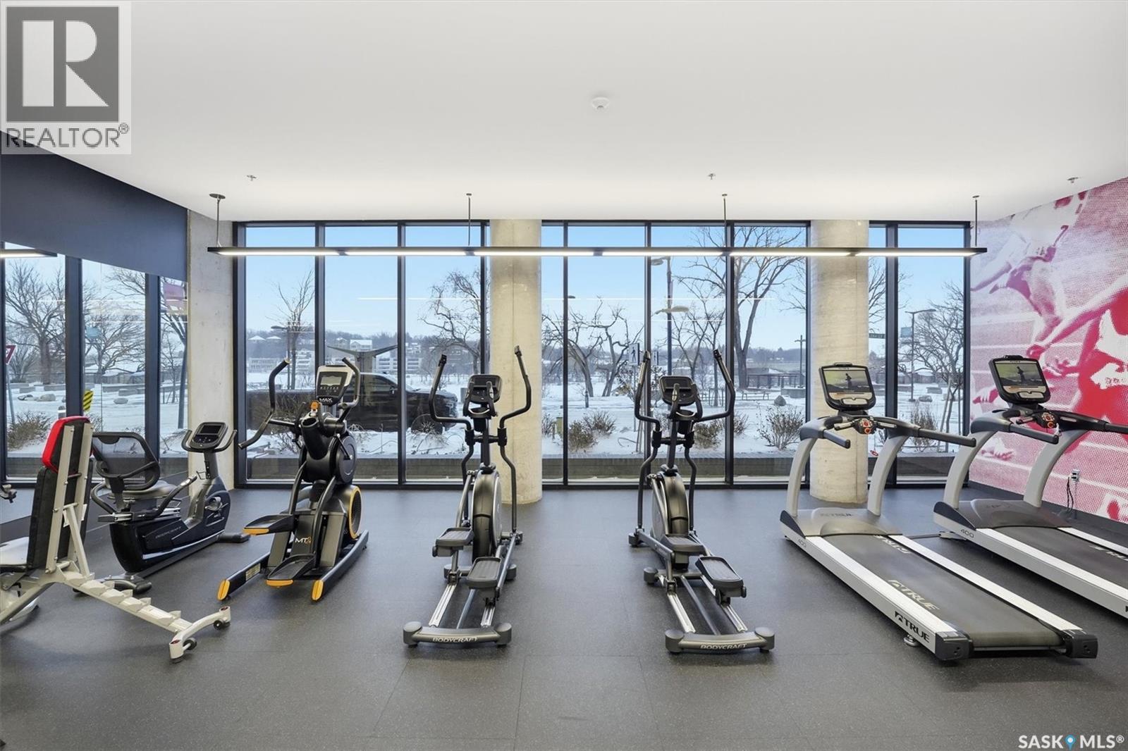 Welcome to River Landing, one of Saskatoon’s iconic high-rise residences that has reshaped the downtown riverbank skyline. Whether you’re stepping into home ownership or expanding your real estate portfolio, there is the option to have this condo come fully furnished / turn-key as an executive rental which presents an exceptional opportunity. This 1-bedroom condo with a versatile flex office/nook and one full bathroom features a thoughtfully designed open-concept layout. The kitchen offers modern cabinetry, quartz countertops, a stylish backsplash, and stainless steel appliances, all complemented by warm hardwood flooring and striking exposed concrete pillars & detail, 9' ceilings and floor-to-ceiling windows flood the space with natural light, while additional highlights include window treatments, sliding barn doors, in-suite laundry, central air conditioning, and a prime heated parking stall conveniently located on the main level (parking stall is titled), pets are allowed with restrictions, secured bike storage. Step onto the balcony to enjoy views of the rooftop green space and downtown skyline—offering the excitement of city living without the unease of excessive height. Located just steps from the riverfront, this unbeatable setting provides immediate access to the Meewasin Valley’s walking and biking trails, the South Saskatchewan River, Remai Modern Art Gallery, Persephone Theatre, and a vibrant selection of restaurants, cafés, and nightlife. This is a rare opportunity to own in the very heart of downtown Saskatoon. (29234017)