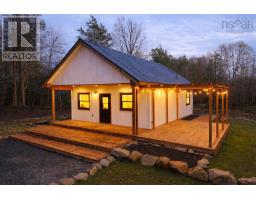 New Home Construction with Wraparound Deck, Lake Access and Shed. This beautifully crafted 2 bedroom home features clean lines, warm wood accents, and a durable metal roof for low-maintenance living. A spacious wraparound deck with pergola-style detailing extends the living space outdoors, perfect for relaxing or entertaining. Large windows provide excellent natural light and views of the peaceful wooded setting. Stone landscaping and a manicured lawn enhance curb appeal, while the private lot offers a quiet, nature-filled lifestyle. Includes deeded access to Porters Lake (Digby County), restrictive covenants and a road maintenance agreement. Ideal as a year-round home, vacation retreat, or investment property. Additional land available. (231737936)