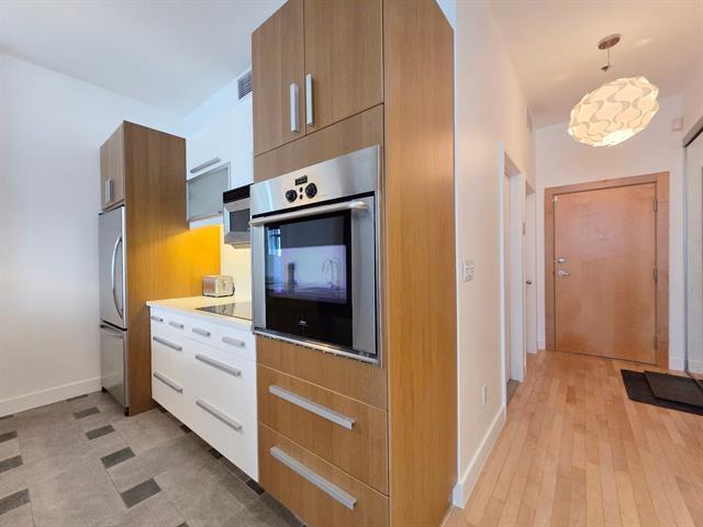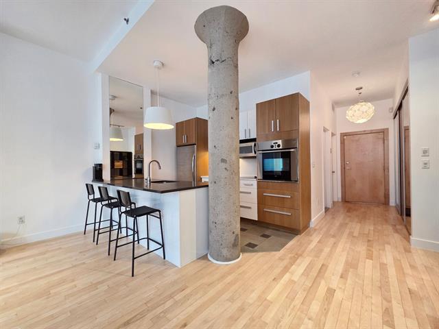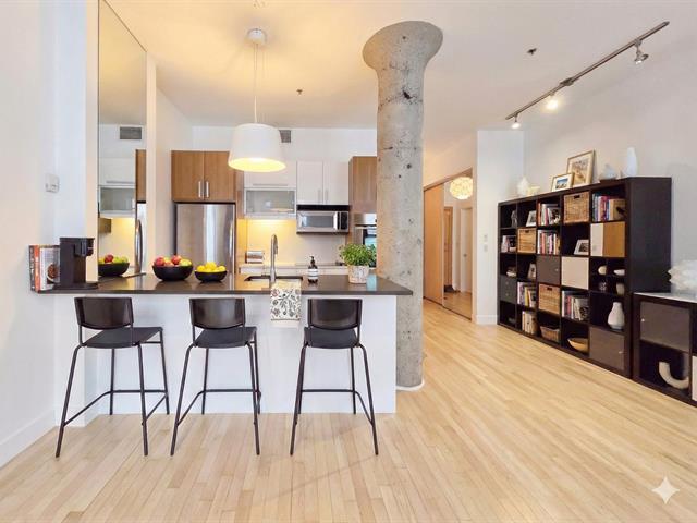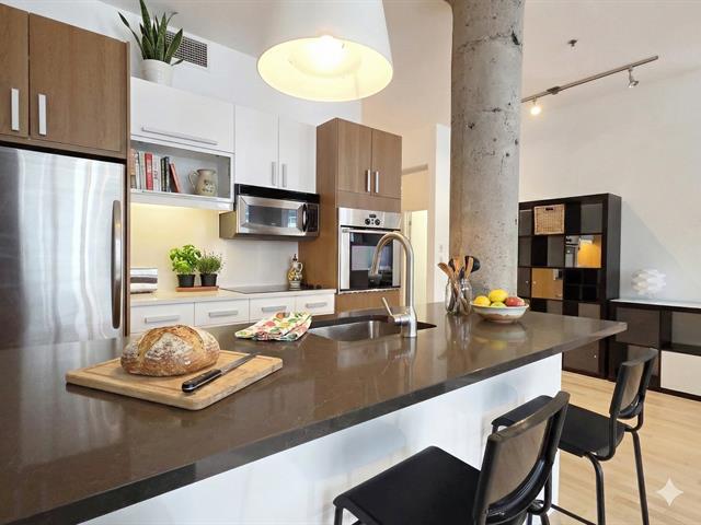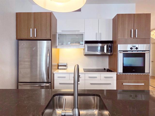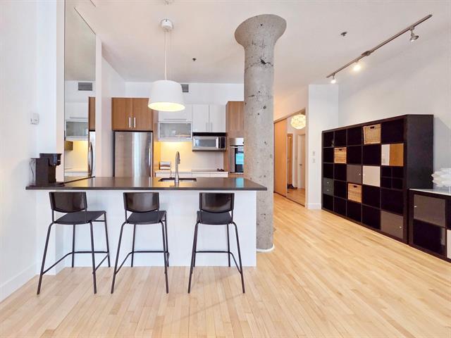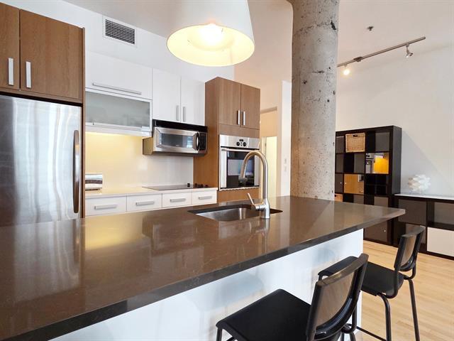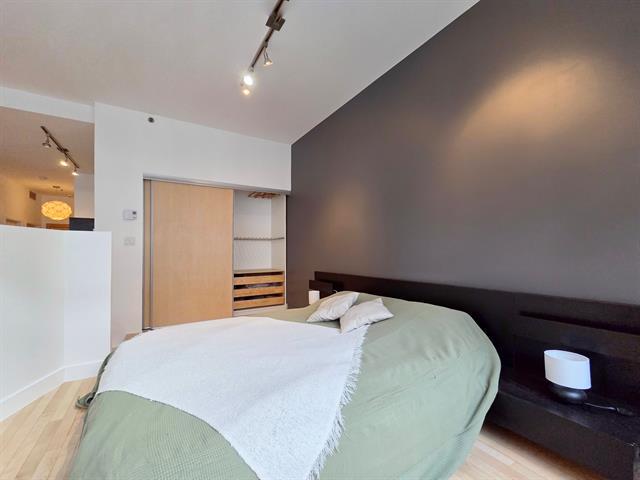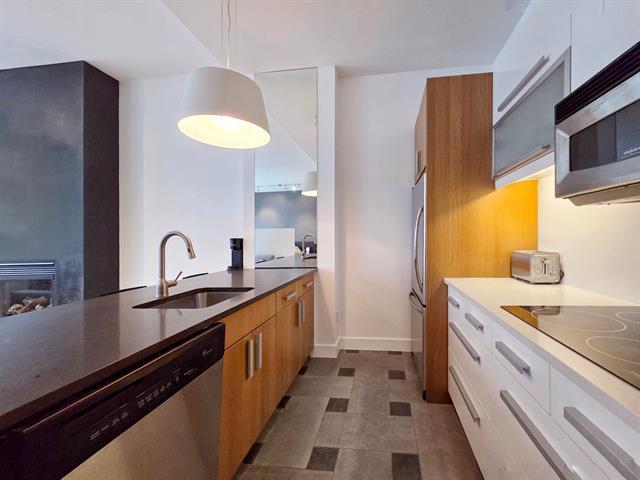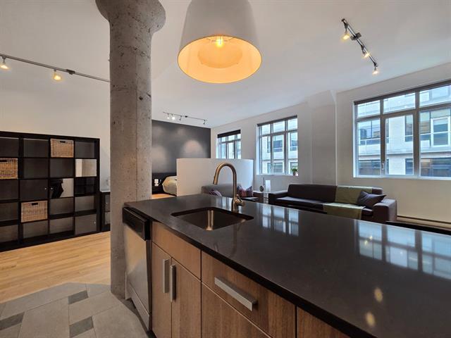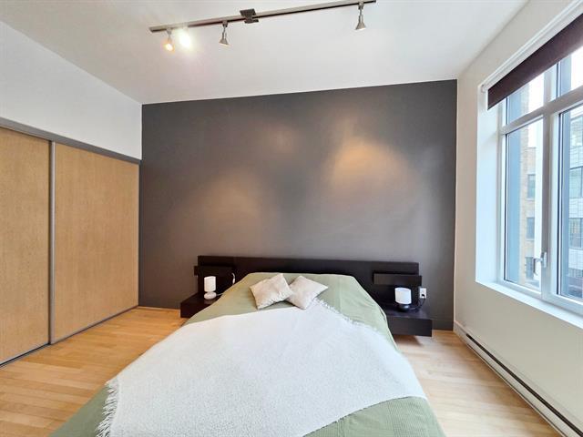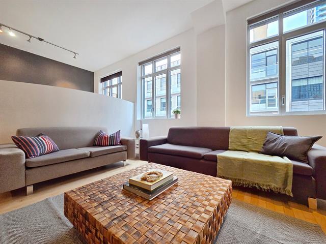 Bright top-floor/penthouse with a loft-style design, offering a warm and comfortable living experience in a prestigious building ideally located between Place des Arts and McGill University. Just steps from the metro, this open concept unit features a harmonious living/dining/kitchen area, along with a low partition wall that creates an intimate, private bedroom space. Other features include well organized and spacious closets and several renovations (kitchen, bathroom, floors) will help make this place feel like home. Enjoy a rooftop terrace with city views, a fitness room, and the peace of mind that comes with overnight security service. (38588720)
