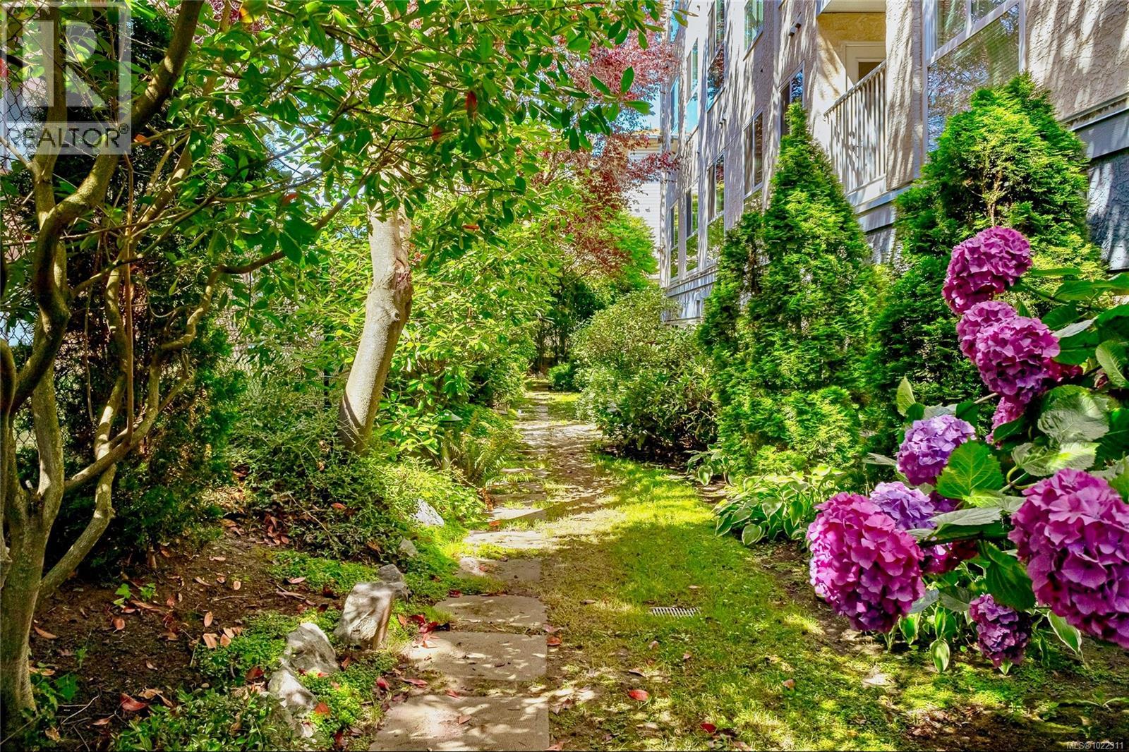 Offering fantastic value - priced well below assessed - one of the best priced 2 bedroom condos in Victoria! For immediate possession! Welcome to suite 102 at The Balmoral - this bright, beautifully renovated 2 bedroom 1 bathroom ground level suite offers the perfect blend of comfort and convenience. Well-appointed with luxury vinyl plank flooring, marble countertops, and a brand new LG ThinQ washer and dryer set, this fully accessible residence is the ideal place to call home. Enjoy the modernized bathroom designed with contemporary tile and a freshly installed soaker tub. The stylish kitchen is equipped with all-new cupboards, full size stainless steel appliances, and a modern tile backsplash to meet all of your culinary needs. Enjoy your meals in the adjacent dining room, or step out of the open-concept living area onto your tranquil, private patio. On a quiet street with secure undergound parking & your own separate storage unit, this rentable, all-ages building is a great place to invest, as the neighbourhood is seeing dramatic change with several new developments under way and recently completed. Recent upgrades to this remediated, well managed, and pet-friendly building include an elevator update, as well as new vinyl windows and sliding glass doors. Whether it's work, play, or relaxation, this home is ideally situated with an incredible walk/transit score, just steps to Royal Athletic Park, Save On Foods Memorial Centre, the artsy Fernwood Village, and Upper Cook Street Village with its array of shops and services - don't miss this exceptional opportunity in a prime downtown Victoria location! (30230798)