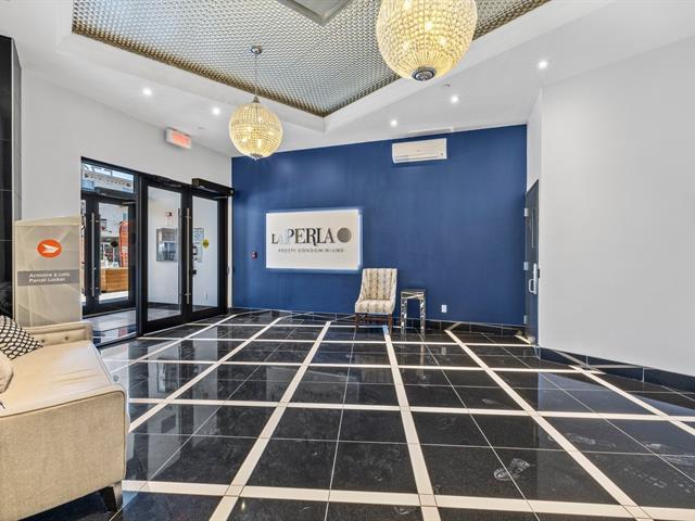 Beautiful Prestige - "Presti" luxurious 2 bedroom, 2Bt, condo. Perfectly located in the heart of St-Leonard, close to all services and public transport. Condominium La Perla , will definitely seduce you. Open concept wt/ abundant of natural light, many upgraded, high end finishings such as backsplash, counters, sink faucets, light fixtures, bathroom vanities, wall to wall ceramic in bathroom, dark wood doors, natural gas outlet for stove. Automatic water shut-off system . You will have access to an elegant community room, fitness room , Sauna, rooftop heated pool and private gardens and BBQ... Most importantly next to New Blue-Line Metro!!! (41281706)