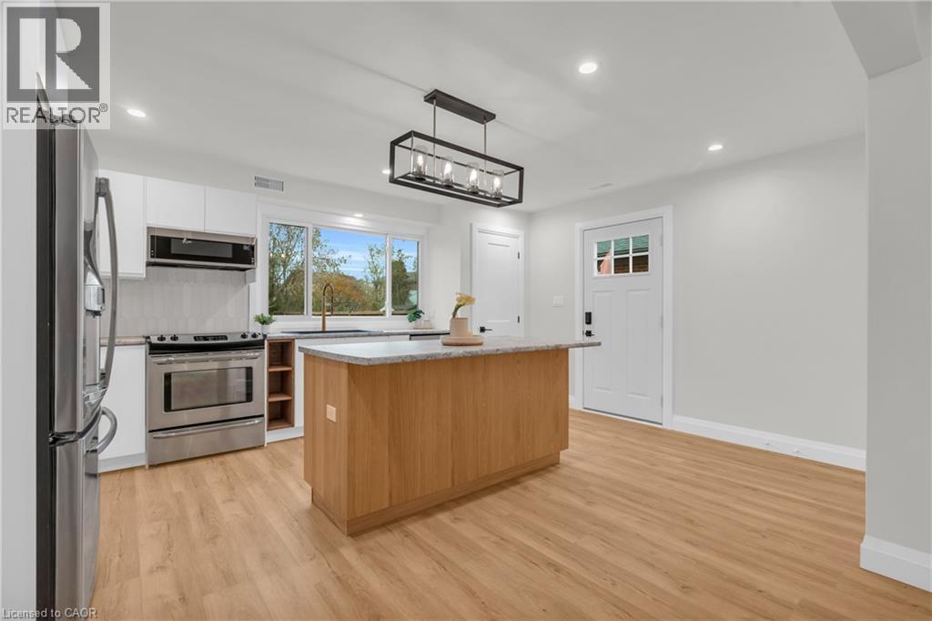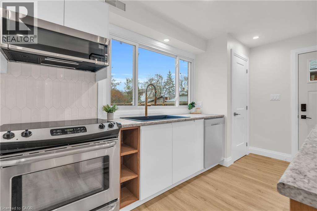 Welcome to this immaculately renovated 3 bedroom, 2 bath main floor unit, thoughtfully designed with a functional layout and beautiful warm finishes. The bright kitchen features stainless steel appliances, sleek cabinetry, and a large window that fills the home with natural light and overlooks the backyard space. The open concept living space feels airy and cozy. Enjoy the convenience of in-suite laundry and the comfort of spacious bedrooms and one full bathroom and one powder room with thoughtful updates. The shared backyard provides extra outdoor space to relax or unwind. Real maintenance free living as snow removal and yard maintenance will be taken care of! The unit includes one dedicated parking space for your convenience. Located minutes from Highway 8, a short walk to Ash Park, and close to downtown Kitchener, you have everything you need close by. Come see for yourself why this unit could be your new home! (70004224)