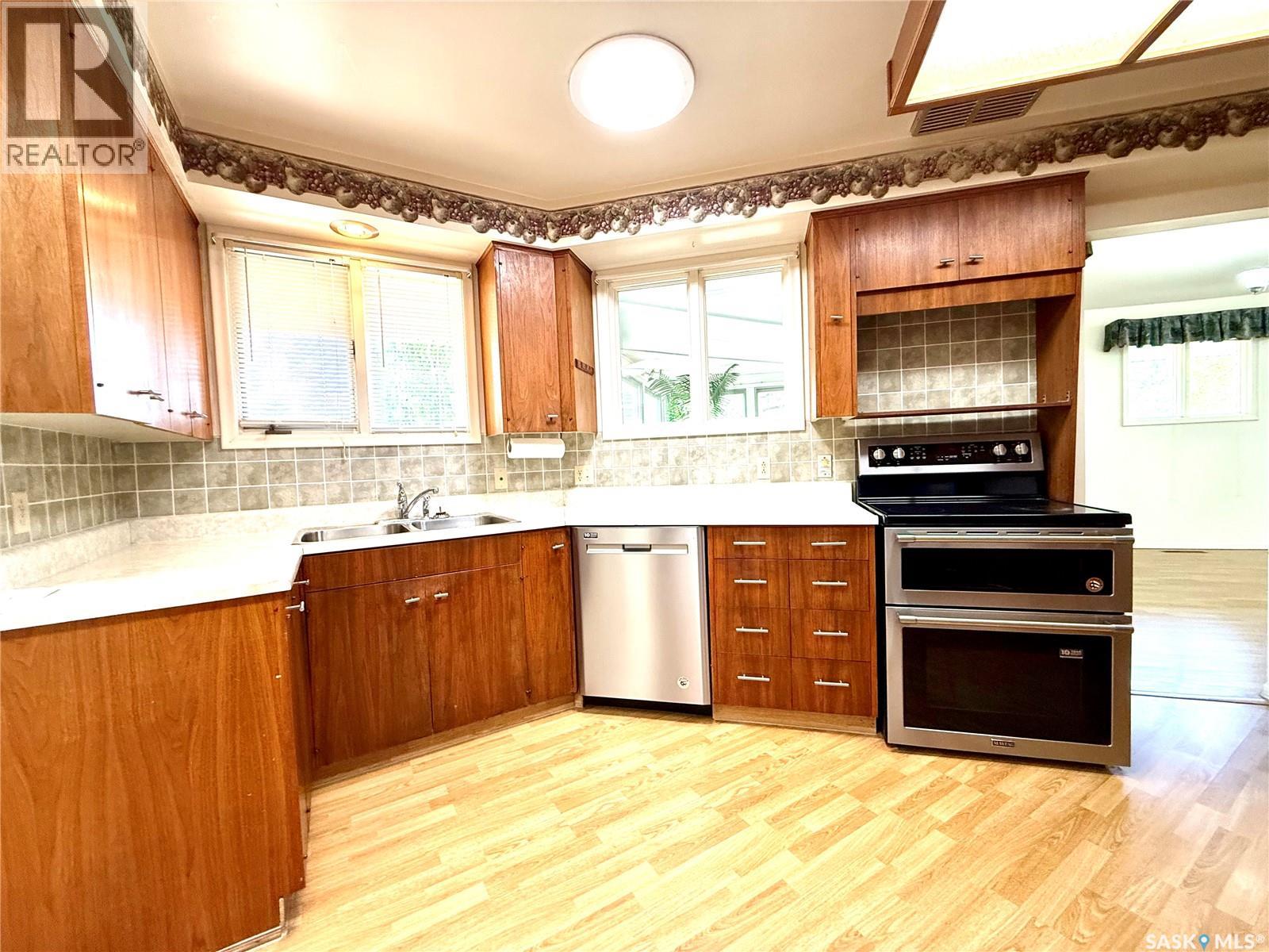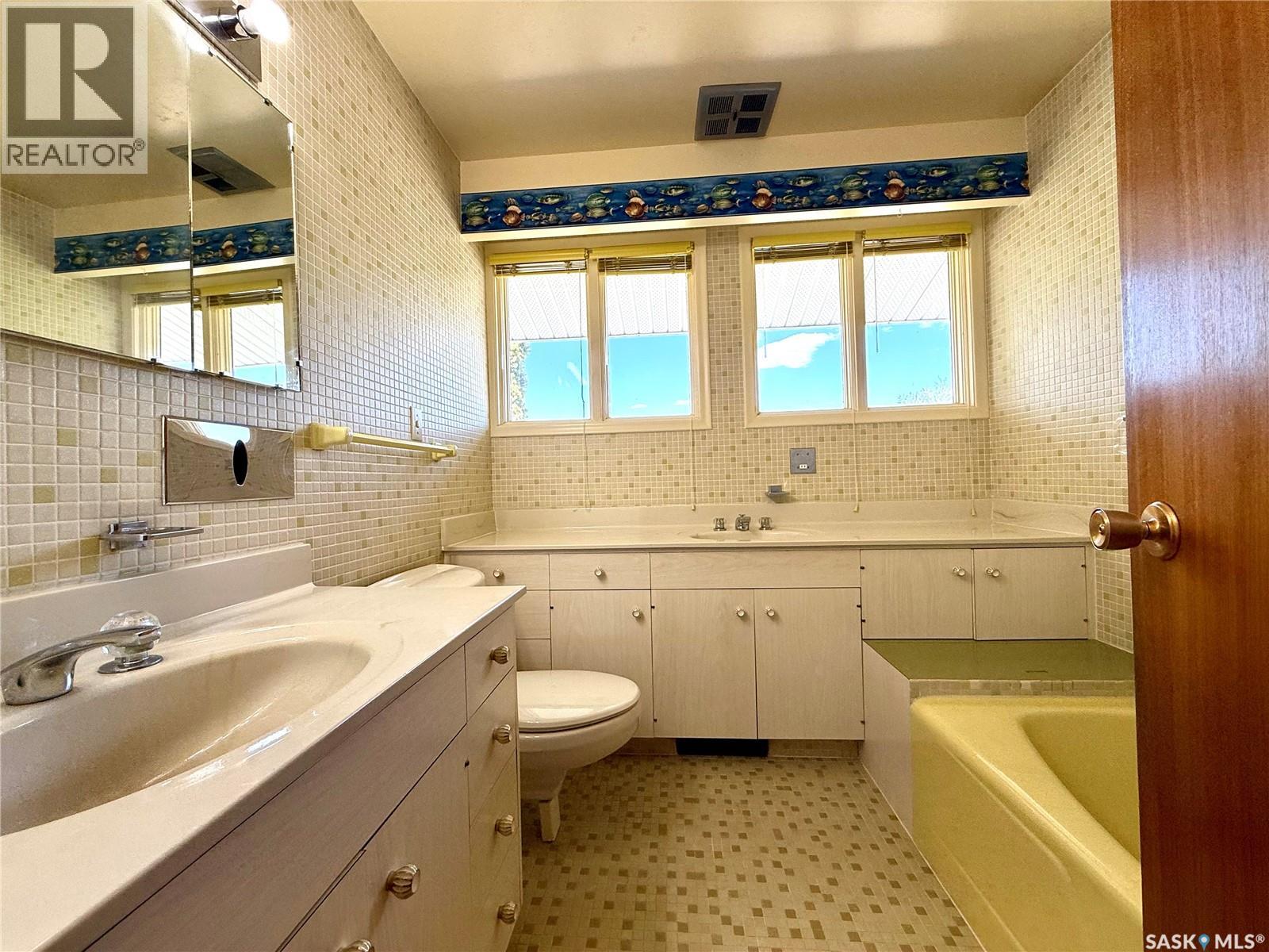 Now available is one of Yorkton’s most notable mid-century residences. Built in 1968, this architecturally distinct home spans 1,872 square feet and features 5 bedrooms, 3 bathrooms, and a double attached garage. Designed with character in every corner, the home showcases vaulted ceilings, angled walls, and an original built-in bar—true to the era’s signature style. A wall of windows opens onto a private deck, perfect for entertaining or relaxing outdoors. A separate sunroom offers additional space to enjoy year-round natural light. Set on a prominent corner lot with a circular driveway, this home has remained dry through both of Yorkton’s major floods, providing peace of mind alongside charm. Recent upgrades include two modern furnaces (installed in 2021 and 2023) and new shingles (2023). Conveniently located near St. Paul’s Elementary School, the Gallagher Centre, and the Painted Hand Casino, this home blends architectural appeal with everyday practicality. A decorator’s dream with unique design elements, this rare gem is ready to welcome its next chapter—and the perfect family to make it their own! (29235101)