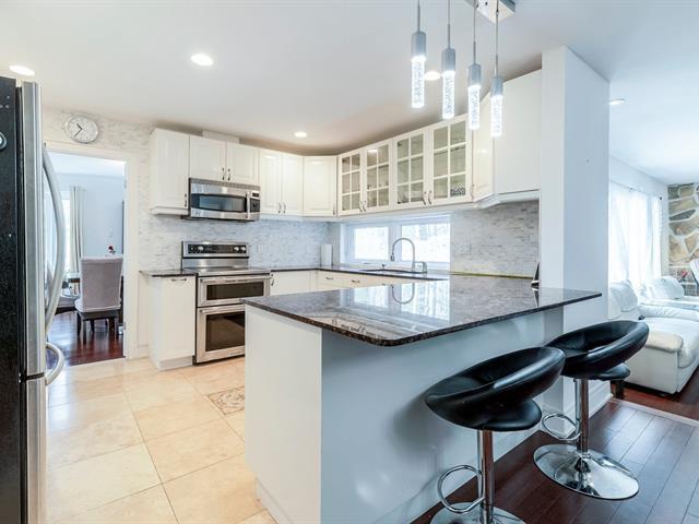 Nestled on a 6,000+ sqm lot with mature trees, this magnificent home offers 380+ sqm of living space. Featuring 5 bedrooms, including 3 on the main floor, a renovated open-concept kitchen, and luxurious wood and marble floors. Two sets of patio doors lead to a large balcony. Outside, a fenced-in, heated inground pool provides ultimate privacy. Recent renovations include windows, flooring, kitchen, bathrooms, and roof. Unfinished basement ready for customization. (48448158)